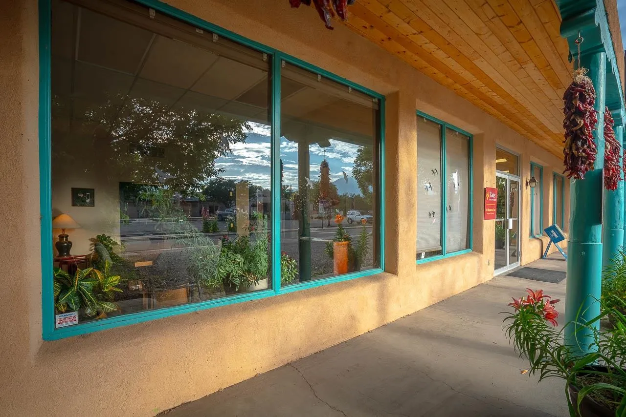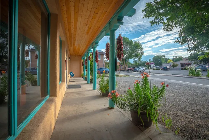An extremely rare and versatile commercial or residential development opportunity awaits you in an unparalleled location—just 100 yards from the Taos Plaza. This approximately 2,100 square foot blank canvas is ready for your vision. Situated in a high-traffic corridor within the historic and commercial districts of Taos, this property is not only steps from the Plaza, but it also boasts 10 designated parking spots, which is a valuable asset given that there are new parking meters in the area. The eye-catching southwestern-style frontage invites business through its doors, enhanced by a beautiful front covered portal patio ideal for café seating, benches, gardens, and more. Nearly floor-to-ceiling windows flood the space with natural light and offer spectacular views of Taos Mountain and the Sangre de Cristo mountain range. Inside, the property features two large open spaces with high ceilings, adaptable to a wide range of business needs. A smaller 208 square foot room, currently used as a conference room, has large windows and an adjacent half bath. Toward the back, a 163 square foot room includes a kitchenette and opens into a second half bath. The property is equipped with forced heat and central air conditioning, ensuring comfort year-round. This commercial space has a robust rental history spanning over a decade, having previously housed a bike shop, childcare center, and real estate brokerage among other businesses. Currently tenant-occupied, it offers the potential for passive income. Whether you’re envisioning a café, restaurant, yoga studio, bookstore, quirky shop, live/work option, or office, this property provides a versatile canvas to bring your ideas to life. Opportunities to own prime commercial or residential real estate in Taos are rare. Contact us today to view this exceptional property and let your dreams take shape.
