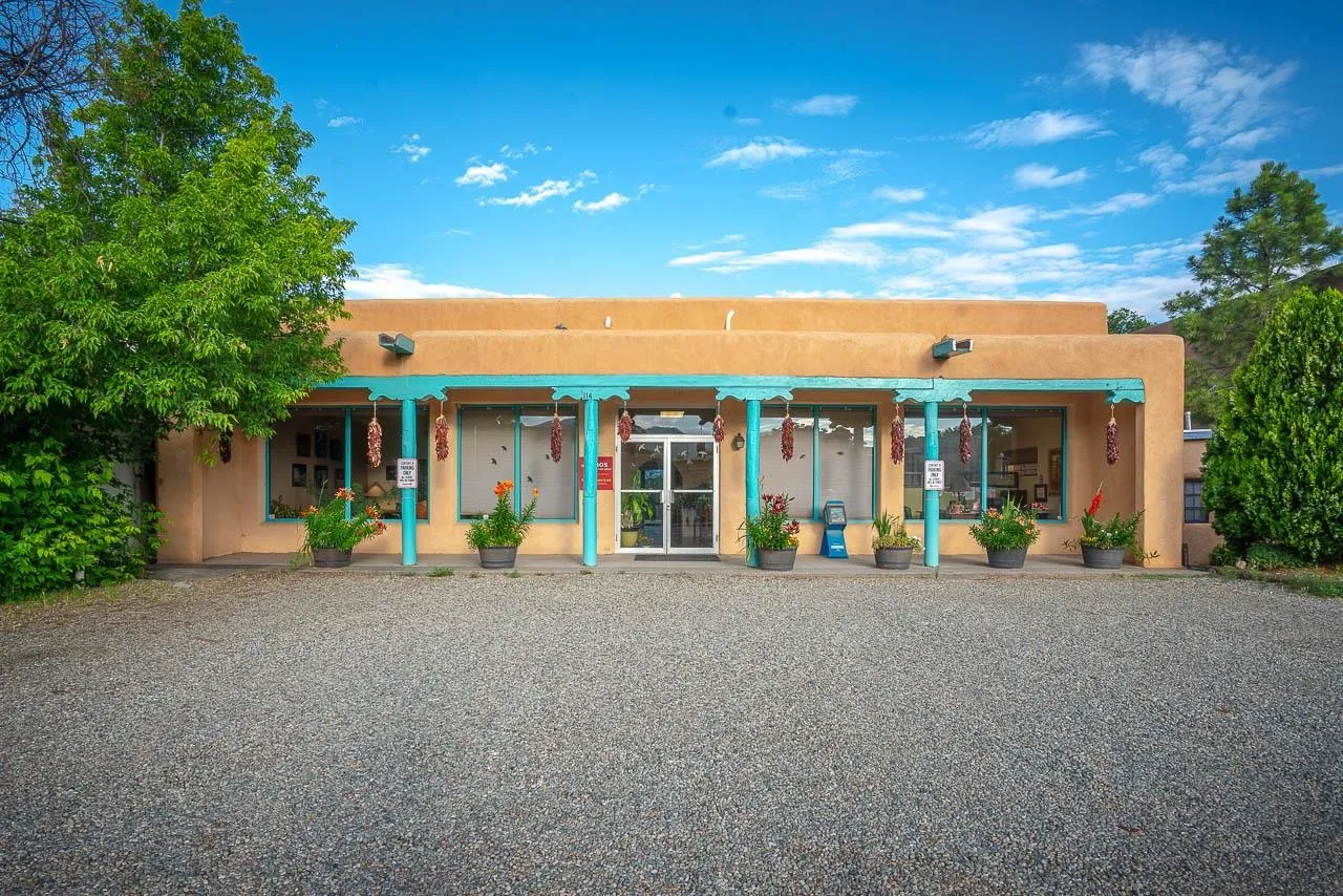 An extremely rare and versatile commercial or residential development opportunity awaits you in an unparalleled location—just 100 yards from the Taos Plaza. This approximately 2,100 square foot blank canvas is ready for your vision. Situated in a high-traffic corridor within the historic and commercial districts of Taos, this property is not only steps from the Plaza, but it also boasts 10 designated parking spots, which is a valuable asset given that there are new parking meters in the area. The eye-catching southwestern-style frontage invites business through its doors, enhanced by a beautiful front covered portal patio ideal for café seating, benches, gardens, and more. Nearly floor-to-ceiling windows flood the space with natural light and offer spectacular views of Taos Mountain and the Sangre de Cristo mountain range. Inside, the property features two large open spaces with high ceilings, adaptable to a wide range of business needs. A smaller 208 square foot room, currently used as a conference room, has large windows and an adjacent half bath. Toward the back, a 163 square foot room includes a kitchenette and opens into a second half bath. The property is equipped with forced heat and central air conditioning, ensuring comfort year-round. This commercial space has a robust rental history spanning over a decade, having previously housed a bike shop, childcare center, and real estate brokerage among other businesses. Currently tenant-occupied, it offers the potential for passive income. Whether you’re envisioning a café, restaurant, yoga studio, bookstore, quirky shop, live/work option, or office, this property provides a versatile canvas to bring your ideas to life. Opportunities to own prime commercial or residential real estate in Taos are rare. Contact us today to view this exceptional property and let your dreams take shape.