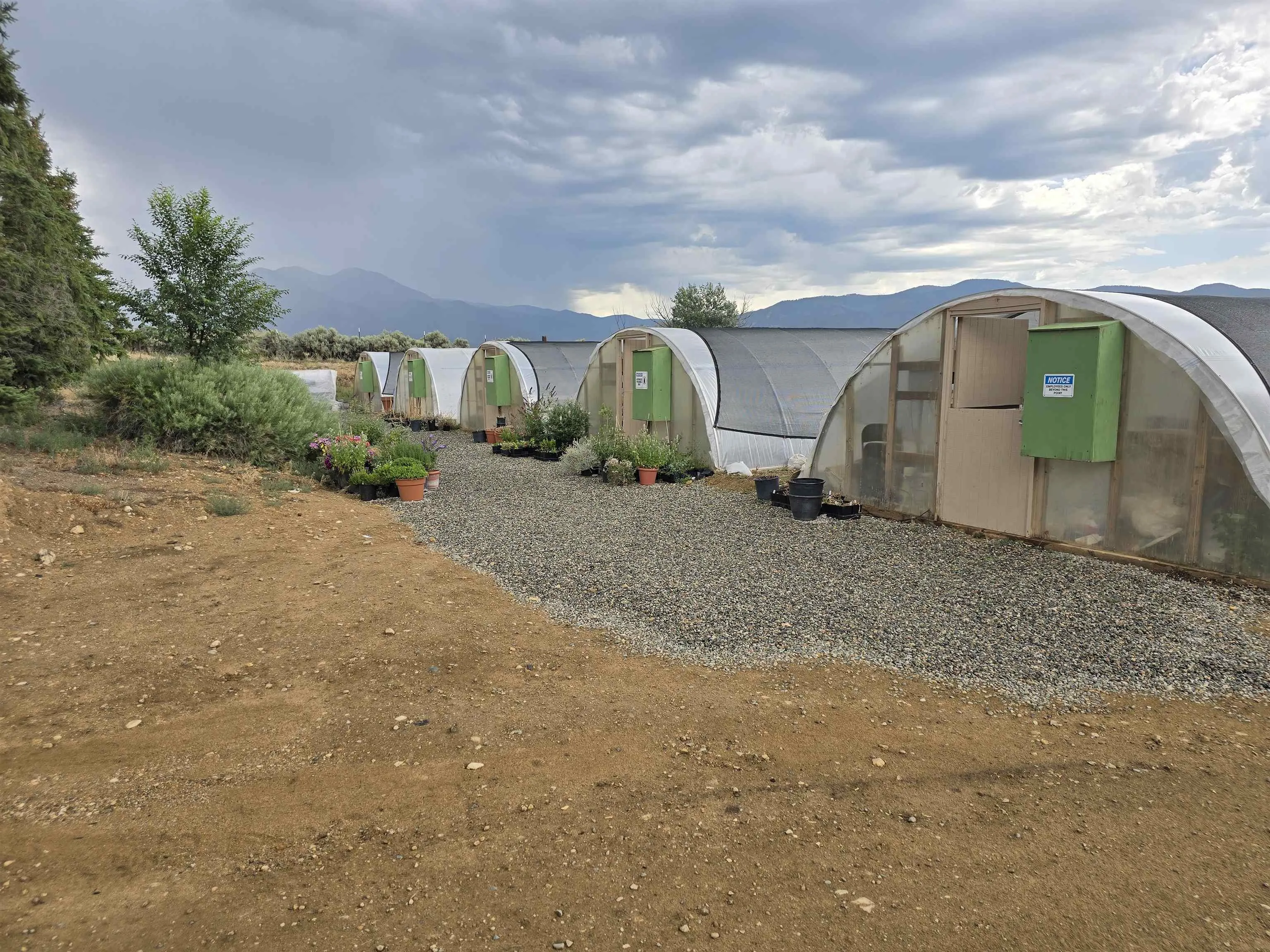 Great opportunity to own an iconic property. Locally owned for over 30 years! Located on 28 lush acres, with 10 greenhouses, this property has endless possibilities. Conveniently located on Blueberry Hill cascading into the Taos valley, ideal for a family compound or continue as a nursery. Financials available. A feeling of possibility pervades the greenhouses at Petree Nursery.