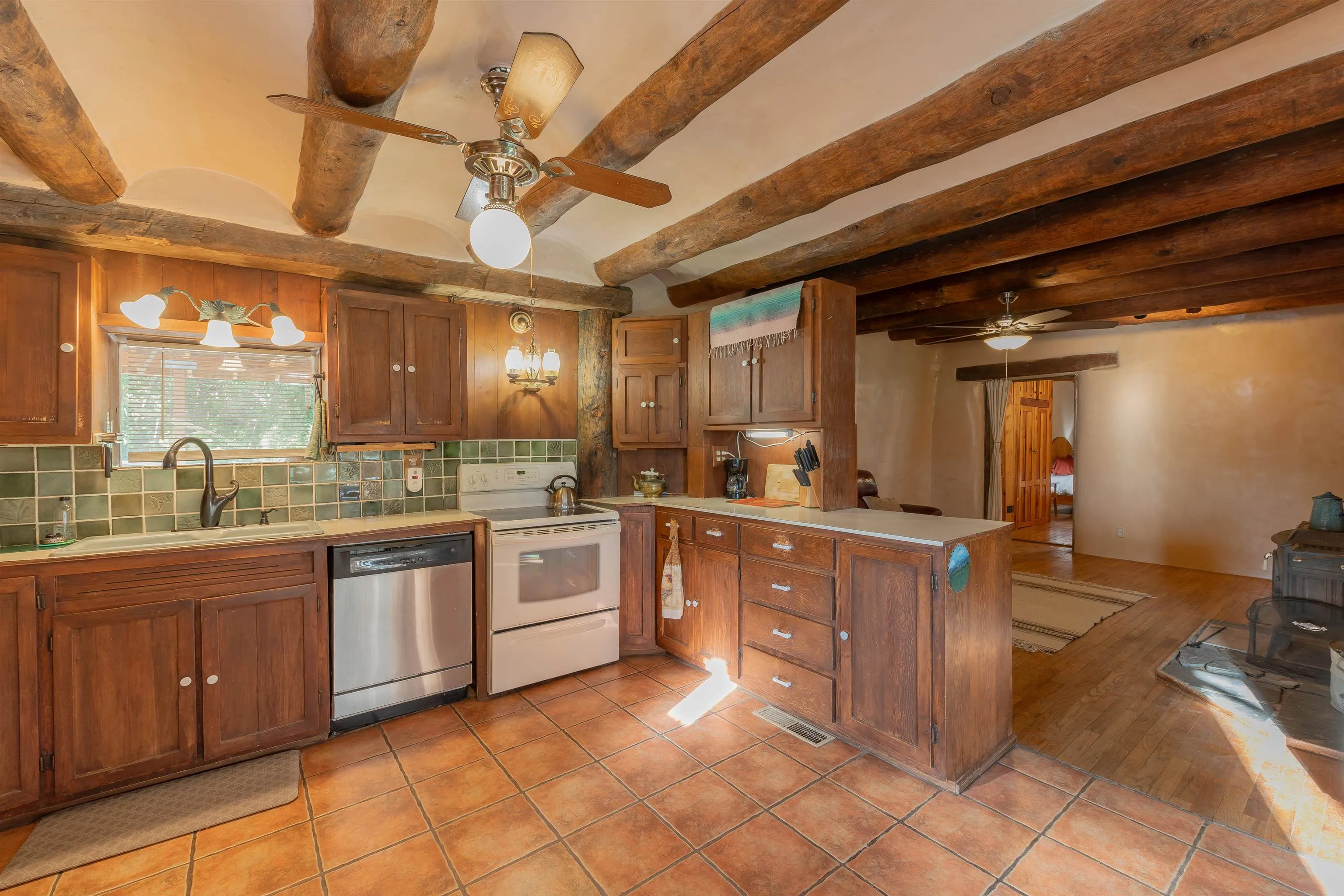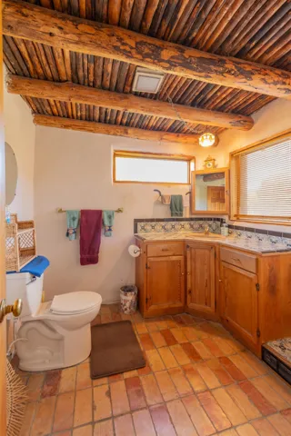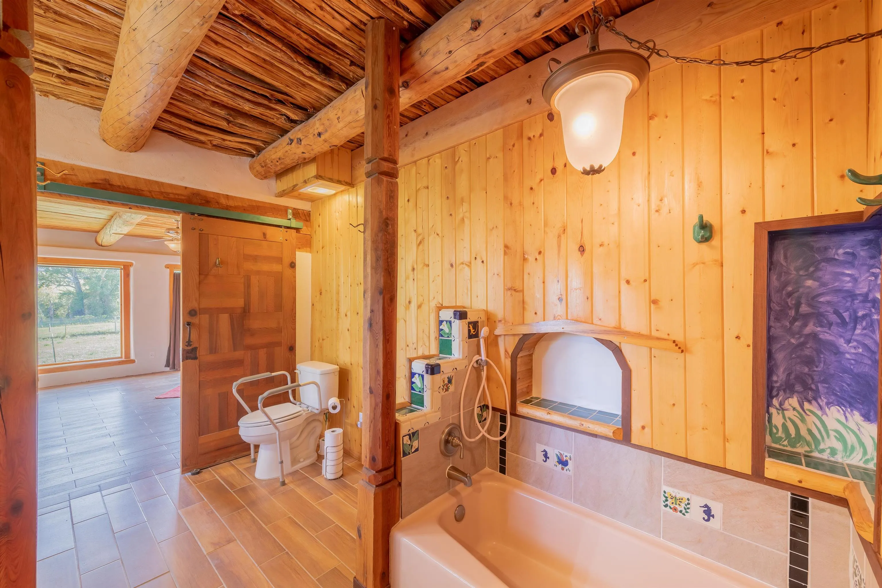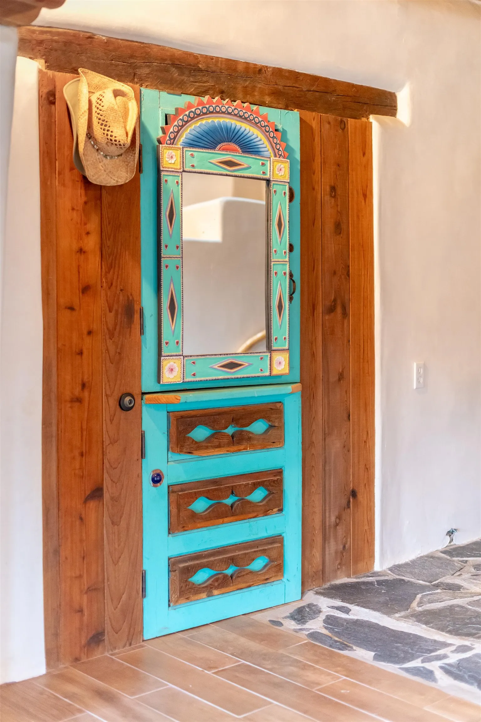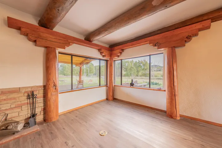 TWO HOMES – Welcome to the Sunrise and Sunset Homes. Nestled in the quaint Village of Vadito, NM, lies this rare 6+ acre property with two unique adobe homes, situated for peaceful pastural views that provide the full colorful spectrums of New Mexico sunrises and sunsets. The potential for organic farming, (soil has been free of herbicides and pesticides, nourished by only sheep and llama manure for owner’s 25 years), agricultural and livestock, a retreat or healing center, a family compound, and even rental income while living in one of the homes. The dark skies of this quiet location will leave you in awe of the brightness of the Milky Way, Orion, and all the constellations. Listen to the Rio Pueblo River which borders the south line of this property, alive with trout perfect for fly fishing and spot a heron on the shore catching breakfast. A river fed pond sits on the west side of the property awaiting your presence to share its views and quiet solitude. The property contains acequia water rights (6 acres), 3 water memberships available with the MDWCA that has been awarded annually in New Mexico for quality drinking water, two septic systems, a garage/ shop/ equipment building, a corral with 3 rooms and a hay barn that currently houses 2 llamas who produce manure second only to bat guano. The Sunset House boasts a kitchen that was recently refurbished with granite countertops, storage galore, soft close cabinets and a large kitchen island with seating space. There is new flooring throughout the living room, kitchen, and bathroom areas. The living room includes a wood burning stove and views of glorious sunsets framed by carved vigas and corbels. There is a 12’x 17’ greenhouse/sunroom/mudroom and also a 30’ x 10’ porch with storage attached. The Sunrise House is an 1864 circa custom updated adobe home with 2 separate living areas joined by a beautiful custom door. Either area could be perfect for caretaker or short-term renter. Local lore has it that Billy the Kid used to dance here when it was originally a dance hall! Ground floor living area has a gorgeous caramel- colored ceiling with vigas and latillas designed with a centerpiece Ojo de Dios. Four large windows in the great room look towards the fields and river to view and inhale mother nature’s beauty. Walk out from this great room to a 21’ x 20’ covered patio with attached composite 16’ x 20’ deck for those lovely morning/evening coffee, tea or cocktail times. Attached to this home is a 13′ x 40′ storage area. Could be converted to a carport, etc. This property is located approximately 18 miles SE of historic towns Ranchos de Taos and Taos, New Mexico and at approximately 7,500 ft elevation with a seasonal view of the 13,000 ft Jicarita Peak (a mountain held sacred by the local Picuris Pueblo people). The property produces a synergistic ecosystem and wildlife habitat for flowers, grasses, llamas, hawks and eagles among other wild birds. Sometimes you even get a visit from a buffalo or two! Located within 60 to 70 miles of six ski resorts, namely Sipapu (8 miles), Taos Ski Valley, Angel Fire, Red River, Ski Santa Fe, and Pajarito Ski Valley; supplying an outstanding selection of diverse activities for people of all ages and abilities. A RARE PROPERTY AVAILABLE FOR SALE! Please schedule your viewing today. **Buffalo not included**