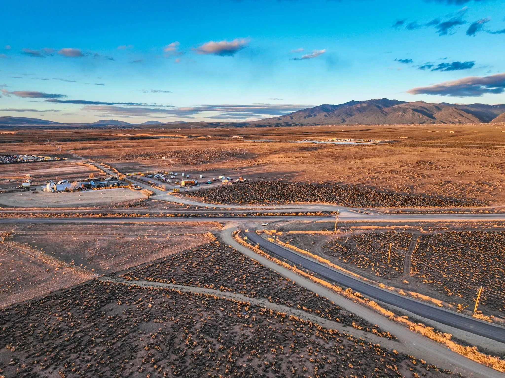 Opportunity Right On the Highway in Growing El Prado ~ Less than a half-mile away from Taos Regional Airport, right next to the the popular Hotel Luna Mystica & vibrant Taos Mesa Brewing Company, you will find this rare parcel of flat land right off US 64 West. You or your Company can go many many ways with this lot; perhaps you play off the airport and build a small plaza to host a car rental business, a small grocery store to serve this rapidly growing region, or maybe even a restaurant/bar to compliment the many concerts & events taking place right next door at the two booming establishments. A space for entertaining the many residents of El Prado, Colonias, “The Mesa,” and the greater Taos Community will go a long long way here… Something like put-put golf, a yoga/pilates gym, or even a mult-housing or mixed use space studio would be a hit for all people visiting, living, or moving to Northern New Mexico. Traffic in this part of town is almost constant with cars and trucks heading West to the Ojo Caliente Hot Springs, the remarkable Rio Grand Gorge Bridge, the wondrous Earthship Community, Southern Colorado, or the easy way to Santa Fe and beyond. A plethora of activities are right down the road– skiing at the world-class Taos Ski Valley, rafting and fishing the Rio Grande Gorge, Mountain biking the high-desert trails, horseback riding, hiking, hunting, star gazing, all right there or nearby. El Prado Water recently installed water lines on both sides of the highway with the plan to eventually allow connections. Opportunities like this don’t arise often, you’ll want to jump at one!