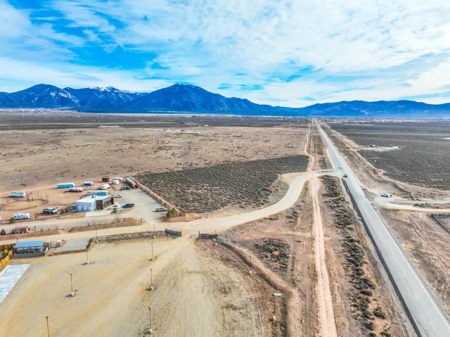 Opportunity Right On the Highway in Growing El Prado ~ Less than a half-mile away from Taos Regional Airport, right next to the the popular Hotel Luna Mystica & vibrant Taos Mesa Brewing Company, you will find this rare parcel of flat land right off US 64 West. You or your Company can go many many ways with this lot; perhaps you play off the airport and build a small plaza to host a car rental business, a small grocery store to serve this rapidly growing region, or maybe even a restaurant/bar to compliment the many concerts & events taking place right next door at the two booming establishments. A space for entertaining the many residents of El Prado, Colonias, “The Mesa,” and the greater Taos Community will go a long long way here… Something like put-put golf, a yoga/pilates gym, or even a mult-housing or mixed use space studio would be a hit for all people visiting, living, or moving to Northern New Mexico. Traffic in this part of town is almost constant with cars and trucks heading West to the Ojo Caliente Hot Springs, the remarkable Rio Grand Gorge Bridge, the wondrous Earthship Community, Southern Colorado, or the easy way to Santa Fe and beyond. A plethora of activities are right down the road– skiing at the world-class Taos Ski Valley, rafting and fishing the Rio Grande Gorge, Mountain biking the high-desert trails, horseback riding, hiking, hunting, star gazing, all right there or nearby. El Prado Water recently installed water lines on both sides of the highway with the plan to eventually allow connections. Opportunities like this don’t arise often, you’ll want to jump at one!