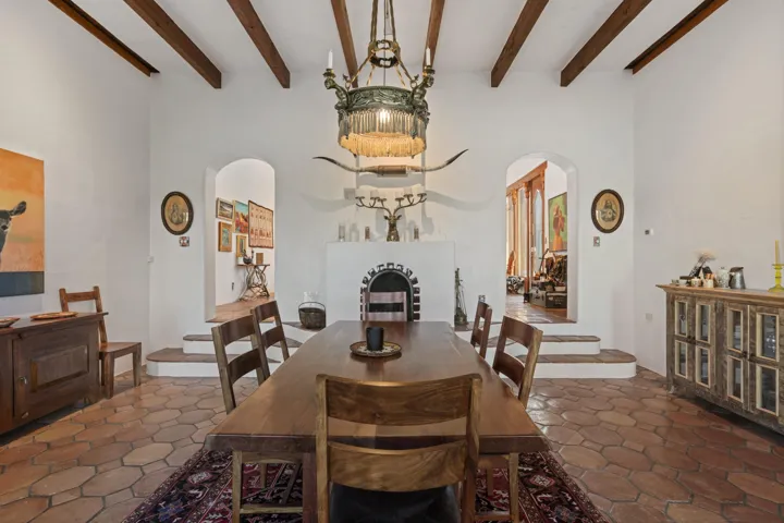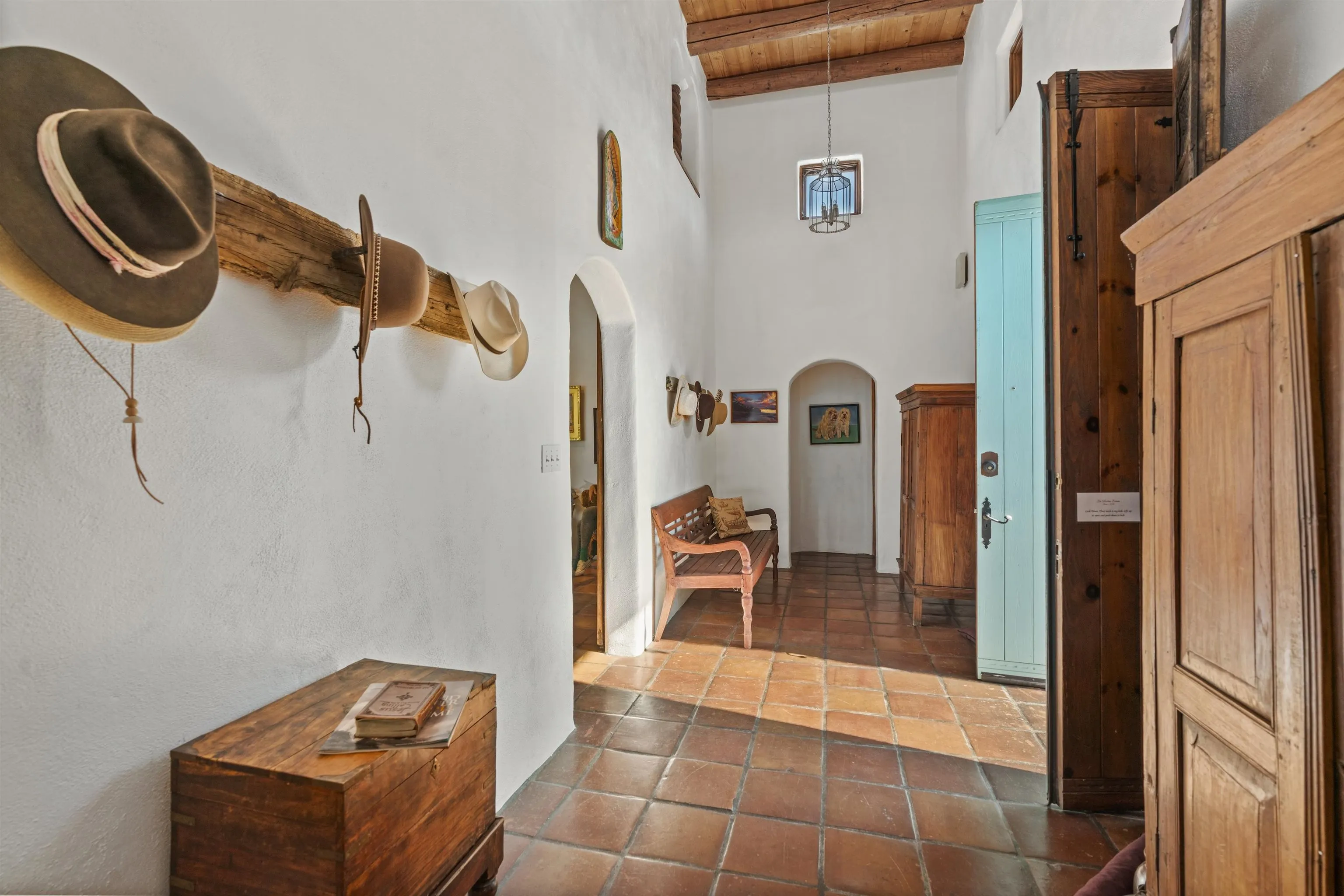 Each room unfolds like a chapter, setting its own distinct scene while creating a harmonious flow that enhances livability and design. A timeless piece of Taos, New Mexico real estate. This 5-bedroom, 5-bathroom estate is like haute couture, a piece of artistry. Bespoke design that marries classic southwest, middle eastern touches, and a modern elegance. Effortless entertainment and endless event possibilities with the estate’s sophisticated and highly functional chef’s kitchen. The large dining room with a soaring ceiling blends seamlessly into the well-appointed library. Two primary suites, one on the first floor and one on the second. Upstairs porch views of the town of Taos and the profile of El Salto cliffs. This estate was built by Ambassador Bill Eagleton, a career diplomat to numerous Middle Eastern nations. The Middle Eastern heritage magnificently compliments timeless southwest traditional architecture. Exquisite woodwork, one-of-a-kind doors featured throughout the entire estate. A full high-end renovation to the entire upstairs and the lower pool lock-off suite. Impeccable attention to detail, luxurious bathrooms, designed to maximize space and create a sanctuary for guests or family. 4,300+ square feet of exquisite design, and 3,100+ square feet of outdoor patios, portals and porches. The epic great room leads you out onto a beautifully maintained patio with a 45-foot inground heated lap pool. The pool and in ground hot tub patio are surrounded by gardens on drip irrigation that envelopes residents and visitors in a paradise of blossoms, outdoor lounging and beauty. On this 3-acre lot in the town of Taos, enjoy peaches from your orchard on drip irrigation, blackberries and raspberries in the berry patch just off the kitchen patio. Six fireplaces, and a breathtaking entrance with vaulted ceilings that leads you into an expansive great room. The design of your dreams featuring opulent wall space for art, as well as crafted cozy seating nooks. Event rental, Air B & B, and VRBO history on this property, a primary residence and investment opportunity. Don’t wait to make this unmatched potential yours.