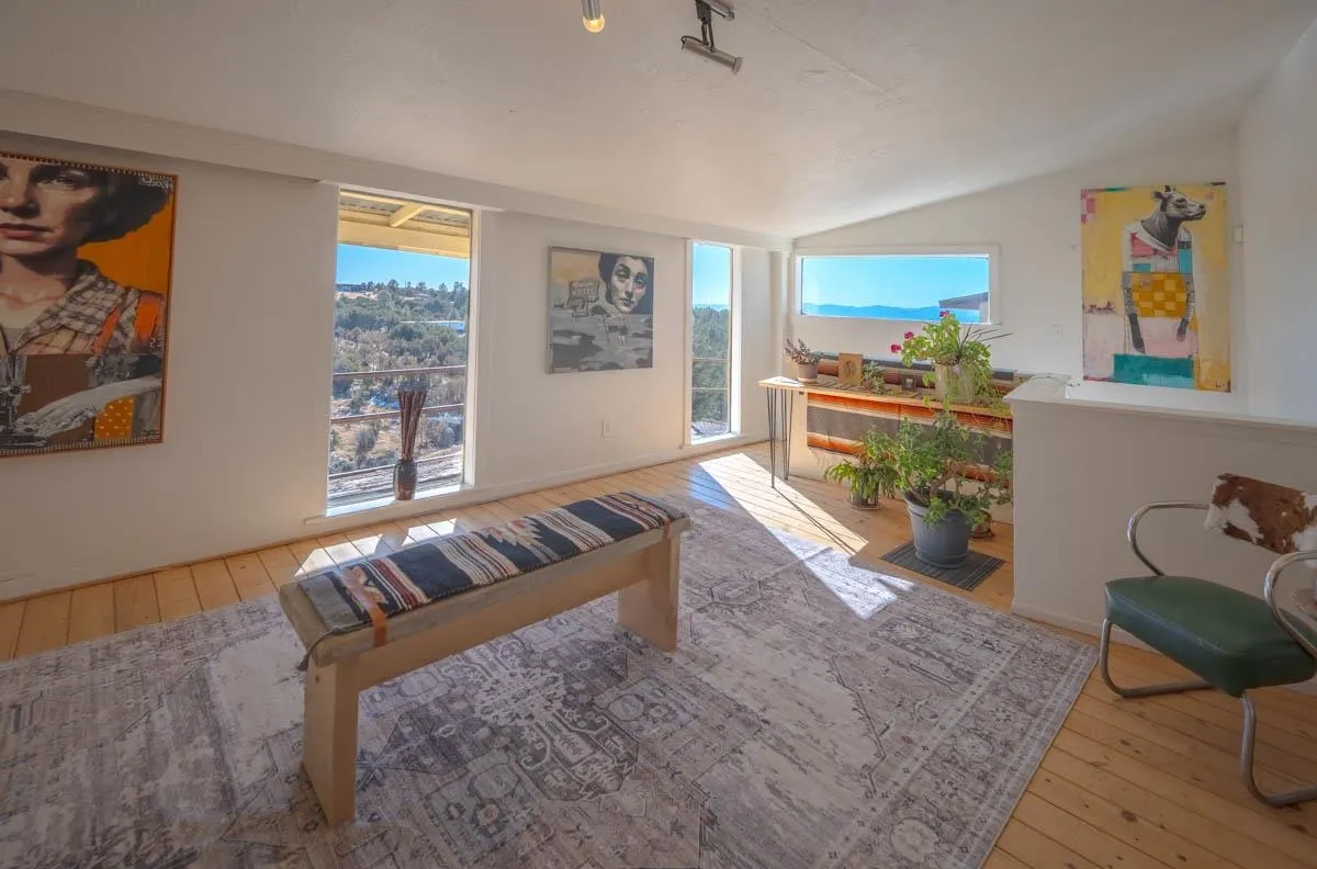 PRICE IMPROVEMENT! An Artist’s Dream Retreat in Truchas – A Gallery, Studio & Mountain Sanctuary! At the foot of the towering Truchas Peaks, along the main road of this historic village, lies a truly extraordinary property—a home, a gallery, and a creative sanctuary, all in one. This multilevel mountain retreat is a masterpiece of character and craftsmanship, where art and nature converge in perfect harmony. Designed with an artist’s soul in mind, the property features a detached guesthouse and a thriving art gallery and working studio. Bathed in natural light, with traditional vigas and latillas overhead, this inspiring space is perfect for showcasing work, hosting exhibitions, or cultivating creative energy. Whether continuing its legacy as a gallery or transforming it into a personal retreat, the possibilities are endless. The main residence is equally enchanting – a split-level design that embraces passive solar warmth, highlighted by original adobe walls that tell the story of its rich past. Century-old longleaf pine doors add rustic charm, while a cozy woodstove, whole-house inline water filtration system, and ample storage, provide comfort and convenience. Large windows frame breathtaking views of the Jemez and Sangre de Cristo Mountain ranges, making every sunrise and sunset a work of art in itself. With a workshop for hands-on projects and multiple flexible spaces, this home is a true artist’s retreat—ideal for painters, sculptors, or creatives seeking inspiration in one of New Mexico’s most beautiful landscapes. Beyond your own artistic haven, the location offers a rich cultural and natural experience—just an hour from Santa Fe, Taos, and Los Alamos, with easy access to Ojo Caliente Hot Springs, the Sanctuario de Chimayó, Bandelier National Monument, the Santa Fe Opera, Ghost Ranch, and multiple ski resorts. Whether you are looking to create, curate, or simply immerse yourself in the beauty of the high desert, this one-of-a-kind property is a masterpiece waiting for its next artist-in-residence. There is a 3D interior video tour and exterior drone video available to give you the full experience of this property, before even seeing this wonder in person.