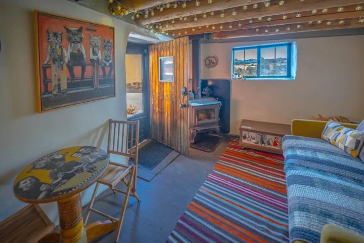 PRICE IMPROVEMENT! An Artist’s Dream Retreat in Truchas – A Gallery, Studio & Mountain Sanctuary! At the foot of the towering Truchas Peaks, along the main road of this historic village, lies a truly extraordinary property—a home, a gallery, and a creative sanctuary, all in one. This multilevel mountain retreat is a masterpiece of character and craftsmanship, where art and nature converge in perfect harmony. Designed with an artist’s soul in mind, the property features a detached guesthouse and a thriving art gallery and working studio. Bathed in natural light, with traditional vigas and latillas overhead, this inspiring space is perfect for showcasing work, hosting exhibitions, or cultivating creative energy. Whether continuing its legacy as a gallery or transforming it into a personal retreat, the possibilities are endless. The main residence is equally enchanting – a split-level design that embraces passive solar warmth, highlighted by original adobe walls that tell the story of its rich past. Century-old longleaf pine doors add rustic charm, while a cozy woodstove, whole-house inline water filtration system, and ample storage, provide comfort and convenience. Large windows frame breathtaking views of the Jemez and Sangre de Cristo Mountain ranges, making every sunrise and sunset a work of art in itself. With a workshop for hands-on projects and multiple flexible spaces, this home is a true artist’s retreat—ideal for painters, sculptors, or creatives seeking inspiration in one of New Mexico’s most beautiful landscapes. Beyond your own artistic haven, the location offers a rich cultural and natural experience—just an hour from Santa Fe, Taos, and Los Alamos, with easy access to Ojo Caliente Hot Springs, the Sanctuario de Chimayó, Bandelier National Monument, the Santa Fe Opera, Ghost Ranch, and multiple ski resorts. Whether you are looking to create, curate, or simply immerse yourself in the beauty of the high desert, this one-of-a-kind property is a masterpiece waiting for its next artist-in-residence. There is a 3D interior video tour and exterior drone video available to give you the full experience of this property, before even seeing this wonder in person.