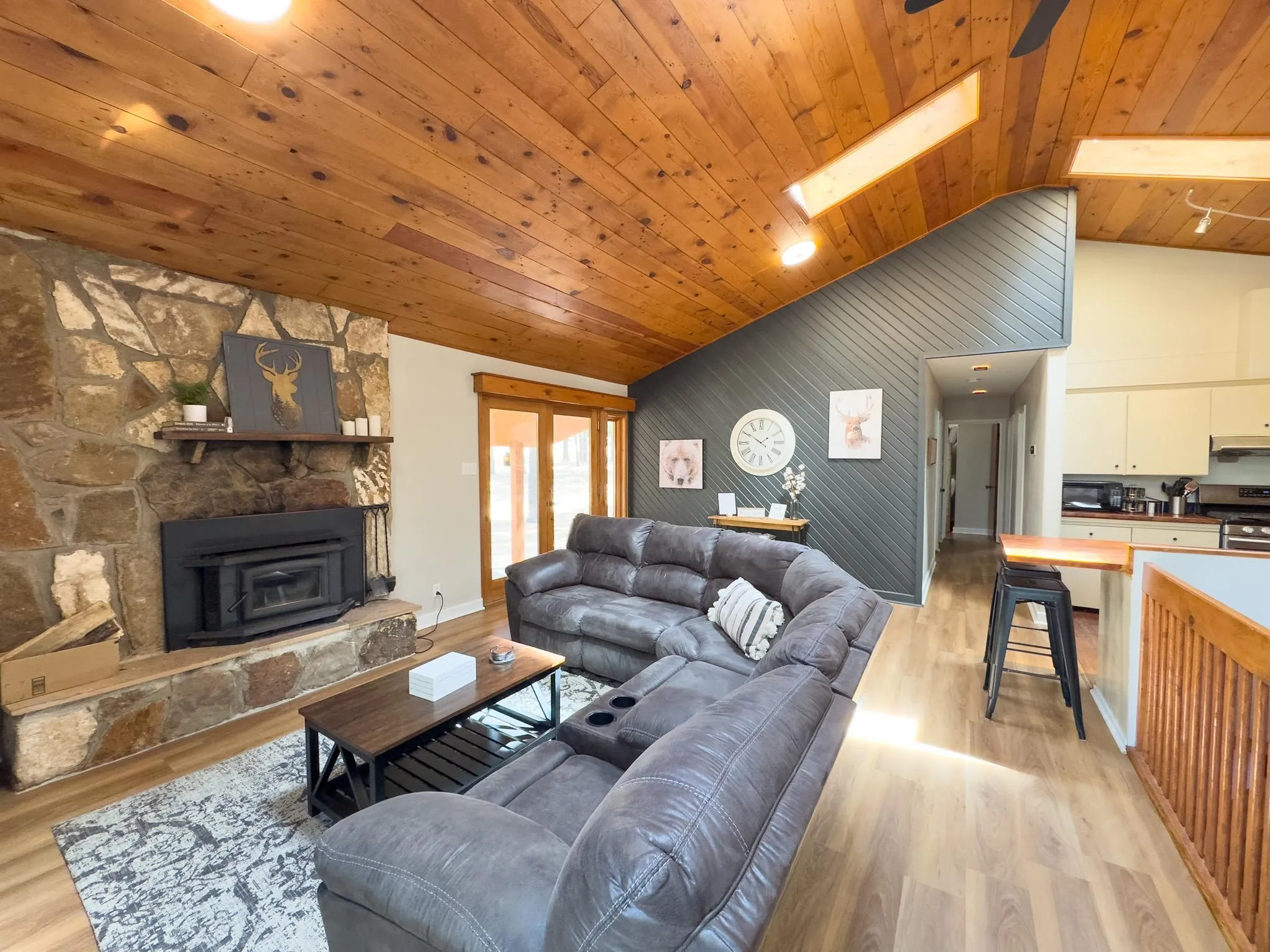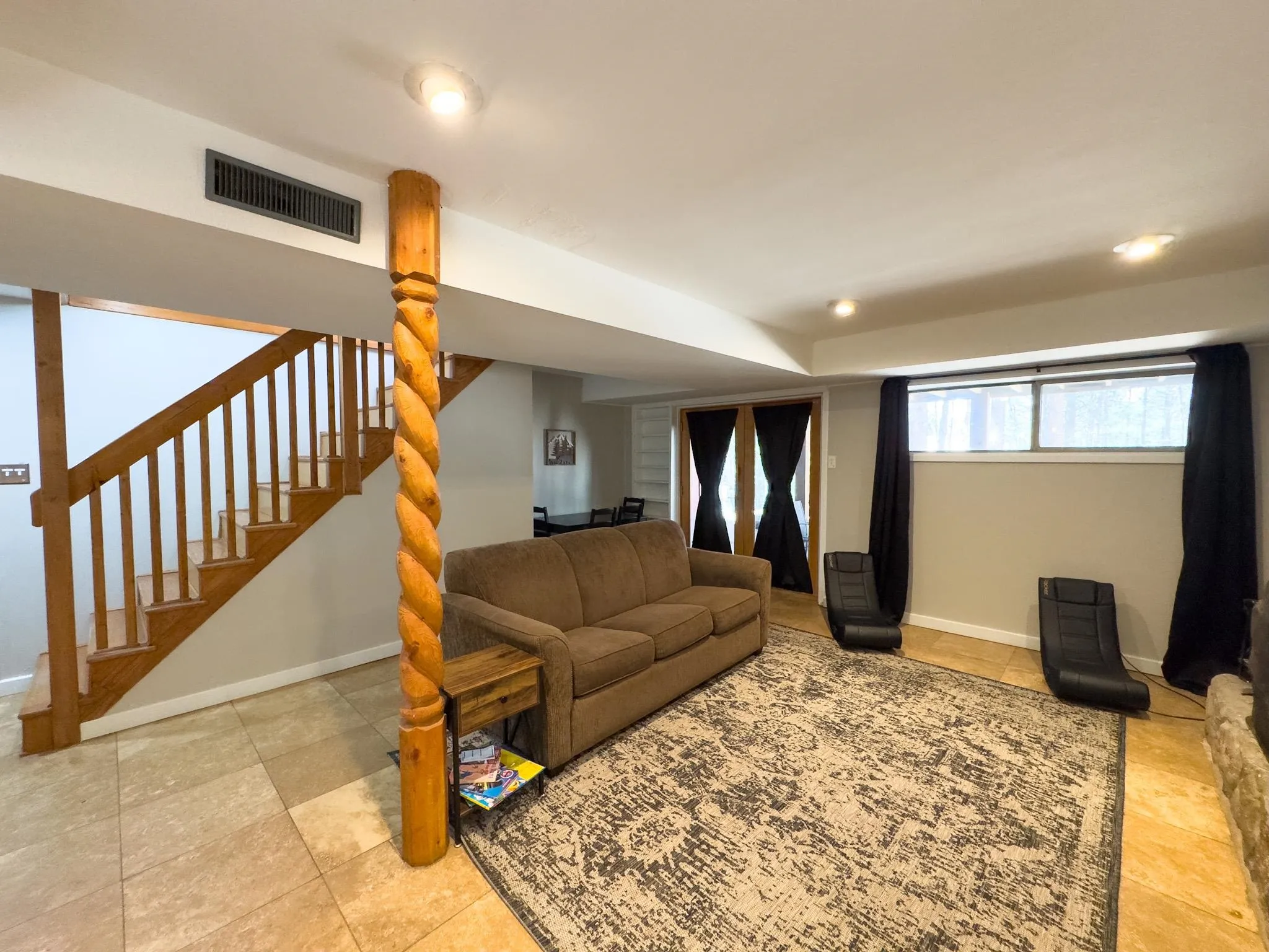 Affectionately known and “Chipmunk Retreat”, this 3 bedroom. 2 bathroom home has everything you need for a lovely home in the mountains. This open concept home has vaulted T&G ceilings, rock feature fireplace and a window wall which brings in lots of light to the main living area. All three bedrooms and two bathrooms are situated on this main floor, with the primary bedroom having an ensuite. Downstairs is a second living area equipped with bed & trundle for additional sleeping space. This home also has an additional 670 square foot heated game room (converted garage) that could work as an artist studio or at home office. Situated on a fairly level, forested lot, with plenty of wildlife to keep you entertained for hours. New flooring throughout the main level, paint, updated bathrooms and fully furnished means this home is ready to go as a turn key property, hot tub included!