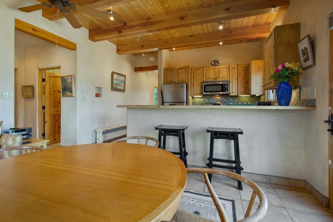 Elevated Above the Rest in El Prado with Current Rental INCOME to Pay a Mortgage! Perched atop a scenic hill, this stunning 1-acre income producing property is a true Southwest sanctuary, offering breathtaking panoramic views and the perfect place to end each day. Designed for both comfort and style, the main home embodies the essence of Southwest charm, featuring 2 bedrooms, 1.5 bathrooms, and T&G vaulted ceilings adorned with hand-carved beams. The warmth of radiant-heated tile floors and a classic kiva fireplace create an inviting atmosphere, while large windows flood the space with natural light, framing the stunning mountain vistas. Step outside, and you’ll find more than three outdoor seating areas, each offering a unique spot to relax and take in the sweeping landscape—one even includes a hot tub outlet for the ultimate retreat under the stars. The professionally landscaped yard is surrounded by a mix of mature and growing greenery, filling the air with the fresh scent of pine while providing both privacy and shade. A spacious slabbed parking area at the side entrance offers room for multiple vehicles, making it perfect for hosting gatherings, playing a game of basketball, or setting up an outdoor event. The true crown jewel of this property is the 566 sq.ft. fully equipped guest house with its own full kitchen, bathroom, laundry closet, and attached carport, which offers the same incredible views as the main house—making it an ideal retreat for visitors or an income-generating rental. For those needing extra storage or workspace, the property also boasts two large storage sheds set on solid concrete slabs. This hilltop escape is a rare find, offering the perfect blend of Southwest character, modern convenience, and natural beauty. The large space to the East is another great location to build a third residential structure. A home and land like this, with enough income to help significantly pay down a mortgage is a rare find. Don’t miss the opportunity!