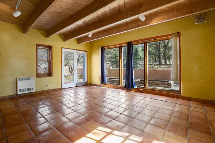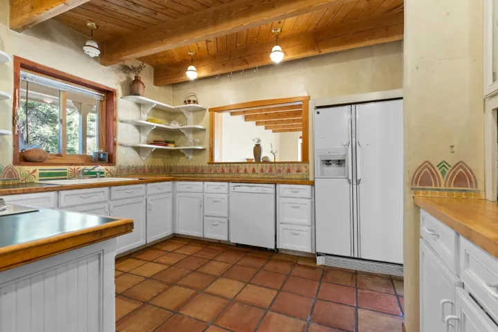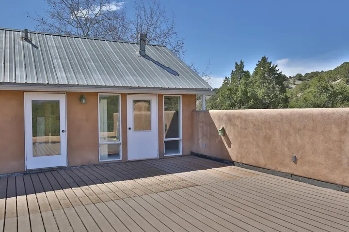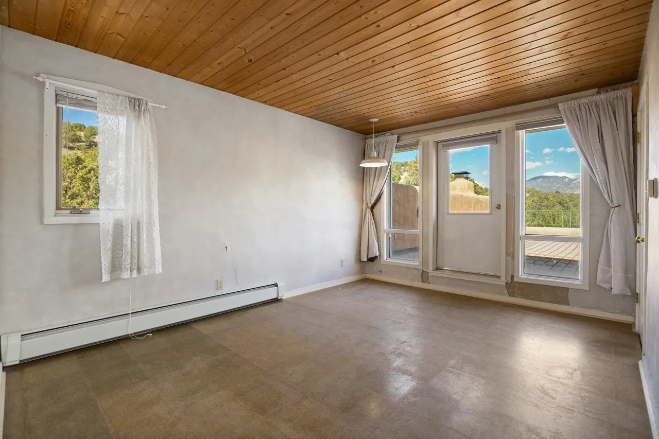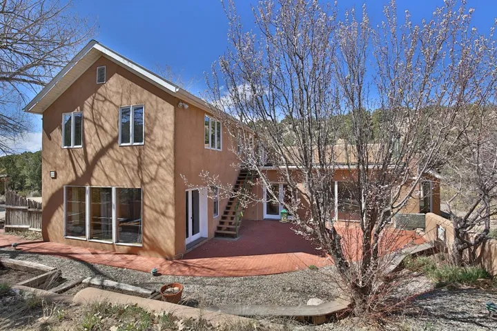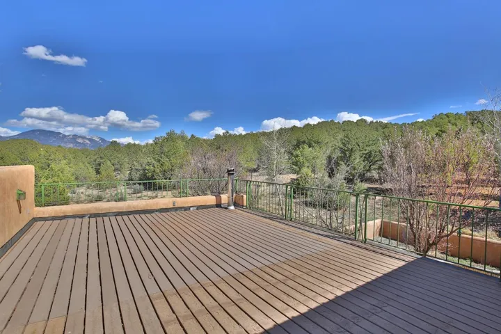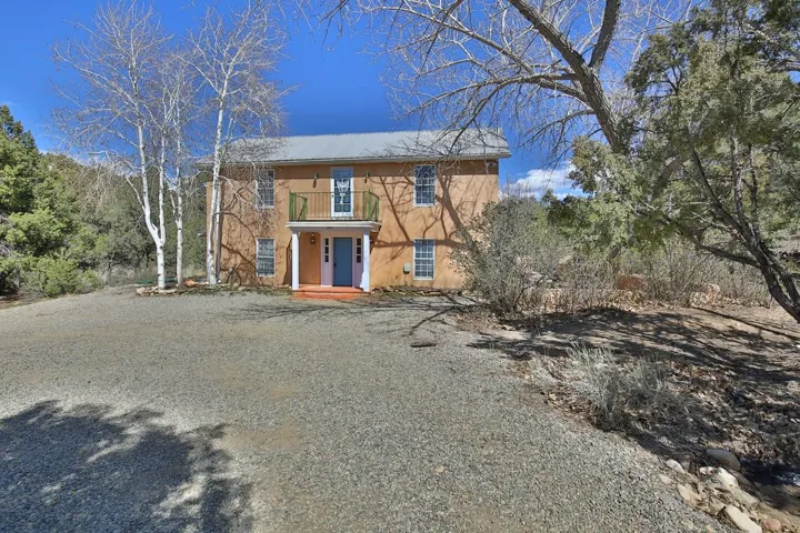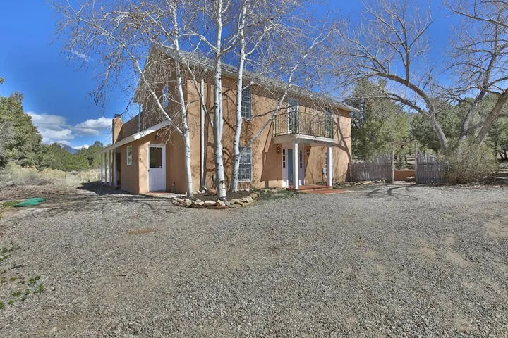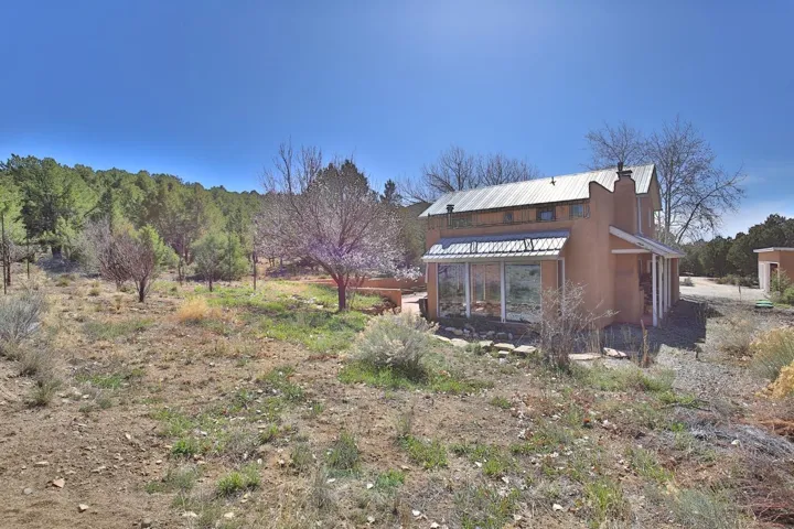 GOODBYE WORLD, HELLO MOTHER NATURE! Tucked at the end of the road in picturesque Sandia Canyon you’ll find a home that offers the epitome in peace, quiet, and privacy yet has fiber optic connections to the real world. Set on 4.3 acres and bordered by Taos Pueblo land this beautiful 3BR/3BA, 2,352 sq ft home with studio and infinity pool offers options for living, creating, or even working – if you have to. This 2-story adobe and frame home features a great room with high ceilings, a grand fireplace, and big windows to take in the views and bring the outside in. An antique wood stove will warm even the coldest of hearts. Cook feasts for a few or many in the country kitchen with lovely pantry and dine watching the deer mosey past. Upstairs you’ll find 2 bedrooms and 2 baths plus a kitchenette which has a separate entrance providing options for the owner. This could offer the flexibility for a multi-generational property. Of course, mountain views abound. Plant vegetables in the raised beds in the Spring and have garden parties in the Summer on the large patio. Invite friends for cocktails on the upper deck and be awed by the mountain views or just relax and take a snooze. Missing water in our high desert? Enjoy the infinity pool year-round and make use of the 410 sq.ft. studio to hone your creative talents or repurpose to suit your lifestyle + 2 car detached carport/garage. (Studio houses infinity pool and is heated with gas wall heater). Say “Hello” to the birds and wildlife and goodbye to neighbors too close and the sounds of the city. Relax, refresh, renew! Convenient access to town and Taos Ski Valley.