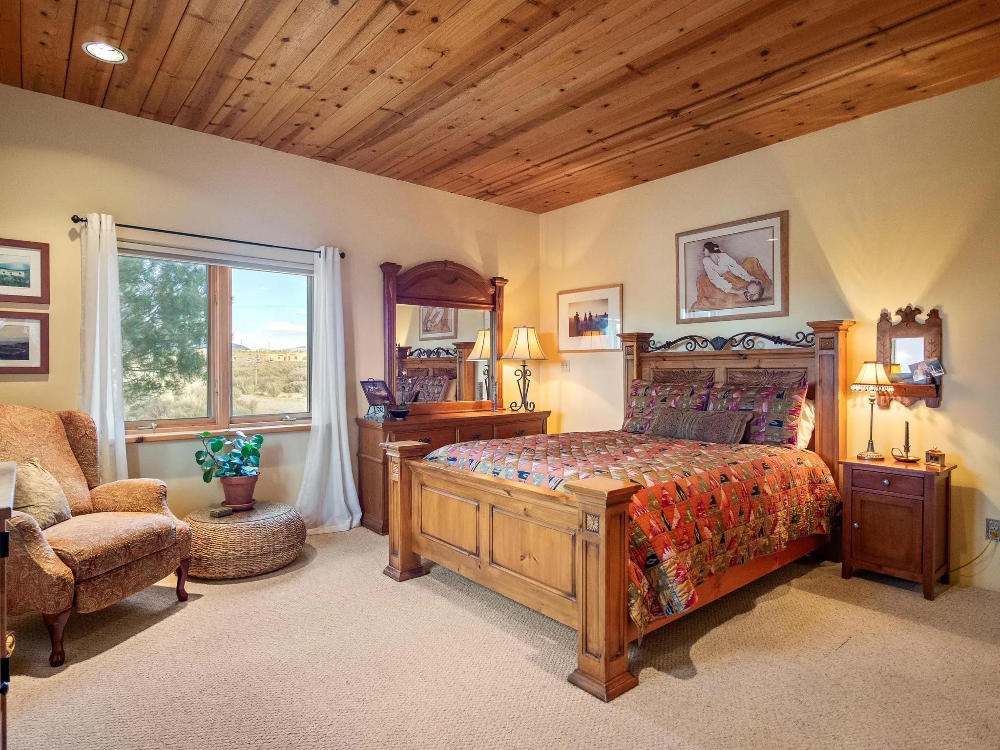 Escape to the quiet life at 13 Coyote Loop on the Hondo Mesa! The views don’t get any bigger or more magnificent from the windows of this beautifully maintained, single-level home on 5 acres! Step inside to a bright and airy open floor plan, where vaulted ceilings and expansive windows fill the main living space with natural light and capture stunning mountain views of Taos Mountain and the Sangre de Cristos. The seamless flow between the living room, dining area, and kitchen creates an inviting and functional layout. Kitchen highlights include granite tile countertops, custom cabinets, and a travertine & tumbled marble backsplash. Only a few steps around the corner to the ample-sized pantry for all the extras! Down the hall is guest bedroom number one, a laundry room, and a guest bathroom. A second hallway connects another spacious guest bedroom with an ensuite bath, a third guest bedroom, and at the end of the hallway is a true Pimary Suite Sanctuary! The Primary Suite offers a light-filled, quiet escape featuring a sitting area with courtyard views & access, a home office space, an ensuite bath with an oversized, soaking tub, and a walk-in shower. Take in the sunsets from a private second patio just outside of the French Doors on the west side of the room. To the back of the home is a private, fenced courtyard oasis with mature Aspen, Blue Spruce, & Fruitless Pear Trees. The flagstone patio offers great entertaining space with amazing westerly views! The other side of the 5 acres is home to a 2100 square foot building that begs for new beginnings. With in-floor radiant heat, a woodstove, a shop-style bathroom with a shower, toilet & utility sink, it is longing to become used for its highest and best purpose! Barn? Guest House? Workshop? This is a rare opportunity to own a truly special property with access to the Rio Grande only five minutes away. Close proximity to world-class hiking, biking, skiing, and water activities, this home offers an unparalleled outdoor lifestyle in every season.