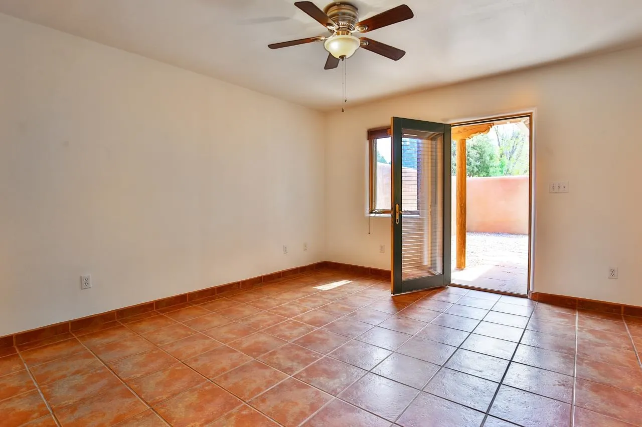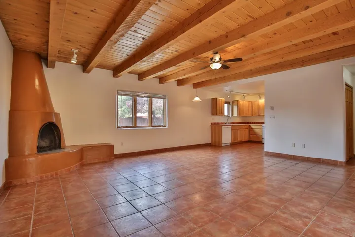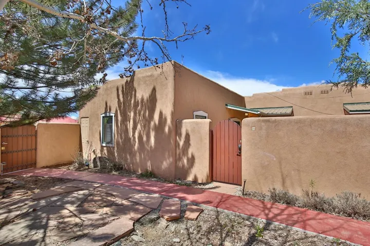 Immaculate, well-maintained 2-bedroom/2-bath condo in Town. Generous 1,113 square feet of classic Taos style. Good floor plan with kitchen open to living-dining areas, and bedrooms separated on either side of living room. New Navien system for the in-floor radiant heat. A “kiva”-style wood-burning fireplace, milled beams, tongue-and-groove ceiling, other southwestern features add to the ambiance. South-facing windows in living room provide passive solar warmth. Private courtyard with high privacy wall. The common pathway leading to the condo’s entrance gate is nicely landscaped with trees and plantings. The condos are nestled behind a high wall along the city street. There is a separate individual owner’s storage closet. Located about 3/4 mile south of Taos Plaza and Historic District. Close to Apothecary coffee shop, The Bread Club restaurant, Mary Jane’s food cart, Taos Valley Inn, two grocery stores, and the Farmers Market. Note: Seller will not consider offers from unrepresented buyers.