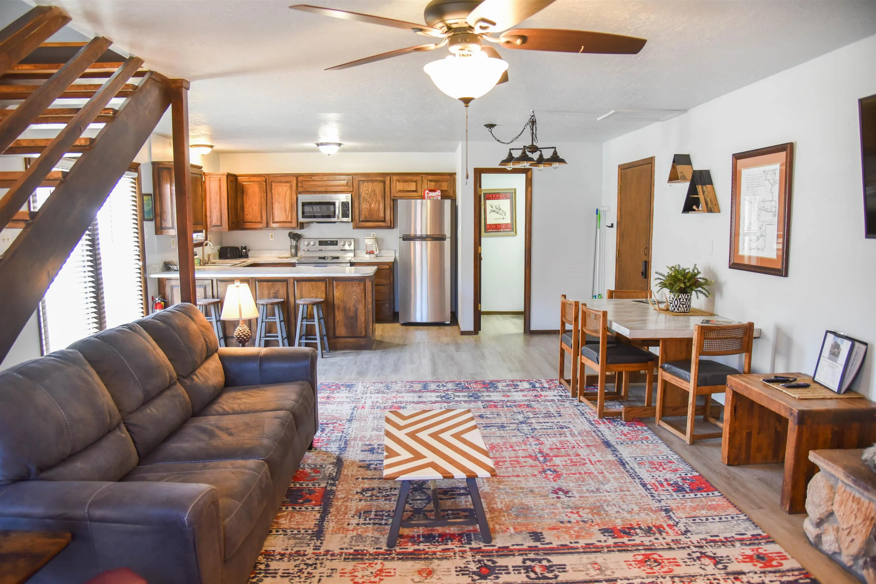 Investment at it’s finest! We welcome to view the ‘River & Mountain Riders of Brookside,’ a unique duplex nicely situated on the river in downtown Red River, New Mexico with 4 bedrooms & 4.5 bathrooms! Description Upon viewing this charming property decide which side YOU want to start in! Should you choose the River Rider to your right or the Mountain Rider to your left?!! Both mirror each other identically and connect via adjoining doors located on the middle floor between the two living areas… River Rider Description: Walk into our foyer. Leading to your left is the door to the single car garage, semi fenced yard which offers a great gathering place around the wood burning fire pit overlooking the Red River. Also on this ground level access is the laundry area complete with a full sized washer/dryer. Continue up the stairs to the middle story and be welcomed into the newly updated open concept living room with private North facing balcony doors, foldout sofa, wood burning fireplace, flat screen TV, spacious dining area, half bath and the completely updated kitchen housing new stainless steel appliances and sleek Formica style counter tops. The larger bedroom ensuite houses a Queen sized bed and a twin daybed with a trundle, flat screen TV, private bathroom with a tub/shower combo and a private East facing balcony looking towards the Red River Ski Area, river, and the Carson National Forest. The Primary bedroom features it’s own bathroom with a tub/shower combo, a king sized bed, and it’s own private North facing balcony towards Main Street and the river… Mountain Rider Description: Upon entry into this charming property you will walk into our foyer. Leading to your right is the door to the single car garage housing the ping pong table, small fenced run access. Also on this ground level is the laundry area complete with a full sized washer/dryer. Continue up the stairs to the middle story and be welcomed into the newly updated open concept living room with private South facing balcony doors, foldout sofa, wood burning fireplace, flat screen TV, spacious dining area, half bath and the completely updated kitchen housing new stainless steel appliances and sleek Formica style counter tops. The larger bedroom ensuite houses a Queen sized bed and a twin daybed with a trundle, private bathroom with a tub/shower combo and a private East facing balcony looking towards the Red River Ski Area, river, and the Carson National Forest. The Primary bedroom features it’s own bathroom with a tub/shower combo, a king sized bed, flat screen TV and it’s own private South facing balcony towards Caribel Condominiums… Entire Property: This home is complete with Fiber Optic Wi-Fi and smart TV’s so when you or your guests want to kick back and enjoy your evenings after a fun filled day then you have the amenities to do so, just sign in to your favorite apps! This home has gorgeous views from all the decks/balconies and is located on the Red River and just a hop, skip and a jump from the Red River Ski Area and downtown where there is so much to do from dining in the local eateries to shopping to exploring our great outdoors with many activities such as skiing, snowmobiling, ziplining, nature trails, hikes, off-road trails, fishing, hunting, horseback riding, jeep tours, festivals and so much more! This modern mountainous retreat is great as a romantic vacation or a family destination generation after generation. Sells Furnished minus exclusion list/personal items. Rental history available upon request!