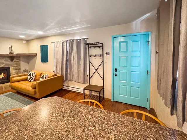 You must see this cozy condo conveniently located just a brief stroll away from Angel Fire Resort. It is walking distance to dining, skiing, bike park, hiking trails, shops, and endless mountain adventures! This condo is perfect for a short or long-term rental unit, or a great place to bring the family up for a lovely mountain getaway. This condo features a nice front deck as well as an external ski locker. The wood burning fireplace and brand new heater will keep you warm on those chilly days. The open-concept living area flows into the kitchen which boasts luxury vinyl flooring, wood cabinets, and a breakfast bar with seating for four. The large laundry closet in the hallway with full sized appliances is a bonus. The primary bedroom and contains an ensuite bathroom with a separated vanity for convenience. This unit comes fully furnished. There is a special assessment to update the windows and siding of the building. The cost is included in the COA fees. At this price, it won’t last long! Bonus! This property has an assumable VA loan from Pennymac, featuring an attractive 5.625% interest rate on a 30-year fixed-rate mortgage and offering significant savings in today’s market. The owner’s current VA loan is assumable under the current terms by veterans and non-veterans as a third-party purchase, subject to lender approval. A 60-day close is required for a VA loan assumption.