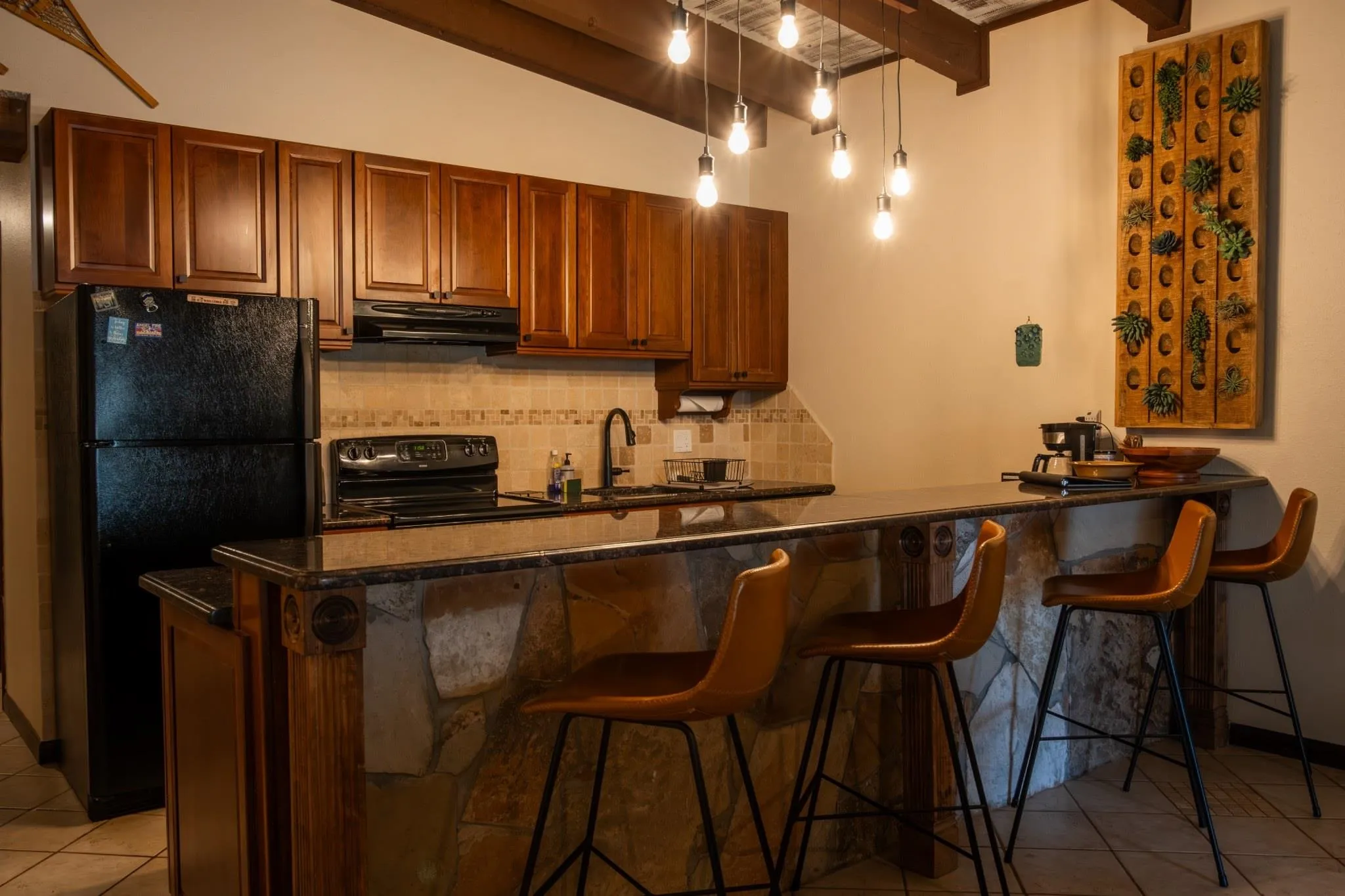 Turnkey, fully furnished, and just one block from Chile Express Lift- This beautifully remodeled top- floor condo delivers the Mountain lifestyle buyers are looking for. Located within easy walking distance to ski lifts, rentals, dining, and the Village, this 3-Bedroom, 2.5 Bath residence offers space, comfort, and flexibility for full-time living, a second home, or proven rental property. The open Living and Kitchen area is ideal for gatherings after a day on the Mountain, featuring bar seating for four, Dining space for 4 more, and a cozy gas Fireplace. The kitchen is thoughtfully equipped with quality appliances, ample storage, and generous counter space that is perfect for entertaining family and friends. The spacious Primary Suite includes a private half bathroom and balcony, while a second King bedroom features an en-suite bathroom. The third bedroom accommodates guests comfortably with two queen beds. A full hall bathroom serves the main living area, creating an ideal layout for groups or extended stay. As a top-floor unit, the condo enjoys higher ceilings, added privacy with no neighbors above, and excellent natural light. Additional highlights include in-unit washer and dryer, radiant heat with digital thermostats, to private balconies, generous storage for ski gear and bikes, and convenient parking. Offered fully furnished, truly turnkey, this condo is ready to enjoy immediately-whether for personal use or as a high-demand rental. With it’s prime location, thoughtful layout, and move-in-ready condition, this is a rare opportunity to own a slope-side Angel Fire Getaway!!
