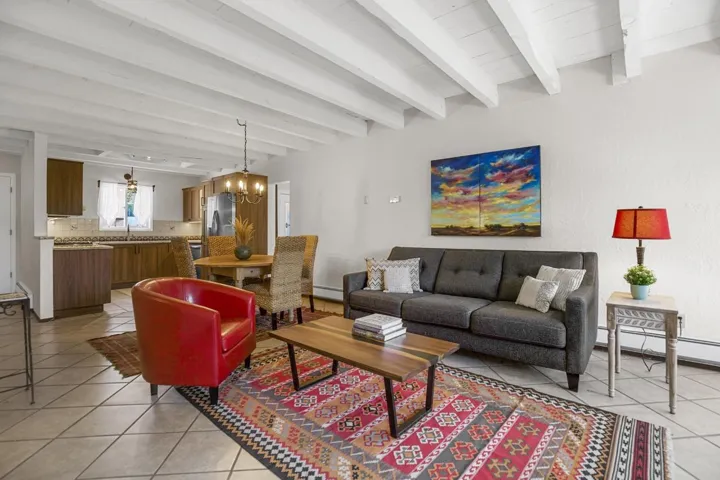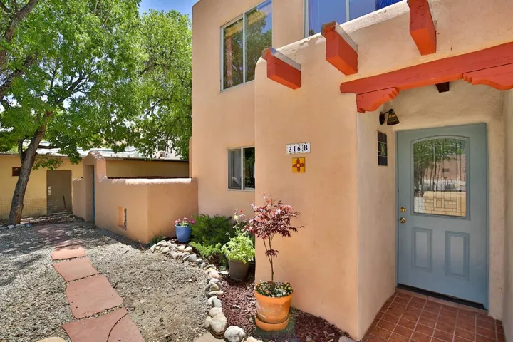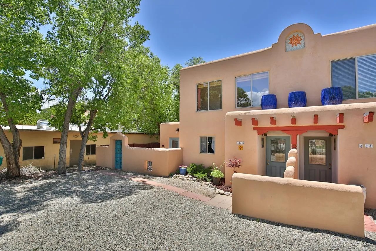 This recently renovated 1560 sq ft, 2 bedroom/2 bath town house at the corner of La Lomita and Don Fernando in the heart of the Historic District is a short stroll to the wonderful amenities of Taos: galleries, music, restaurants, and parks. With views of Taos Mountain directly from your primary bedroom this two story town house offers you a prime location, an updated kitchen (new appliances, new kitchen cabinets and new granite countertops) and updated baths (new vanities and lighting). Shaded and spacious outdoor spaces both in front and back with drip irrigation installed mean you can plant your garden of flowers and veggies this year. The bonus studio room can be a heated workshop or office or even an overflow sleep space for your guests. With ample off-street parking this town house is set to be your easy care home, or practical pied-a-terre in the heart of Taos.