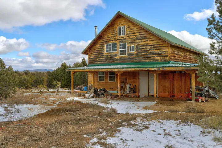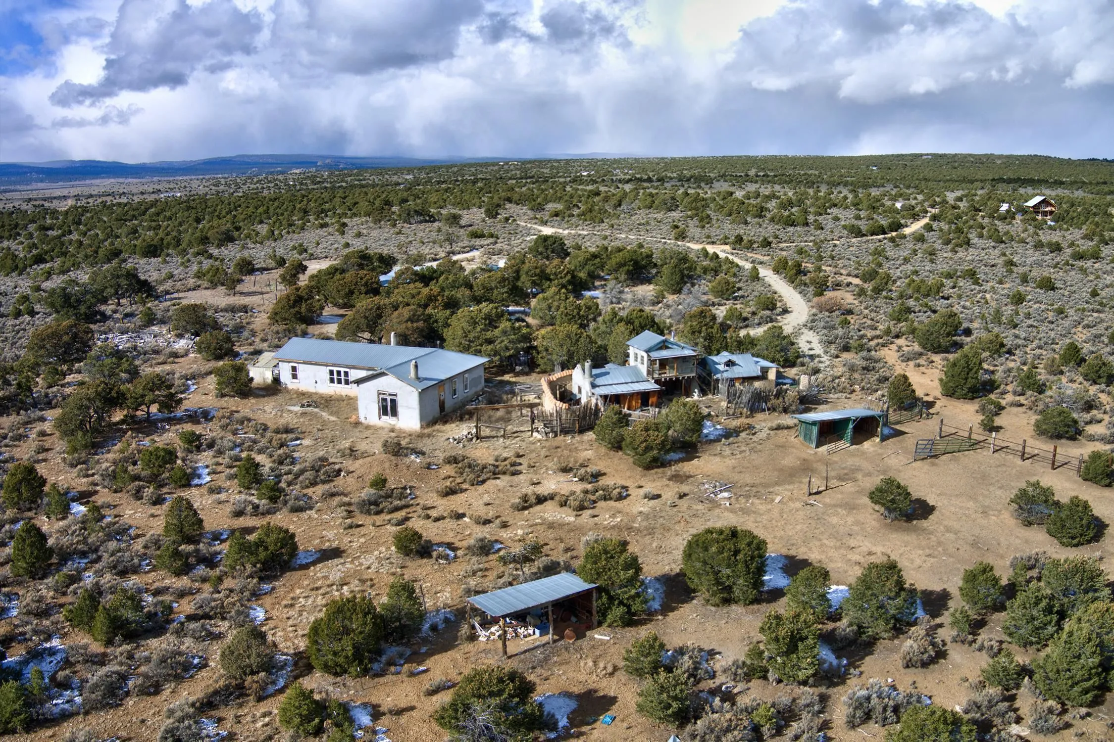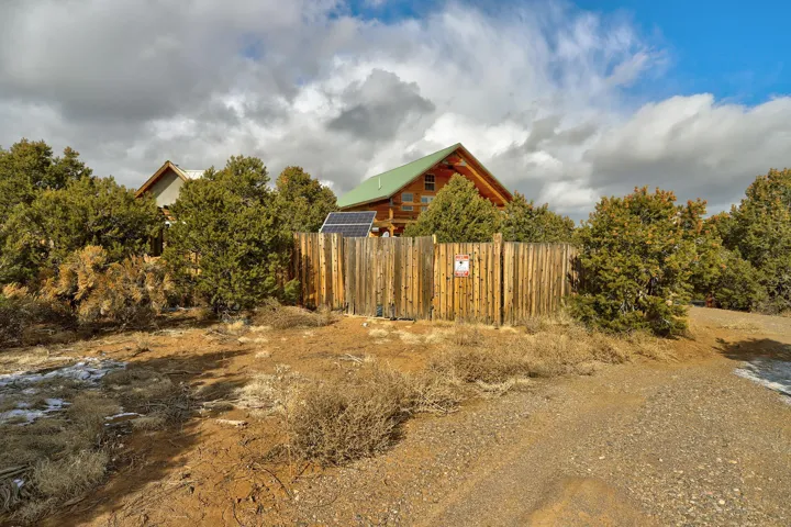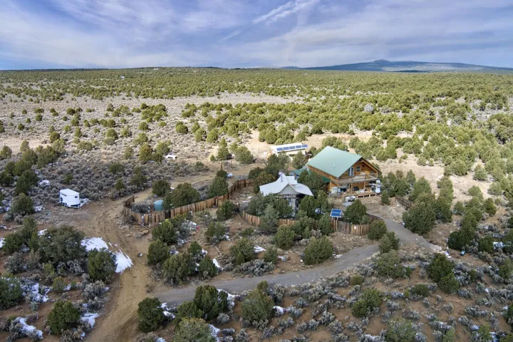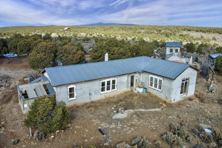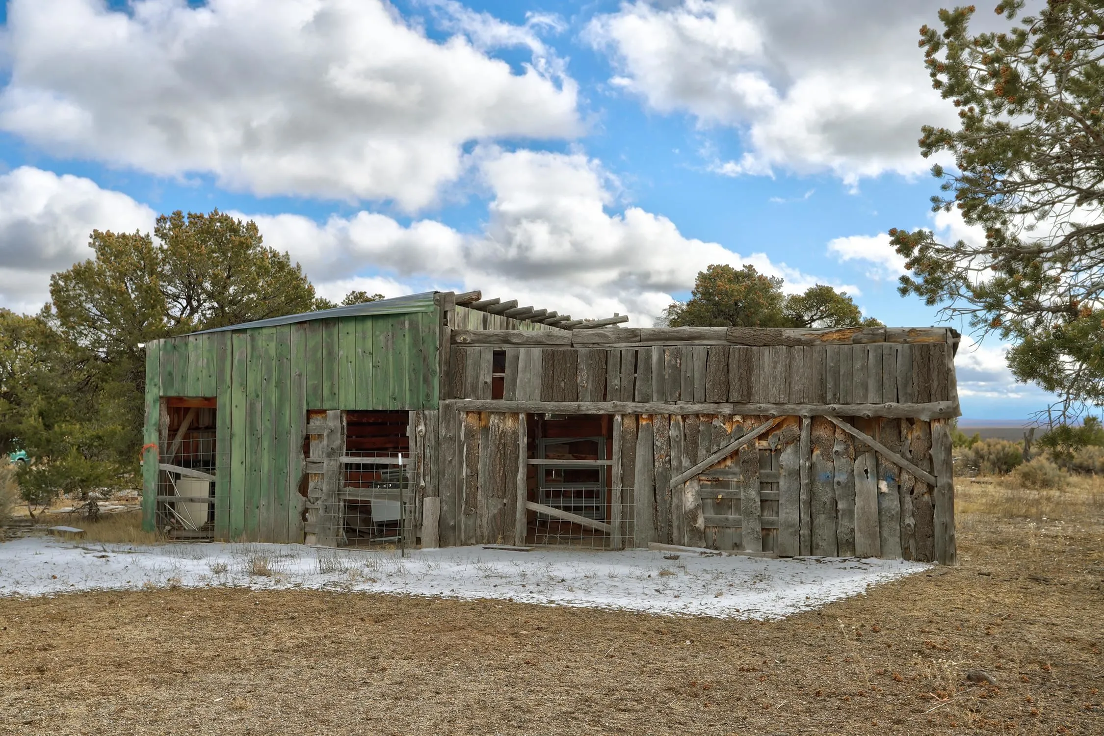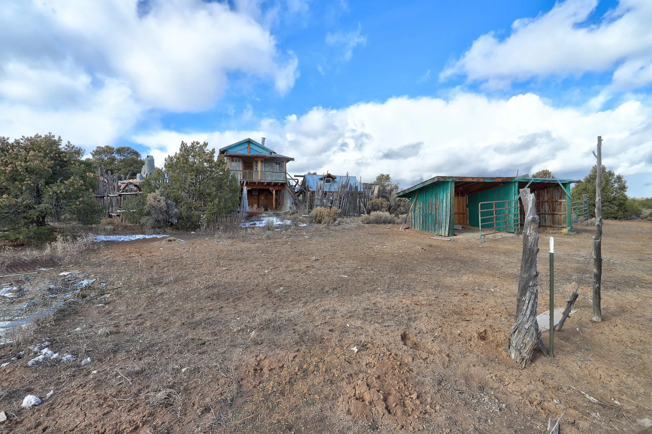 Welcome to Flying F Ranch, a rare 288.59-acre property where Southwestern charm meets sustainable living. With unobstructed views stretching 35 miles, this one-of-a-kind ranch is a rugged sanctuary awaiting your creative vision. Two primary residences provide plenty of space for everyone. Enjoy unmatched views from the second-floor primary suite and spacious covered balcony of the 2-bedroom, 1.5 bath chalet. The classic adobe home features a sunken living room 2 Carmen Velarde fireplaces, a wood stove, and a galley kitchen with custom tile countertops and backsplash and brick flooring. Outbuildings include a 2-room cabin, your own turn of the century adobe chapel, two hay barns, a workshop, garage and more. Plenty of space to roam, raise, or ride. We’ll provide the bones and bling, you bring your imagination. Whether you’re seeking a retreat, a working ranch, or an inspiring canvas for your dreams, Flying F Ranch is an offering unlike any other. A place of wild, panoramic freedom, where sunrises and starlit skies become daily rituals.
