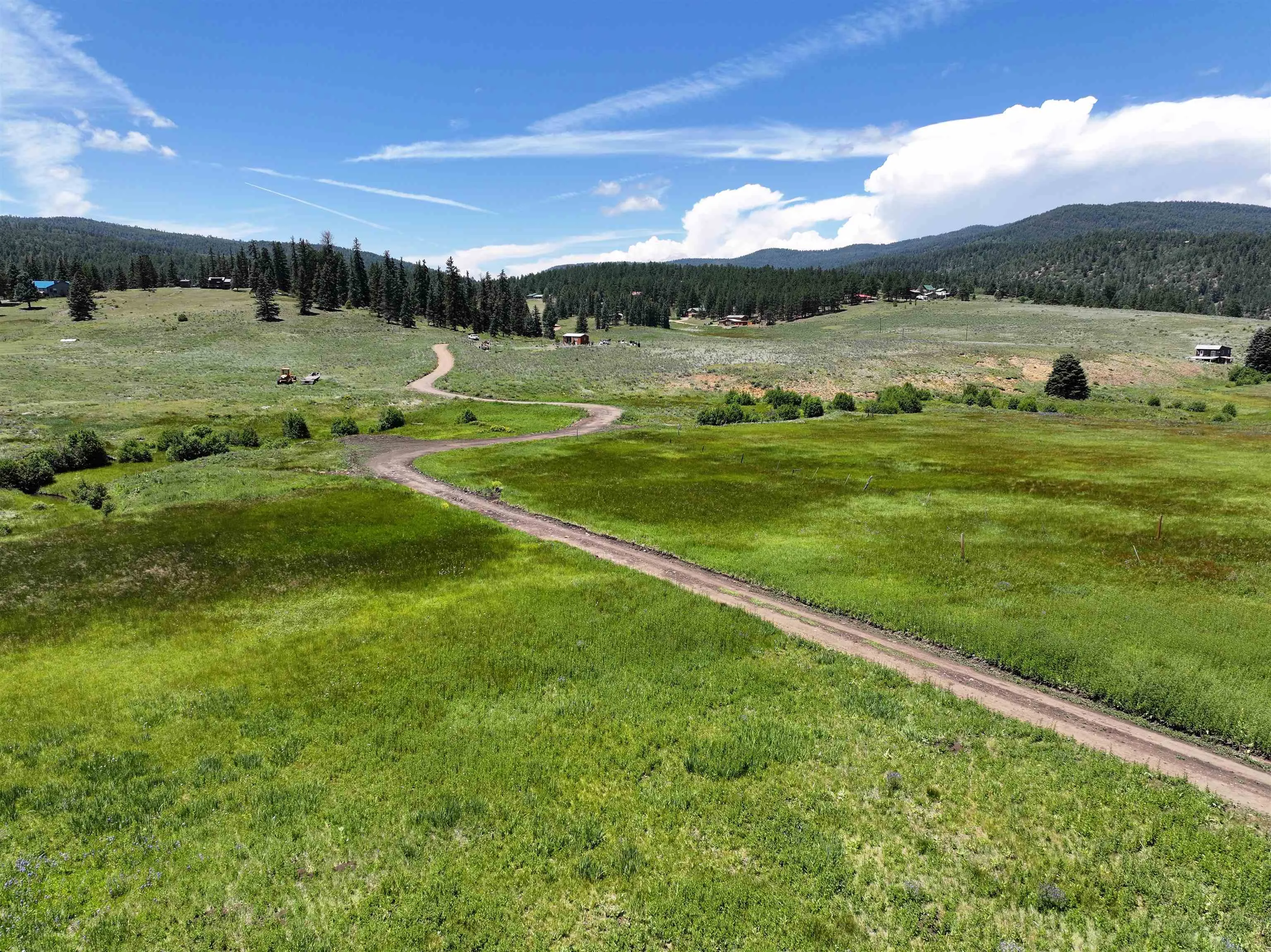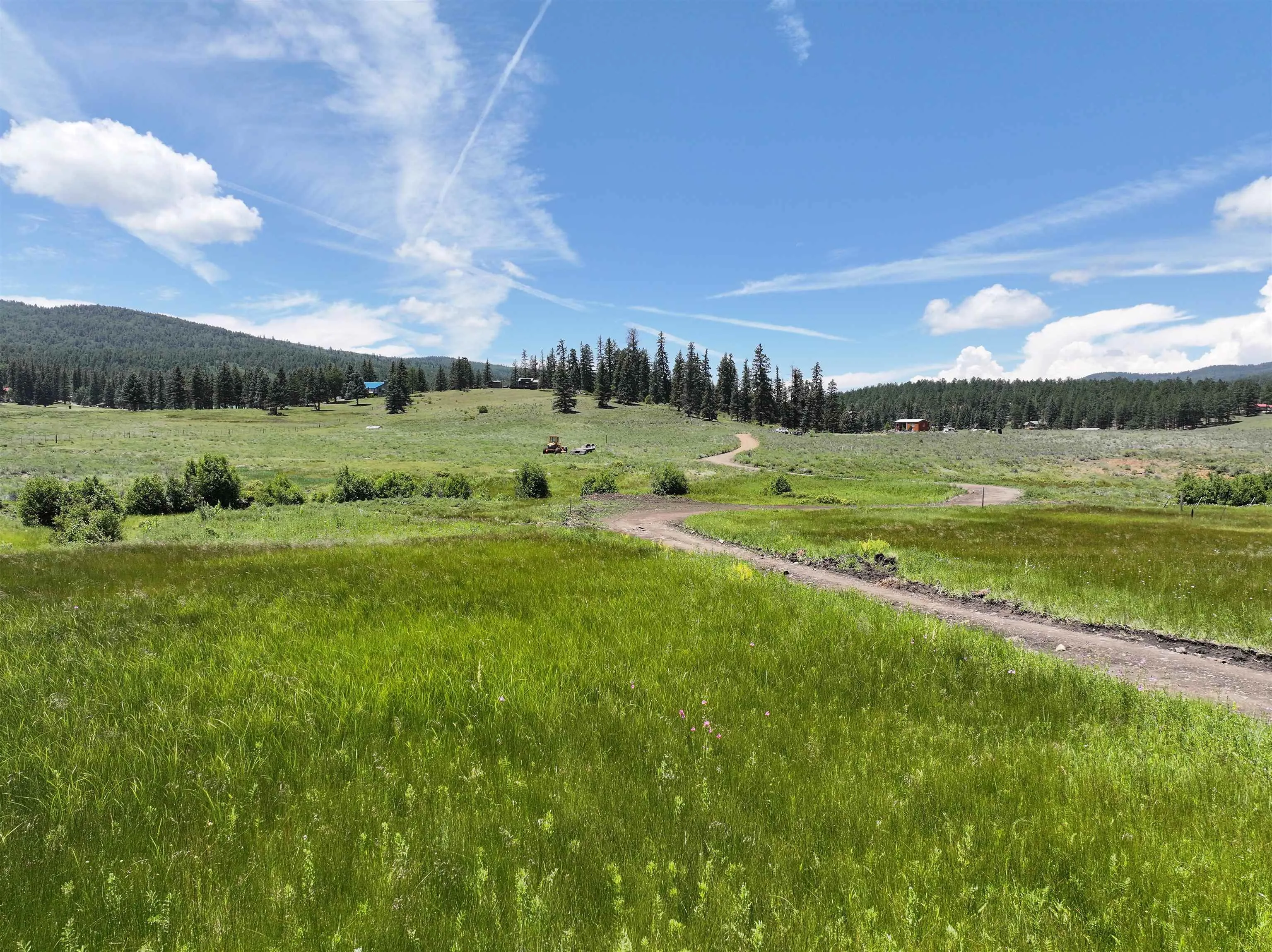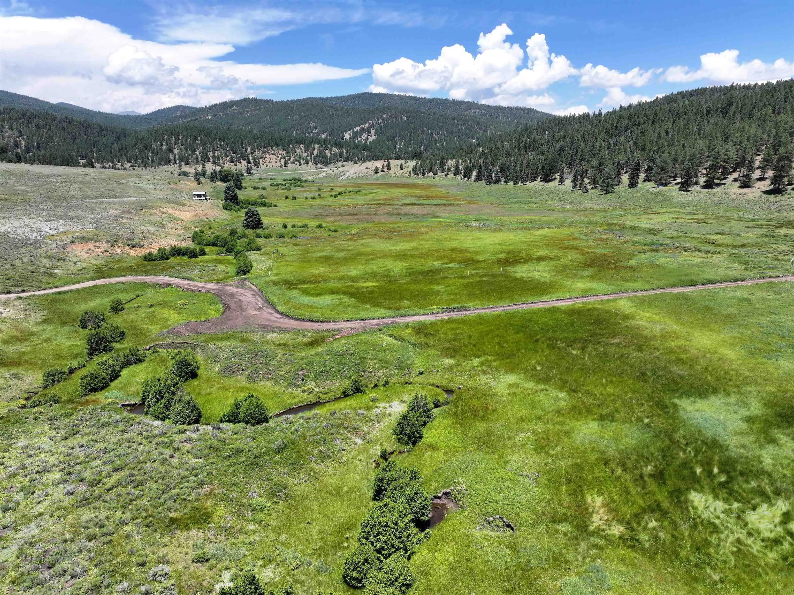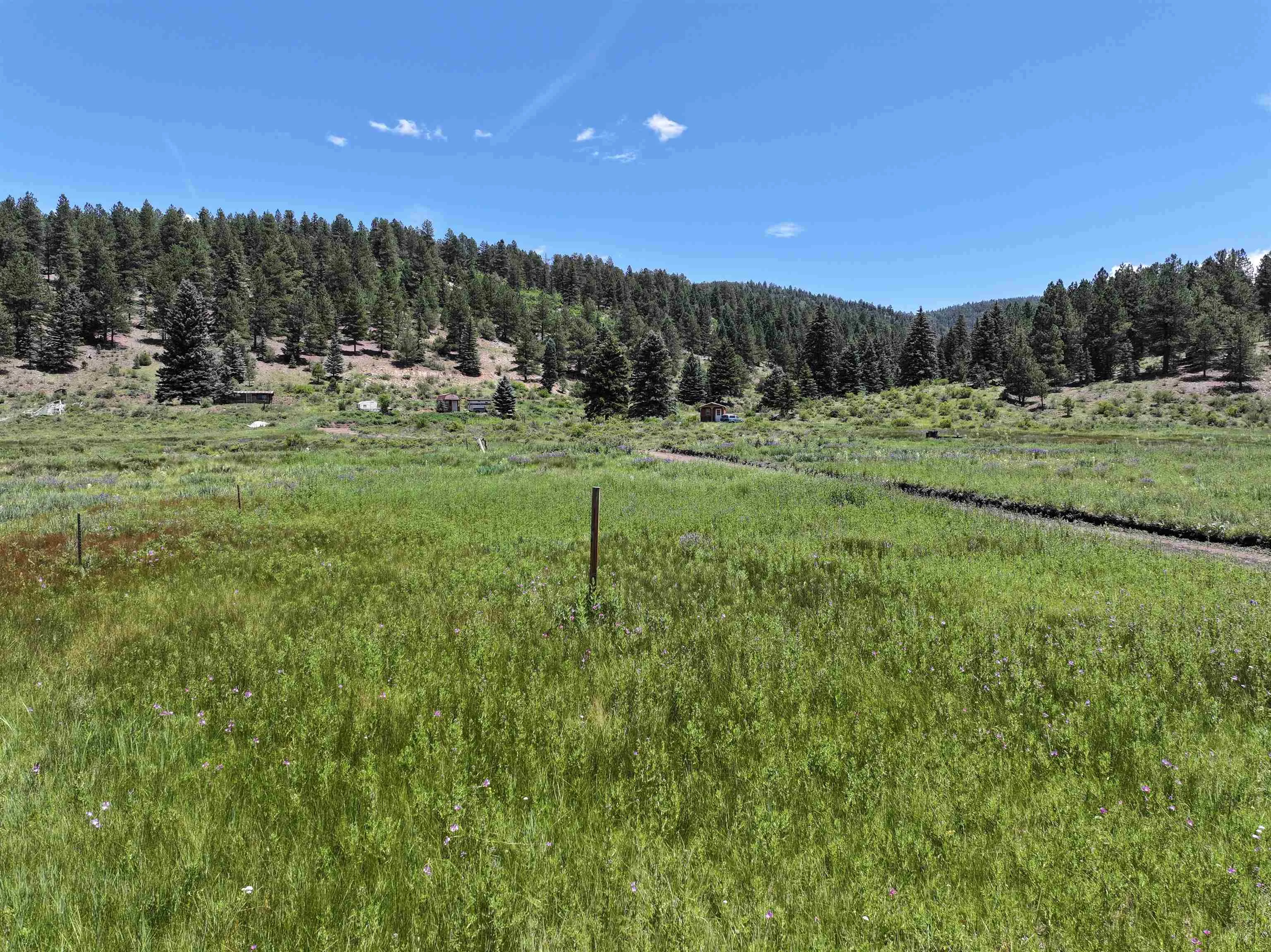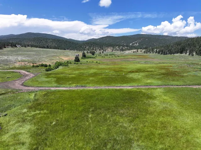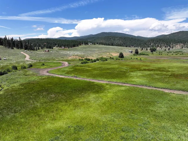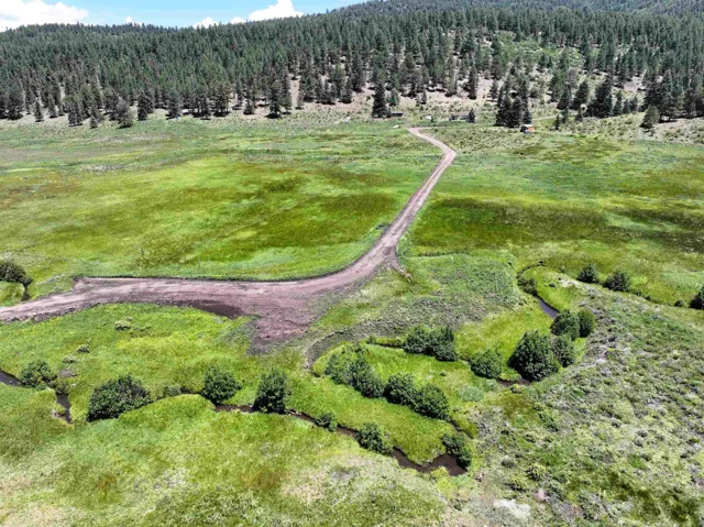 From Taos, Travel toward Angel Fire on State Hwy 64 approximately 13 miles to the intersection of Valle Escondido Road. Turn onto Valle Escondido Road and drive about 1.1 Miles to 5 way split intersection to your left, where you should see 103 Valle Escondido Road. Turn at the split and keep left, where the private road will traverse around the wooded hill. As the road drops down into the green valley toward Tienditas Creek, you will see the Real estate sign.