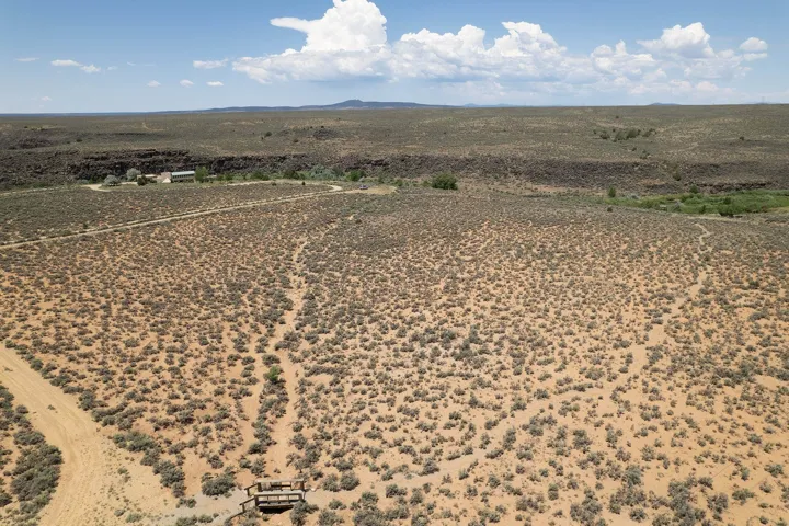 From Taos head south on Hwy 68, Turn right on 110 towards golf course, after 1.5 miles turn right on Los Cordova, after 1.7 miles turn left onto Thomas H Romero Rd, follow the road past houses straight to sign on the right.
