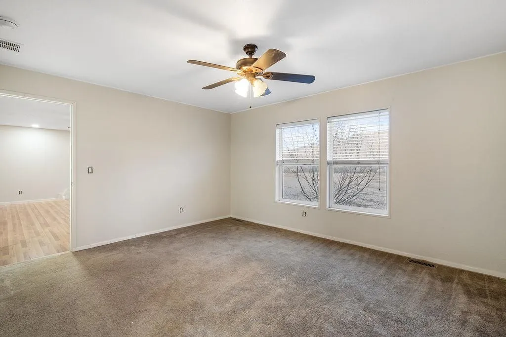 This charming 3-bedroom, 2-bath home sits on nearly an acre of land and just minutes from the center of Questa. With 1,700 square feet of open-concept living space, there’s room for everyone to spread out, relax, and enjoy. The split-bedroom floor plan offers privacy, while the generous kitchen and living area make it perfect for family time or entertaining guests. Step out onto the front deck and take in the mountain views and the peaceful surroundings. Whether you’re starting a family, upsizing, or simply looking for a quiet place to call home, this one offers the perfect blend of comfort, space, and small-town charm. Water rights and mature trees. Don’t miss this incredible opportunity to own your family home in beautiful northern New Mexico!