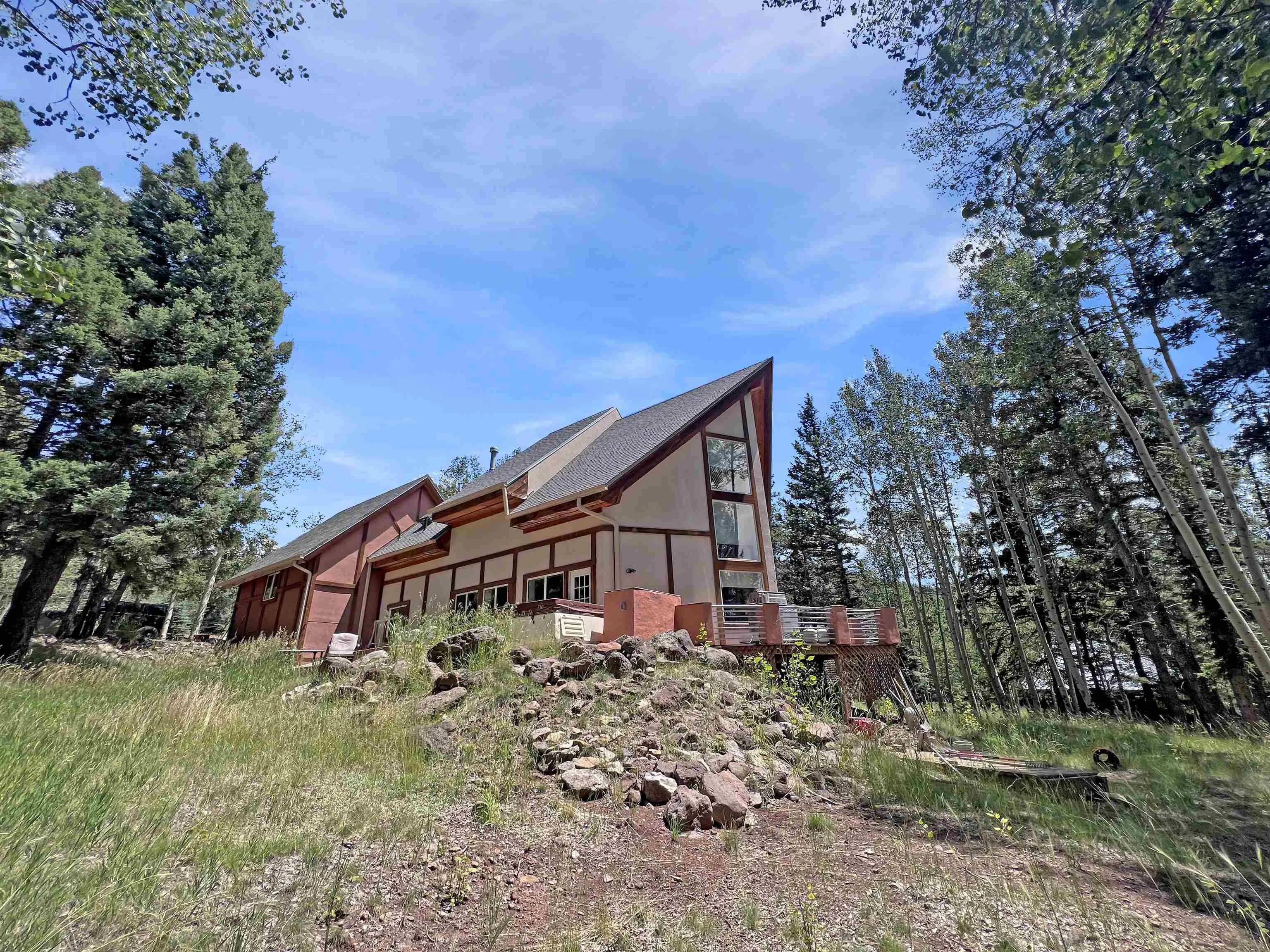 Welcome to your private mountain retreat! This beautiful and unique 2-bedroom, 2-bath home, tucked away on 0.75-acres and with a greenbelt below the house, offers the perfect blend of natural light and rustic charm. Inside, you’ll find vaulted ceilings and expansive windows that frame the tall pines outside. Custom finishes throughout the home add character, and the open loft provides flexible space for an office or bunk area. The basement features a large workshop, and a bonus half-bath is conveniently located in the workshop area. Per the owner, construction is Double Wall Framing exterior 2×6 exterior -1″air gap – 2×4 interior. Also note a new boiler was recently installed. Head down the mountain to enjoy Angel Fire’s winter and summer activities such as skiing, snowboarding, snowshoeing, cross country skiing, as well as hiking, fishing, golf on AF’s PGA rated 18-hole course, and mountain biking on the premier AF Bike Park. You’ll love being just minutes from amenities and activities while enjoying the privacy of your own woodland haven! Call us today to schedule a showing!