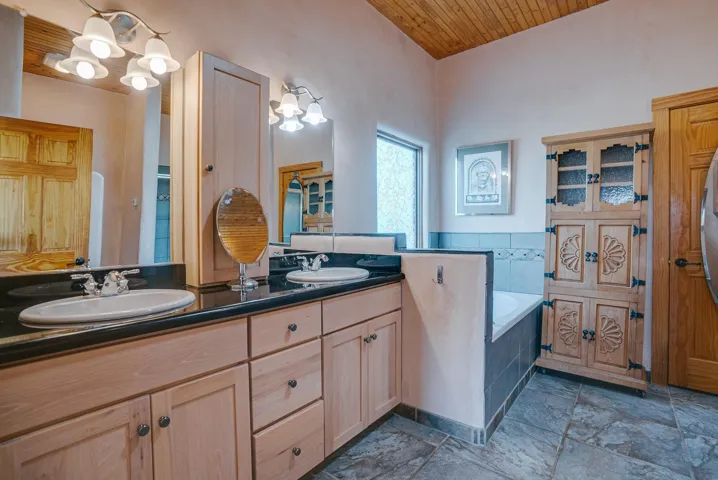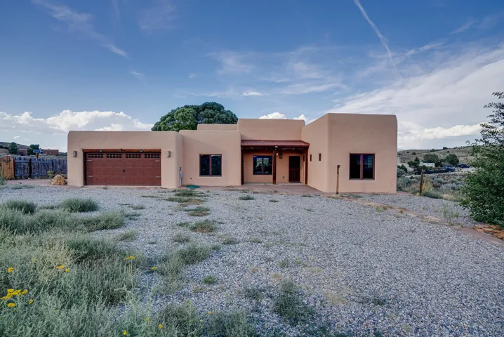 If coming from the north, take Blueberry Hill SOUTH (towards Santa Fe) to Arroyo Park Drive. Turn RIGHT (WEST) on Arroyo Park Drive and follow the road around the very large bend and the home will be on the LEFT. If coming from the south, take Lower Ranchitos Road to Blueberry Hill. Go NORTH (RIGHT) onto Blueberry Hill, go up the winding hill and at the top, take a LEFT (WEST) onto Arroyo Park Drive.