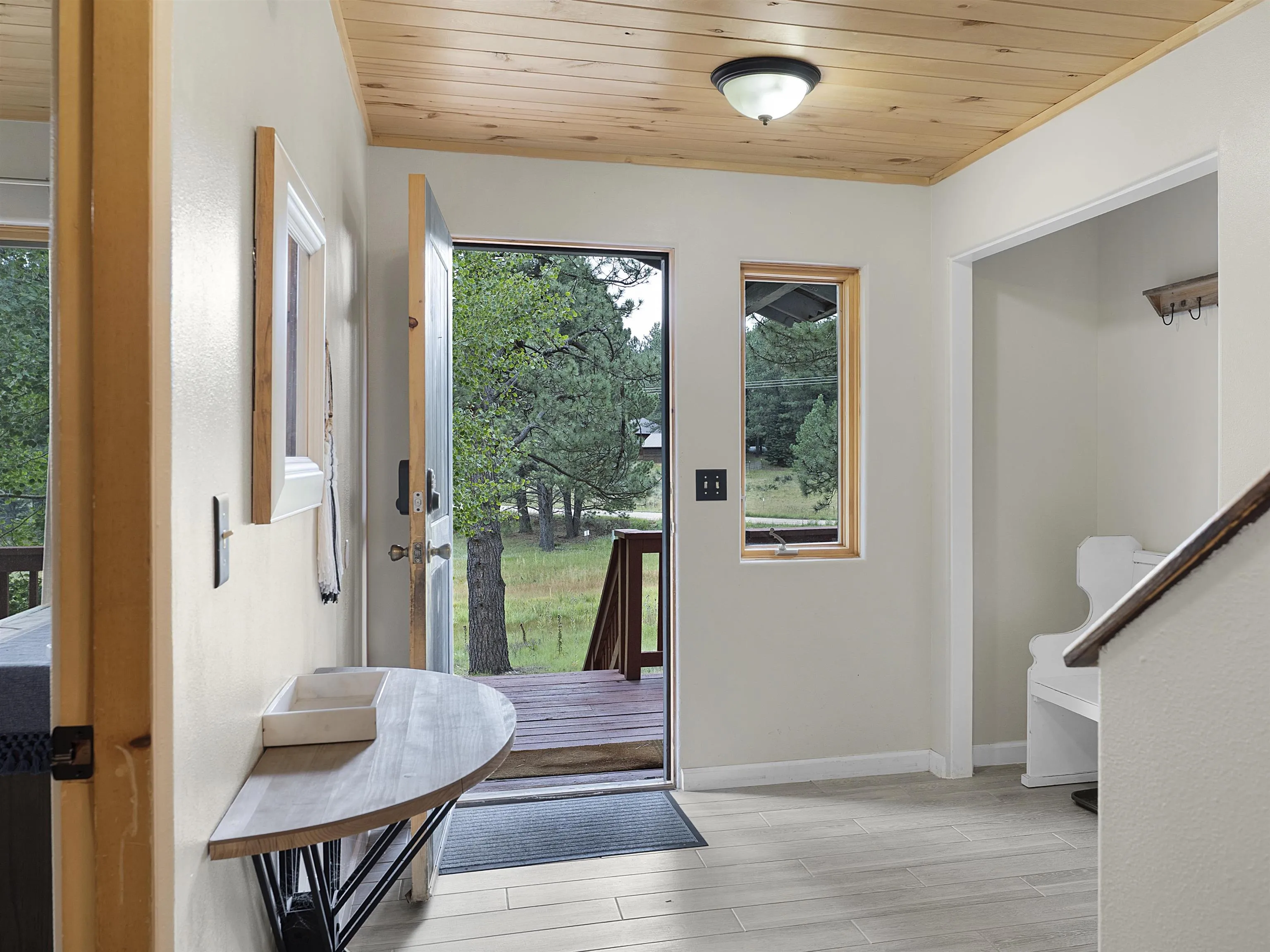 Discover the ideal mountain retreat in this 3-bedroom, 3-bathroom home just one mile from shopping and under two miles from the ski hill. The main level features two bedrooms and two bathrooms, plus a large attached garage for convenient parking and storage. Upstairs, you’ll find a spacious tiled kitchen, dining area, and living room all with soaring ceilings. Relax by the fireplace or step outside to the wraparound deck with endless views – the perfect spot to relax in the hot tub. The property backs directly to the Girl Scout Ranch and the Sage Trail is only a short walk away, connecting you to miles of hiking and fresh mountain air. The proven rental history and convenient location make this an incredible opportunity.