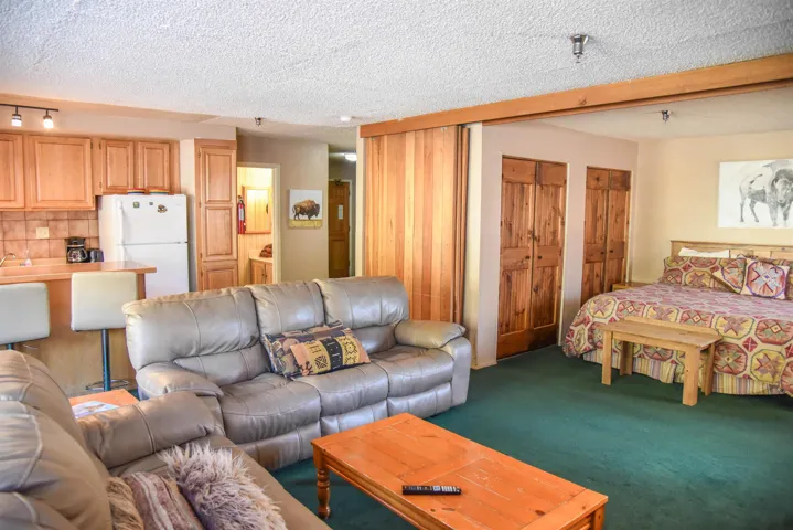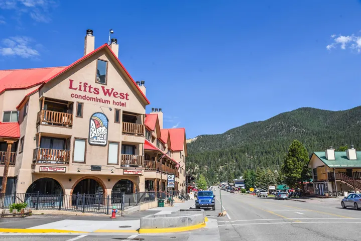 As you walk into this condo you’ll be welcomed into the foyer. Straight ahead you’ll find a king guest bedroom with balcony access facing the ski area face and West end of Main St. and a full bathroom with shower/tub combo, vanity and toilet. To the left of the foyer you’ll find the cozy kitchen with white appliances, dishwasher, cabinetry storage, island and dining area. The comfy living room with a wood fireplace, leather furniture and dual balcony access to overlook Main Street and the mountains beyond and the West side overlooking the Red River Ski Area “Face”. Just off the kitchen you’ll find the primary bedroom with a king bed, Main Street balcony access and another full bathroom with shower/tub combo. Balconies are perfect for watching 4th of July Parade, listening to festival music or watching the Winter Torch Light Parades! Parking available in covered garage beneath in addition to parking surrounding complex. Condo has access to elevator, guest laundry, and outdoor pool! Currently a rental through Lift’s West Condominiums with lots of good potentials! Use as a great rental/vacation home/home. Additional photos coming soon…