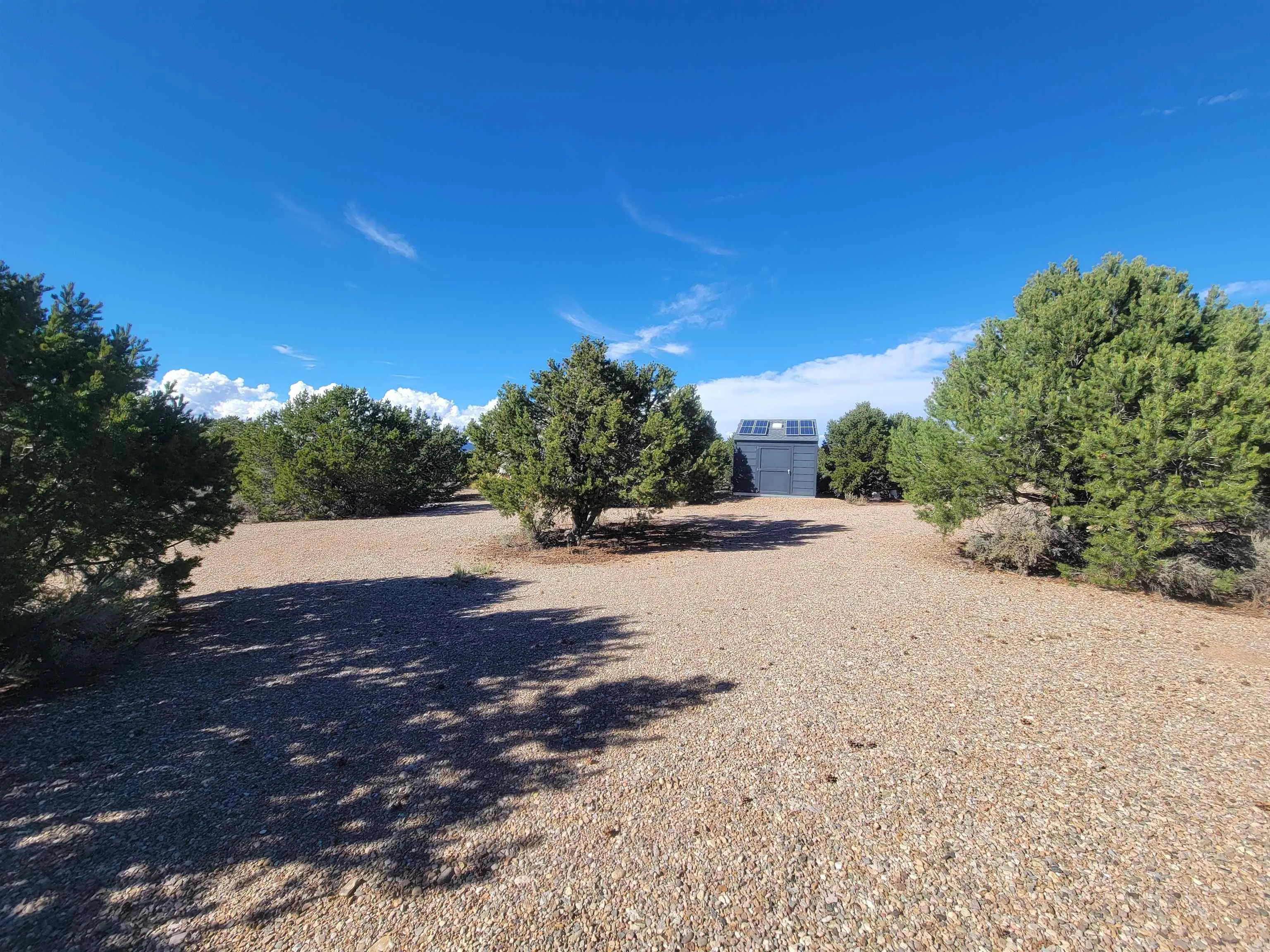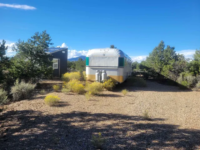 This is a place which needs to be seen in person as pictures won’t do it justice. Nestled in between the pinon and juniper trees at the base of the Latirs, this peaceful and serene 5-acre improved lot has so much to offer. Three separate structures are already present. Each one is plumbed. Two of them can be turned into whatever your imagination brings. The current owner was going to house artists. The third structure houses the well, which is powered by solar cells. Electric is right by the lot however, should you want to tap into the grid. The lot has been cleared, and gravel driveways are already there. This is a must see for anyone looking for a special place.