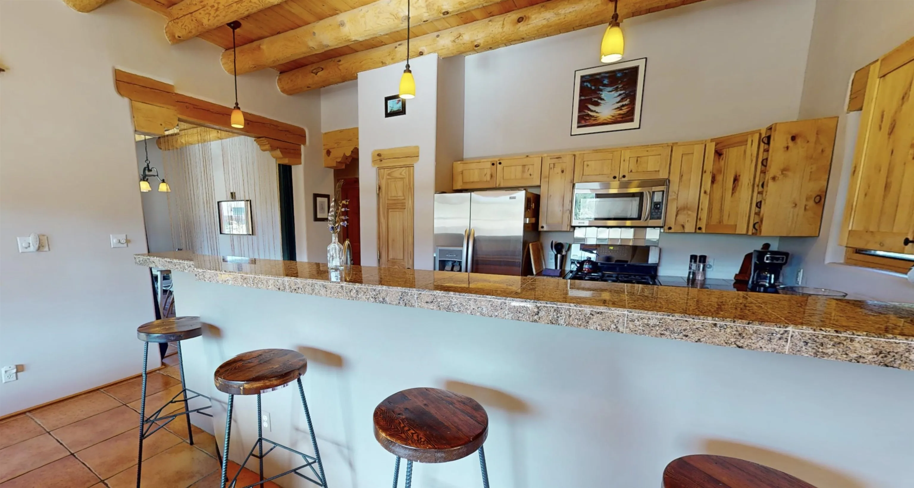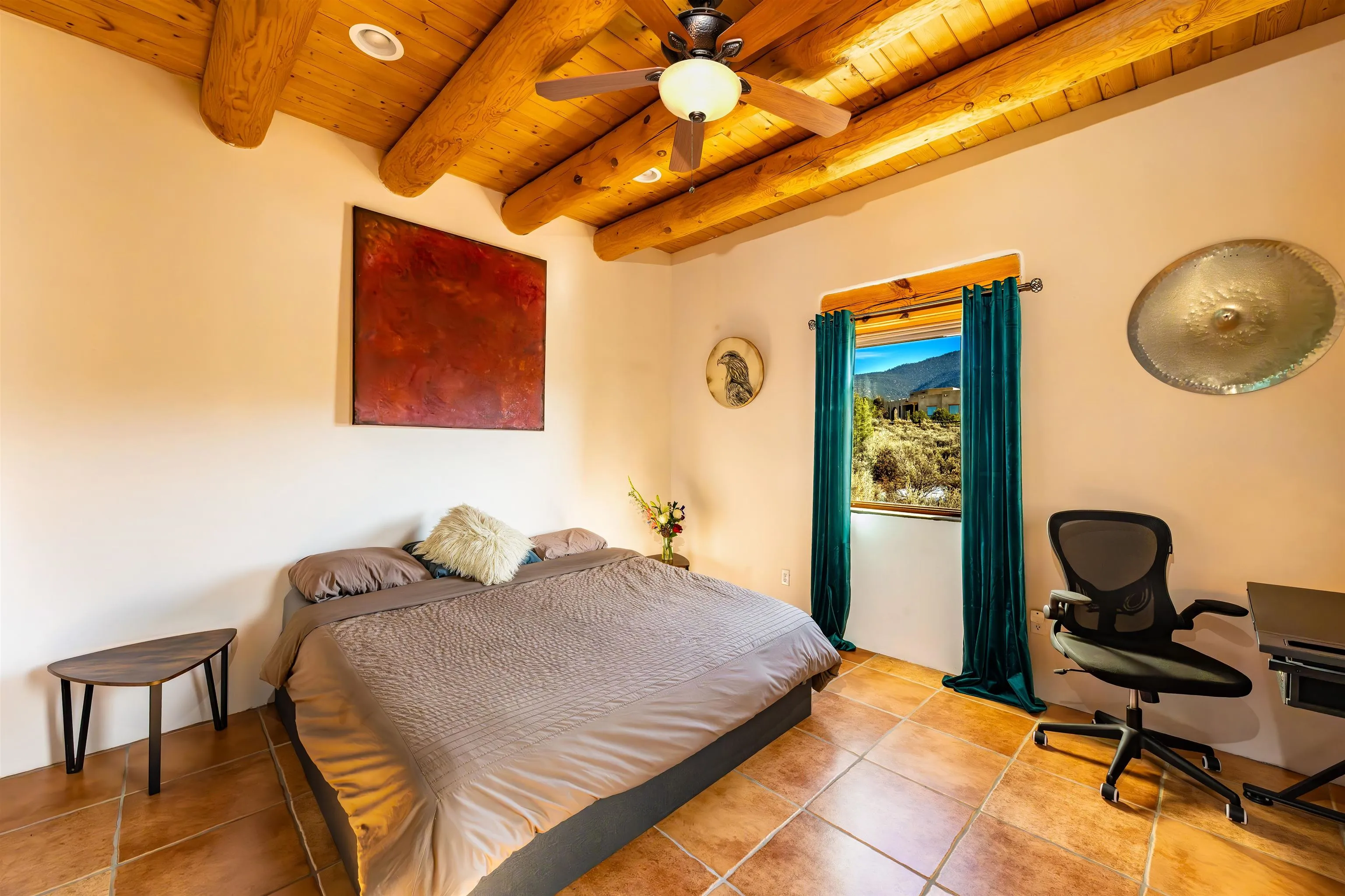 Beautiful, bright, turnkey single-level Pueblo-style home in the desirable Dos Arroyos neighborhood with breathtaking mountain views. Featuring 3 bedrooms, 2 baths, and 1,793 sq ft, this property combines traditional Taos charm with modern comfort. Spacious interiors showcase extra tall ceilings with exposed vigas and detailed woodwork throughout, complemented by 2 kiva fireplaces, and additional 255 sq ft sunny studio. Offers natural gas radiant floor heat throughout, a heated double garage, and custom kitchen cabinetry. Boasts a spa-like setting with cedar barrel sauna, outdoor shower, and salt water hot tub! Option for furnishings to convey via bill of sale upon buyers request. Fast fiberoptic internet. The home sits on a 0.25-acre lot , adjacent to an Open Space parcel which is protected. HOA includes irrigation and maintenance to the trees in the open space parcel and it ensures privacy and endless mountain views. There is easy access to hiking trails, Holy Cross Hospital, and Taos Plaza. Key Features: – 3 Bedrooms / 2 Bathrooms – 1,793 sq ft (approx.) – Lot: 0.25 acres / 10,802 sq ft, adjacent to Open Space parcel. – Year Built: 2007 – Natural Gas radiant floor heat – Attached 2-car radiant floor heated garage – Pueblo/Southwestern, single level – Hot Tub – Cedar Sauna – Xeriscape Landscaping with drip irrigation. Interior Highlights: – Soaring ceilings with exposed vigas & woodwork detail – Open floor plan with abundant natural light – Two kiva fireplaces (living room & master) – Tile flooring – Custom cabinetry & built-ins – Sunroom + covered portals for indoor/outdoor living – Fast fiberoptic internet – Stainless kitchen appliances Community: – Subdivision: Dos Arroyos – Low HOA Fee: Only $513/year (approx. $43/month) – Near Holy Cross Hospital & Dos Arroyos Trail system – 5 minutes to Taos Plaza
