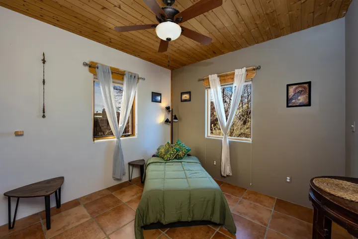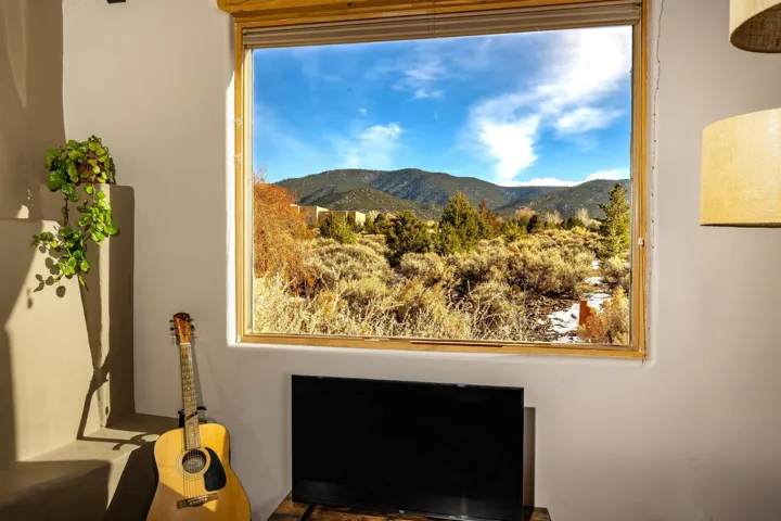 Beautiful, bright, turnkey single-level Pueblo-style home in the desirable Dos Arroyos neighborhood with breathtaking mountain views. Featuring 3 bedrooms, 2 baths, and 1,793 sq ft, this property combines traditional Taos charm with modern comfort. Spacious interiors showcase extra tall ceilings with exposed vigas and detailed woodwork throughout, complemented by 2 kiva fireplaces, and additional 255 sq ft sunny studio. Offers natural gas radiant floor heat throughout, a heated double garage, and custom kitchen cabinetry. Boasts a spa-like setting with cedar barrel sauna, outdoor shower, and salt water hot tub! Option for furnishings to convey via bill of sale upon buyers request. Fast fiberoptic internet. The home sits on a 0.25-acre lot , adjacent to an Open Space parcel which is protected. HOA includes irrigation and maintenance to the trees in the open space parcel and it ensures privacy and endless mountain views. There is easy access to hiking trails, Holy Cross Hospital, and Taos Plaza. Key Features: – 3 Bedrooms / 2 Bathrooms – 1,793 sq ft (approx.) – Lot: 0.25 acres / 10,802 sq ft, adjacent to Open Space parcel. – Year Built: 2007 – Natural Gas radiant floor heat – Attached 2-car radiant floor heated garage – Pueblo/Southwestern, single level – Hot Tub – Cedar Sauna – Xeriscape Landscaping with drip irrigation. Interior Highlights: – Soaring ceilings with exposed vigas & woodwork detail – Open floor plan with abundant natural light – Two kiva fireplaces (living room & master) – Tile flooring – Custom cabinetry & built-ins – Sunroom + covered portals for indoor/outdoor living – Fast fiberoptic internet – Stainless kitchen appliances Community: – Subdivision: Dos Arroyos – Low HOA Fee: Only $513/year (approx. $43/month) – Near Holy Cross Hospital & Dos Arroyos Trail system – 5 minutes to Taos Plaza