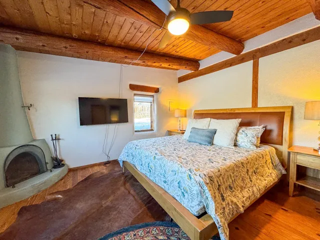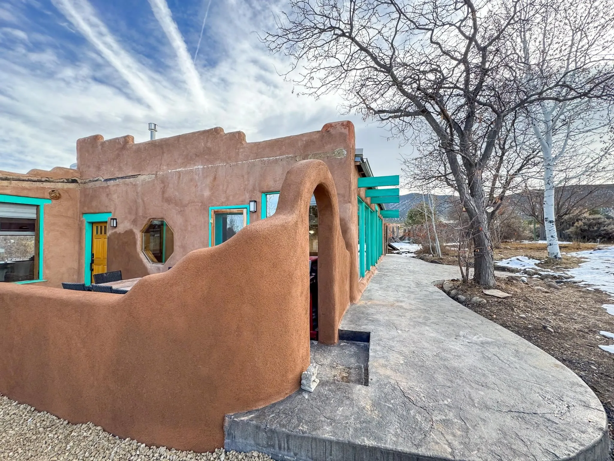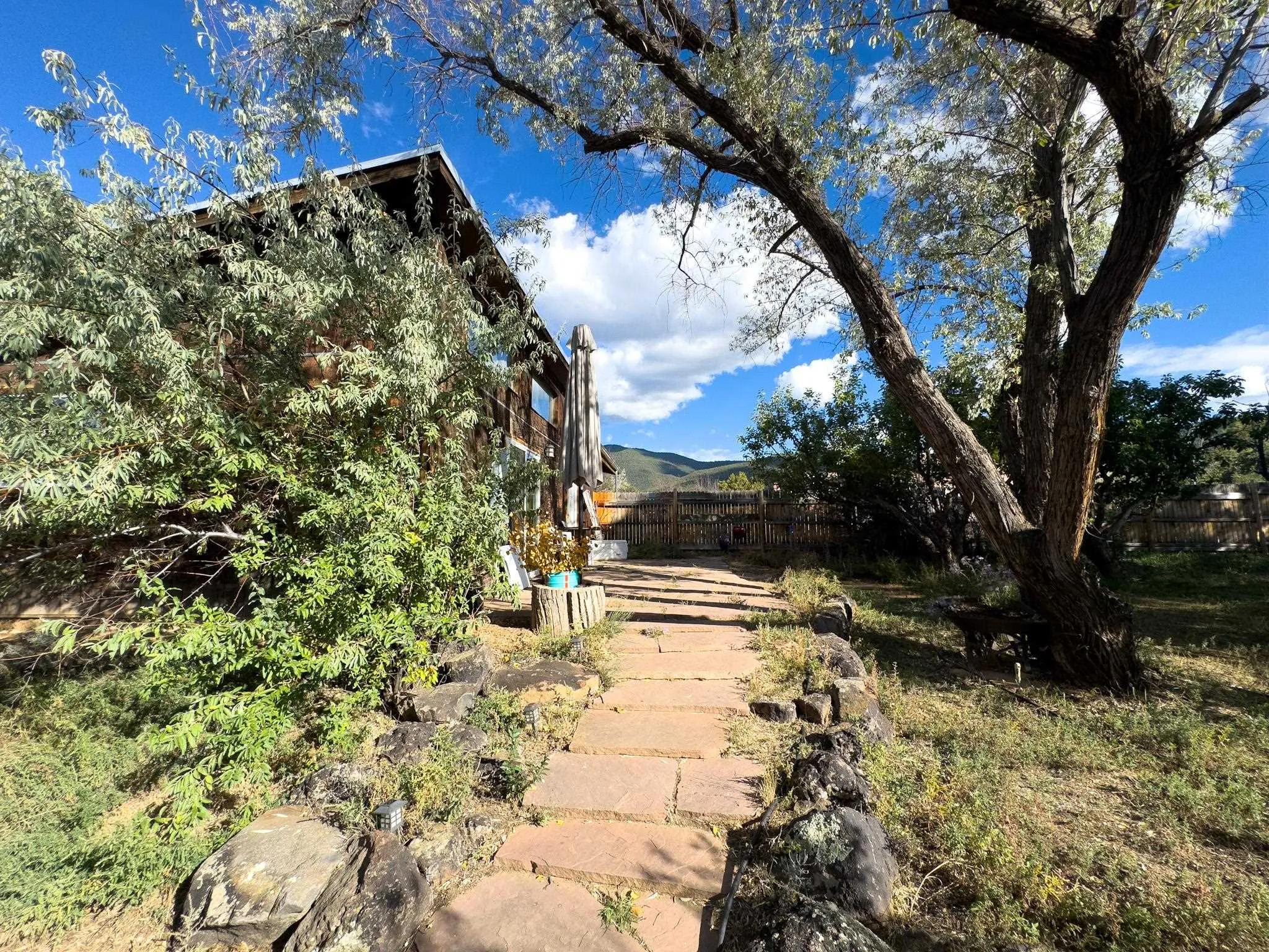 Tucked away on 1.5 acres just minutes from the heart of Taos, this 3-unit dwelling has lush landscapes of mature gardens, fruit trees, and outdoor spaces perfect for relaxing or entertaining under the wide New Mexico skies. With 3 individual homes, it has excellent rental returns. The main house (519 Este Es) is thoughtfully designed 2 bedroom plus flex room/3rd bedroom, 2 bathroom, passive solar home that blends comfort, efficiency, and creativity. Expansive windows bring in year-round natural light, while the home’s solar design helps maintain a cozy warmth in winter. Home is remodeled while maintaining the Taos charm with beautiful outdoor living with stucco walls and stamped concrete adds to the beautiful southwest style of the home. Primary bedroom and living area have kiva fireplaces and air conditioning has been added in this home to bring year round comfort. 519A is a two story home with attached 2-car RV height garage. Boasting living and kitchen downstairs with large windows to bring in passive solar. Upstairs is the bedroom and bathroom. This home is fenced and has wonderful views of Taos mountain and lots more opportunity to develop outdoor living space. Unit 519B is an updated studio unit with open plan living, sleeping and kitchen space with an attached bathroom. The home has a covered porch in which the tenant utilizes for creative art space. Home is fully fenced with mature fruit trees, pond and a lovely flagstone outdoor area. This multi family home offers a rare opportunity to enjoy sustainable living in a serene yet convenient location. Whether you’re seeking positive rental revenue, private retreat, a creative base, or a place to put down roots in Taos, 519 Este Es Rd is ready to welcome you home. Wonderful opportunity for a family to live in one of the homes while gaining income in renting out the other two properties. Be sure to ask about the rental history available to qualified buyers.