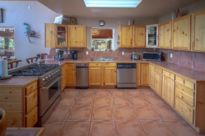 Welcome to your dream mountain getaway! Nestled on 2 private acres with breathtaking mountain views, this 5 bed 4 bath, 3-level chalet is the epitome of Rocky Mountain charm, comfort, and functionality. Featuring an open-concept kitchen, a living & dining area with soaring tongue & groove ceilings, massive logs and a striking rock fireplace. Also a chalet-style wall of windows that floods the interior with natural light and mountain vistas. The upper level contains 2 master suites, a private deck with panoramic views and a loft area ideal for a home office or cozy reading nook. The main-level includes an expansive kitchen with commercial-grade range and ample counter space, a guest bedroom and full bath, a utility room & mudroom for convenience after outdoor adventures. The lower level offers 2 bedrooms, a full bath, and a large family room with a wet bar plus walk-out access to a flagstone patio with fire pit and mountain views. There is a finished oversized 2-car garage with a second-story storage area that could be converted into an additional bonus room. Quiet and easily accessible year-round location. About 5 minutes to Angel Fire Village, Championship Golf Course, Country Club, Fitness Center, and Ski-Resort.