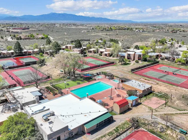 Modern Comfort and Mountain Views in El Prado, NM ~ This beautifully renovated and spacious 2-bedroom, 3-bath pet friendly condo at the well-located Quail Ridge Resort is perfect for full time, or part time resort-style living. The open living and dining areas flow seamlessly into a classy updated kitchen and bathrooms, all thoughtfully redesigned with modern materials for a fresh, welcoming feel. Three Southwest style fireplaces (2 wood, 1 gas) are ideal for creating a cozy environment, and relaxing around after a long day on the slopes. The unit also possesses very special artistic and hand-carved accents that ad to the rich charm of the home and short term rental guests will adore. Step out onto the large patio overlooking the tennis courts, with direct unobstructed views of Taos Mountain and Wheeler Peak. This versatile unit is perfect for long-term enjoyment or as a lucrative long term rental, complete with several convenient storage closets for all your gear. These units are versatile and can easily be used as an income producing property with one, or two lock-off units and ADA access. A washer and dryer are included, adding to the turn-key appeal. Enjoy all the Quail amenities with Low HOA dues, including snow removal, trash service, tennis, pickleball, swimming, and a hot tub. The onsite restaurant is a local favorite, known for the best breakfast burritos in Taos! Some photos have been virtually staged to spark creativity. With easy access to the Town of Taos, Taos Ski Valley, and the Rio Grande River, this condo offers an unbeatable blend of location, style, and comfort for glorious Taos living.