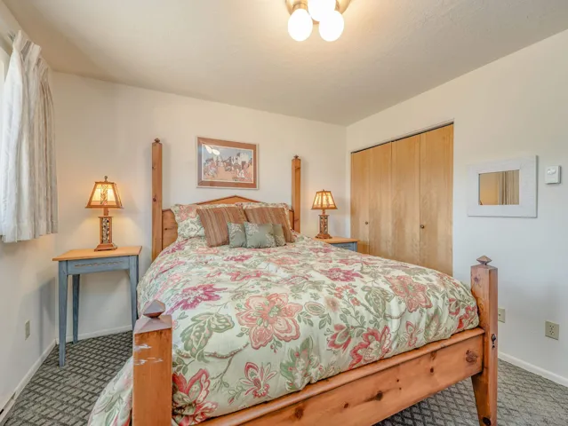 Located just off of North Angel Fire Road, in the heart of Angel Fire Resort’s ski basin, sits this delightfully cozy townhome. Windswept 1 is south-facing and flooded with natural light during the day to keep you cozy after long days playing in the mountains. The main floor features a mud room, half bathroom, kitchen, dining, and great room, all boasting laminate wood flooring for easy maintenance. The great room features a fireplace surrounded by stacked stone and a window wall with patio doors that lead you out to a back deck with panoramic mountain views. Evergreen trees are perfectly placed to provide year-round privacy and shade in the summer. The upstairs features a primary bedroom with a private sitting area, private deck and an ensuite bath with ample closets and dual sinks that are separated from the shower/toilet room. The two guest bedrooms are also on the second floor with another full bath and laundry closet. Windswept #1 has an attached one car garage, amazing walkability to Liberty Square and the village center, and comes fully furnished, so call today for a complete property inclusion list.