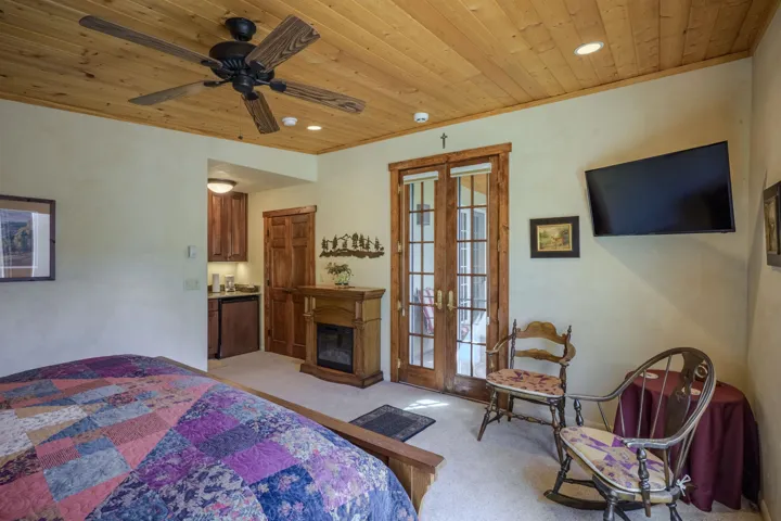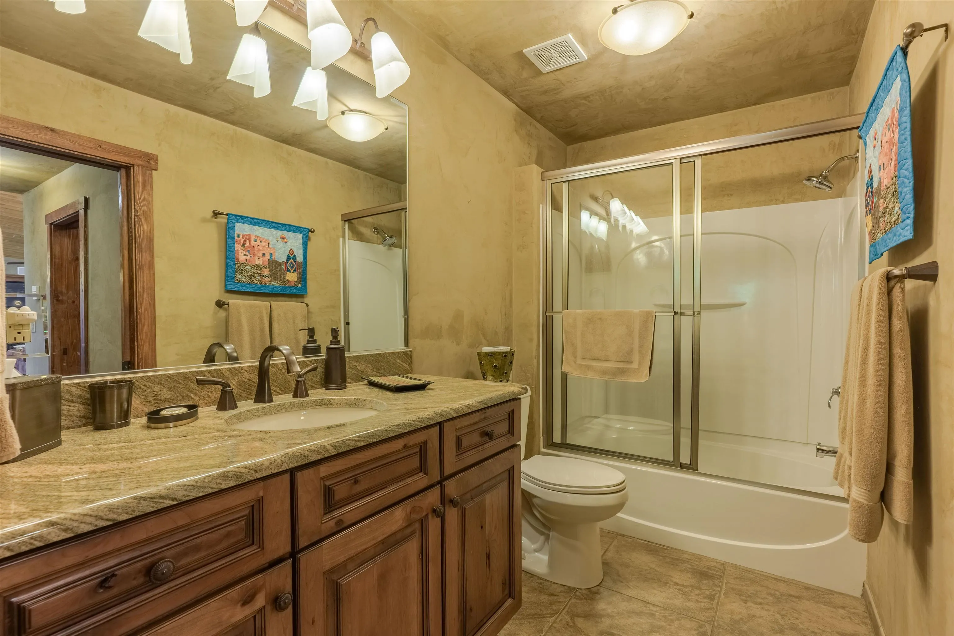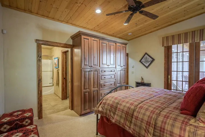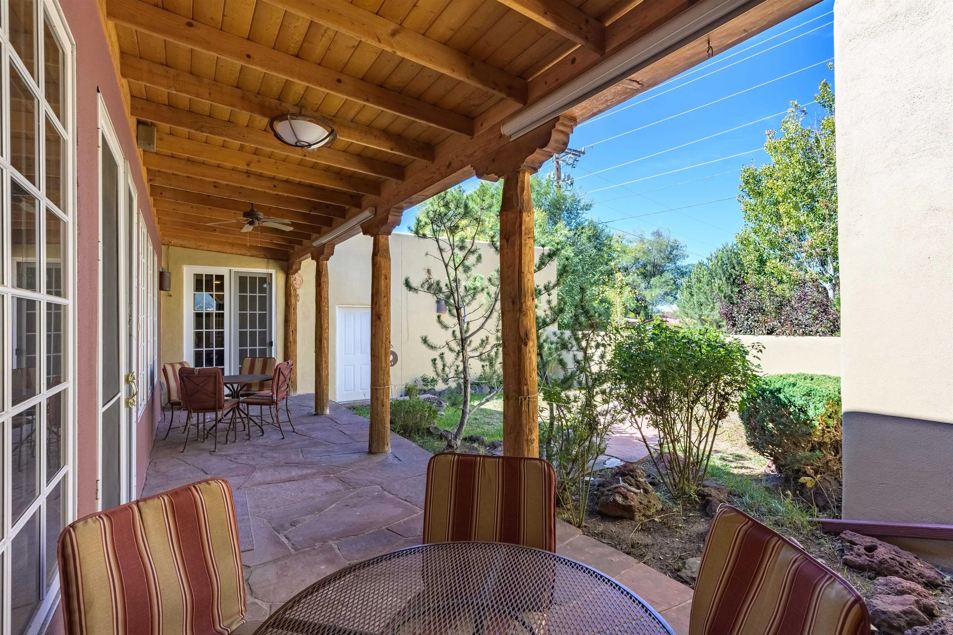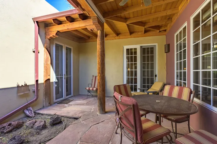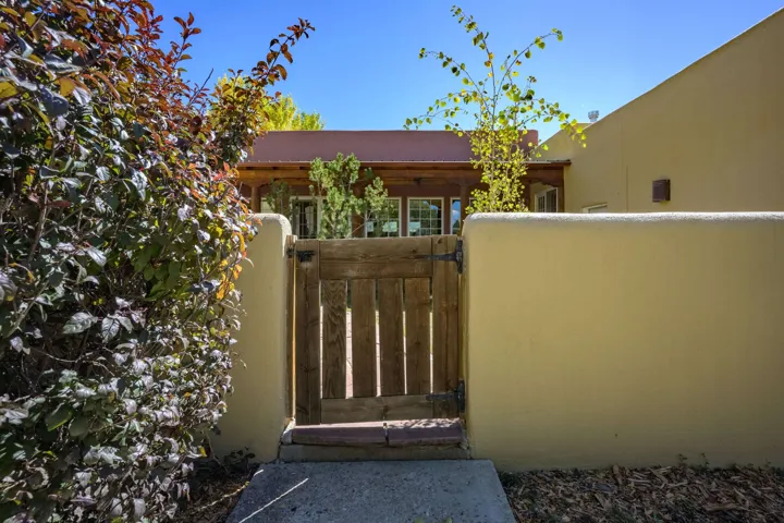 Stunning Condo with Guesthouse Just Steps from Taos Plaza! Discover this beautifully maintained 2-bedroom, 2-bathroom condo, complete with a separate 1-bedroom, 1-bath guesthouse—ideal for visitors, a home office, or generating rental income. With a generous 2,180 square feet of total living space, this rare property offers the perfect blend of privacy, craftsmanship, and location. Located just a short stroll from the heart of Taos Plaza, this hidden gem welcomes you with warm southwestern charm and thoughtful design throughout. The main residence features a spacious open-concept layout, ideal for entertaining or relaxing in style. At its heart is a chef’s kitchen boasting marble countertops, high-end appliances, and a kitchen bar—all framed by knotty cherry wood cabinetry that exudes warmth and character. Rich wood trim around windows and doors further elevates the home’s refined aesthetic. Step outside to your private courtyard oasis—perfect for outdoor dining or quiet mornings. The courtyard provides direct access to the detached guesthouse, which includes a full bathroom, kitchenette, and flexible living space—offering ultimate comfort and independence for guests or tenants. Additional highlights include: Attached garage Quiet, tucked-away location Walking distance to restaurants, galleries, grocery stores & amenities Quality finishes and details throughout Whether you’re seeking a full-time residence, a vacation retreat, or an income-generating property, this unique home delivers exceptional value in one of Taos’s most desirable locations. Don’t miss this rare opportunity—schedule your private showing today!