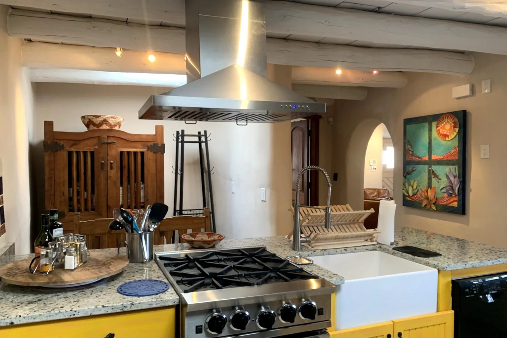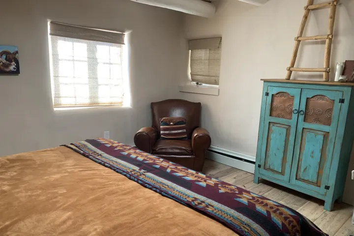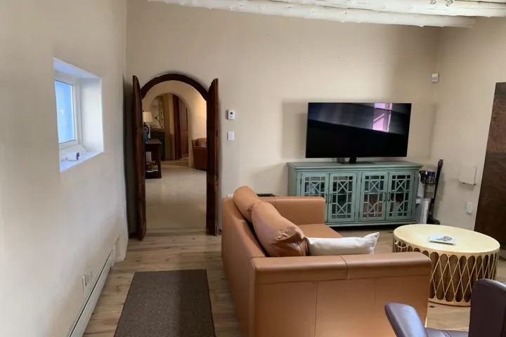 Quintessential Taos! Beautifully renovated historic 1800’s adobe in the heart of town. This charming Bent Street home is on the National Register of Historic Places and is just steps away from Taos Plaza, Kit Carson Park, and Taos Inn as well as fine dining, galleries, shops, culture, and entertainment. Feel the warmth and history of this spacious 2 bedroom/1 bath property from the comfort of the ample living/dining room area, where family and friends can gather after dinner around one of two wood-burning Kiva fireplaces. The kitchen offers a gas range/oven and a dining counter, perfect for a quick breakfast before heading out to Taos Valley for a day on the slopes. If working from home is a must, this property offers two additional spacious rooms, which could serve as office space, a den, or even an extra bedroom. Fiber optic internet and alarm system, off street parking, and town utilities are included. Watch the sunset from the comfort of your covered porch or patio. If you really want to immerse yourself in the full Taos experience, then don’t wait, because this beautiful home with its classic Southwest accents and ambiance will not last!