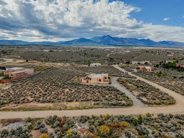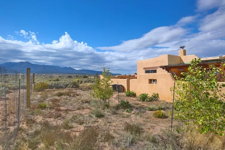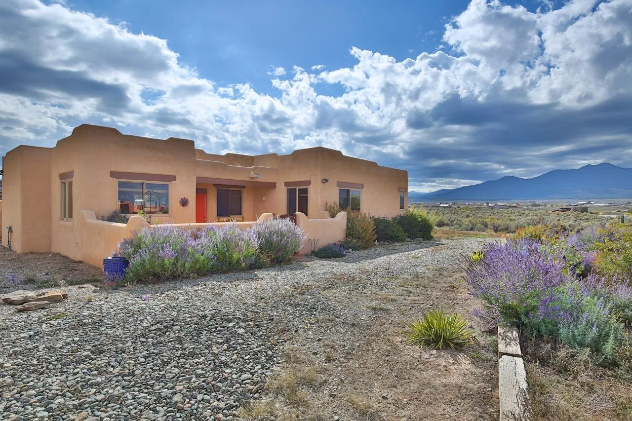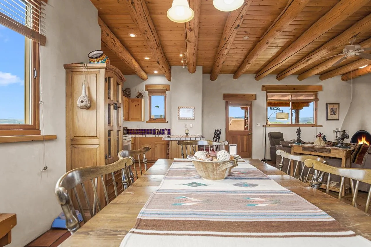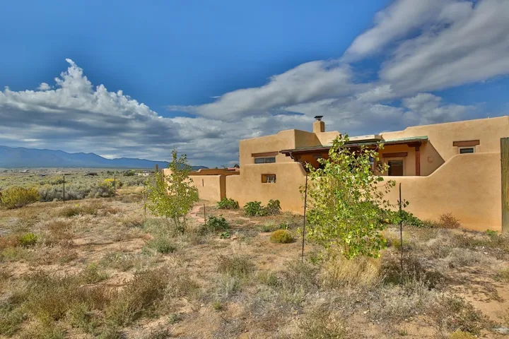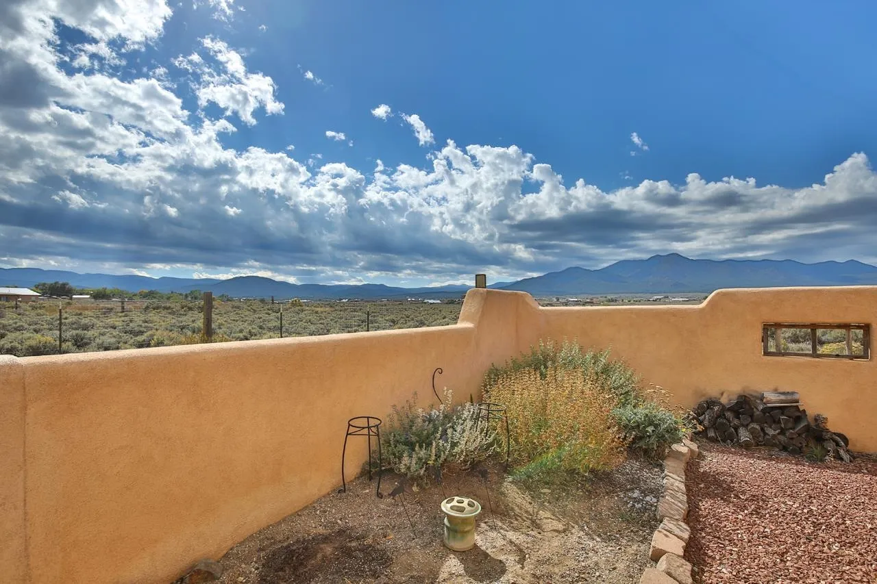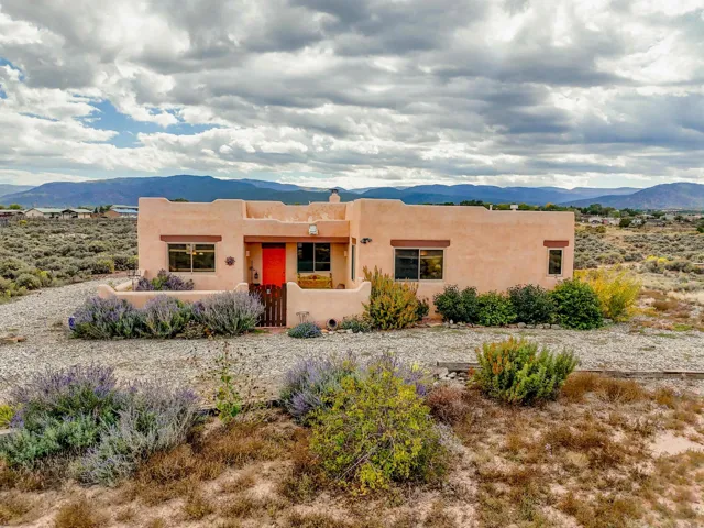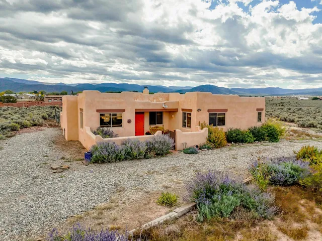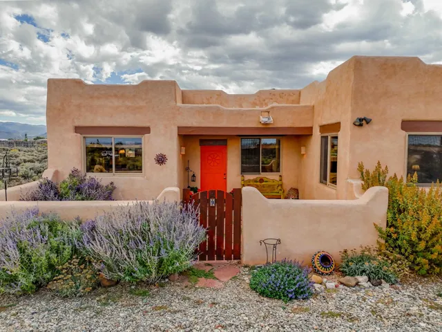 This Pueblo-style gem is everything you love about Taos, soulful, sunlit, and just a little bit enchanting. Step inside and you’re greeted by soaring 10-foot ceilings and big, beautiful vigas that stretch across the home, filling every room with that signature Taos warmth and character. The open floor plan makes it easy to drift from the living room to the dining area to the kitchen, where a countertop bar invites conversation, morning coffee, or an impromptu happy hour with friends. The heart of the home is the airy living room, where a classic kiva fireplace glows on cool evenings and doors open to a covered back deck made for mountain gazing. Out front, a sweet walled courtyard beckons for sunshine and quiet moments. On one side, mountain views; on the other, glowing sunsets. It’s all pure Taos magic. The spacious primary bedroom features a walk-in closet and an ensuite bath with two sinks and a walk-in shower, offering a peaceful retreat at the end of the day. Every window frames a slice of the surrounding beauty, from the hollyhocks and Russian sage outside to the soft light that spills across the plaster walls within. This home has been lovingly cared for, blending timeless craftsmanship, thoughtful design, and an easy flow that makes every space feel just right. From the viga ceilings throughout to the trees that sway outside, this is Taos living at its most graceful and grounded. If Taos had a heartbeat, this home would be perfectly in tune with it. For more views check out: https://youtu.be/dJ33XdatICI