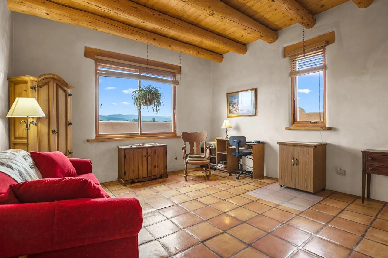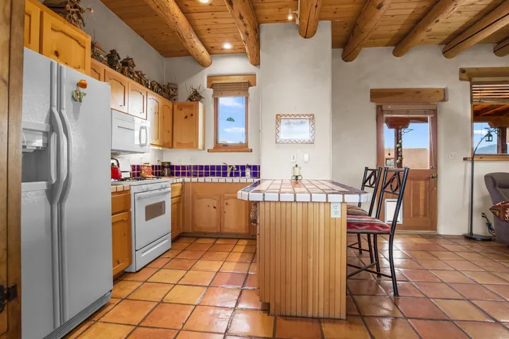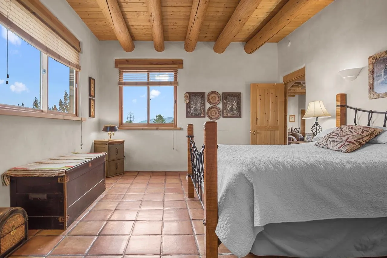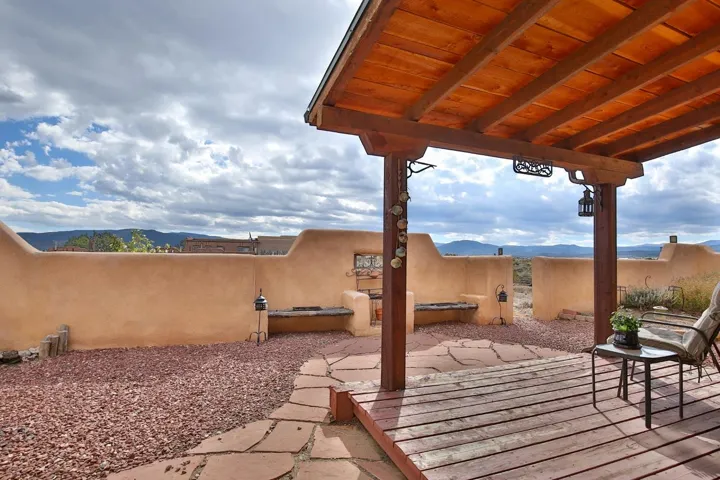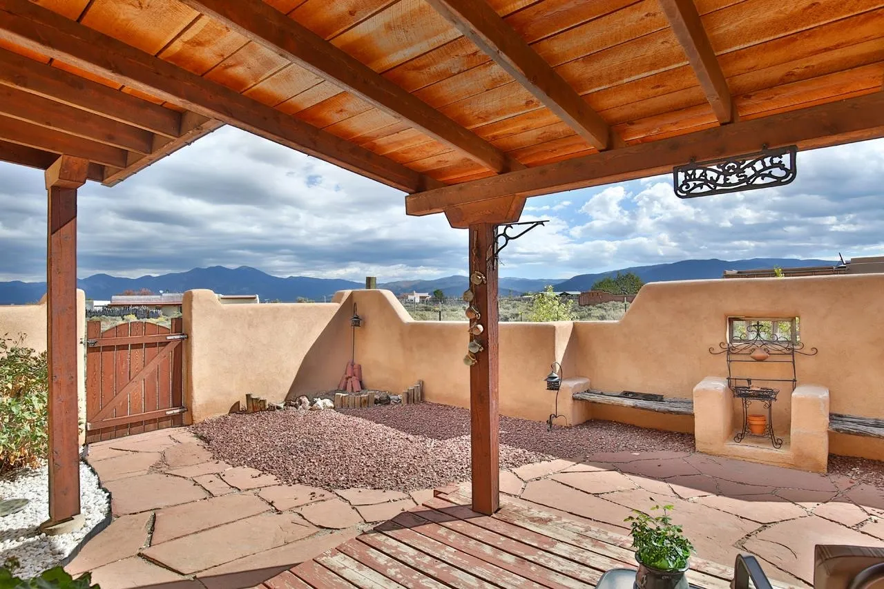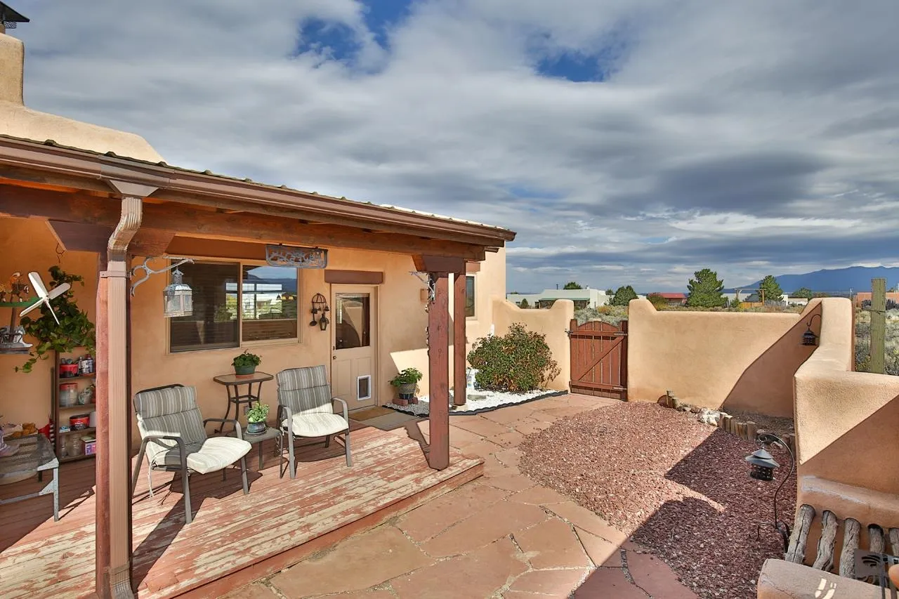 This Pueblo-style gem is everything you love about Taos, soulful, sunlit, and just a little bit enchanting. Step inside and you’re greeted by soaring 10-foot ceilings and big, beautiful vigas that stretch across the home, filling every room with that signature Taos warmth and character. The open floor plan makes it easy to drift from the living room to the dining area to the kitchen, where a countertop bar invites conversation, morning coffee, or an impromptu happy hour with friends. The heart of the home is the airy living room, where a classic kiva fireplace glows on cool evenings and doors open to a covered back deck made for mountain gazing. Out front, a sweet walled courtyard beckons for sunshine and quiet moments. On one side, mountain views; on the other, glowing sunsets. It’s all pure Taos magic. The spacious primary bedroom features a walk-in closet and an ensuite bath with two sinks and a walk-in shower, offering a peaceful retreat at the end of the day. Every window frames a slice of the surrounding beauty, from the hollyhocks and Russian sage outside to the soft light that spills across the plaster walls within. This home has been lovingly cared for, blending timeless craftsmanship, thoughtful design, and an easy flow that makes every space feel just right. From the viga ceilings throughout to the trees that sway outside, this is Taos living at its most graceful and grounded. If Taos had a heartbeat, this home would be perfectly in tune with it. For more views check out: https://youtu.be/dJ33XdatICI