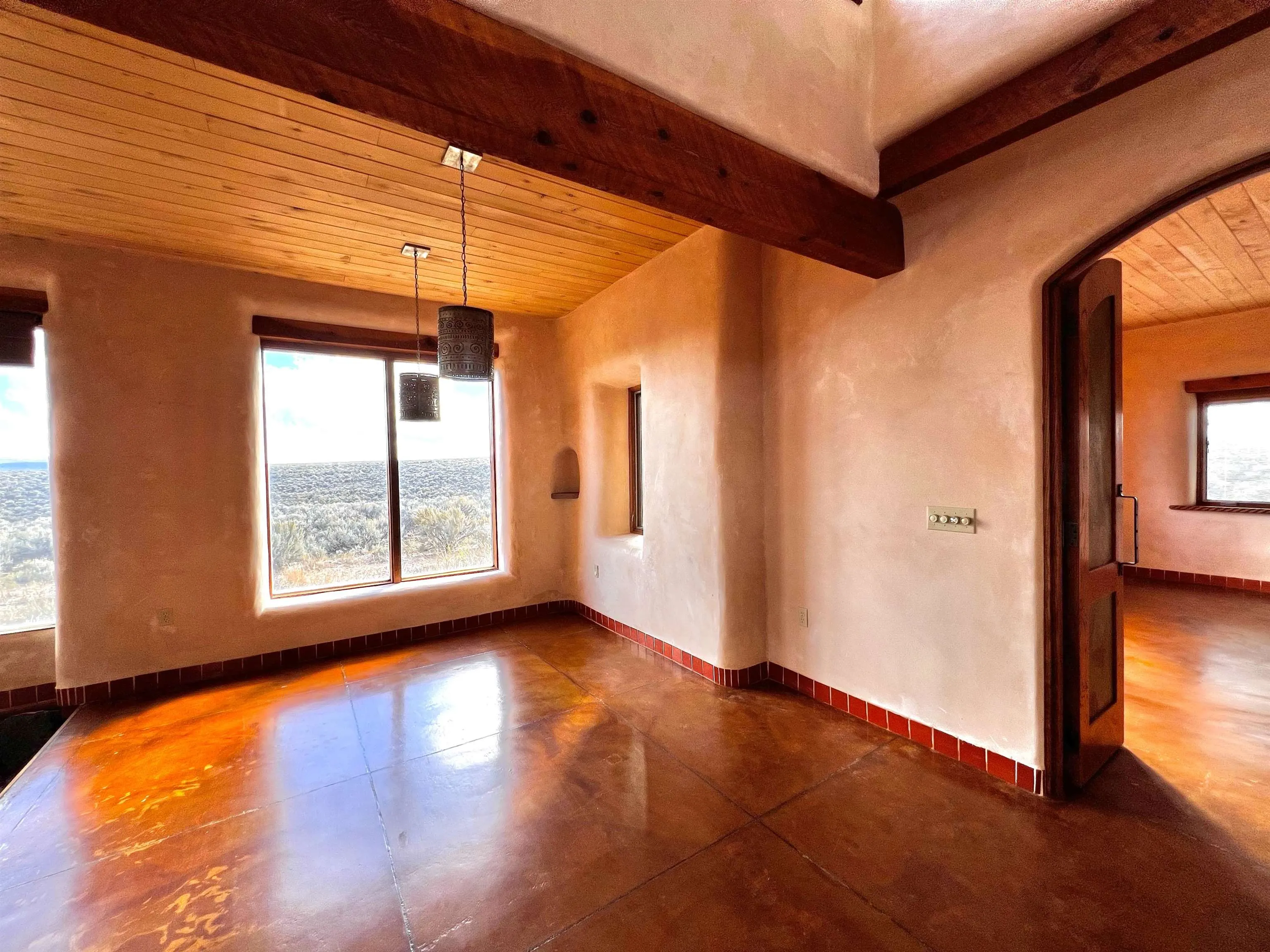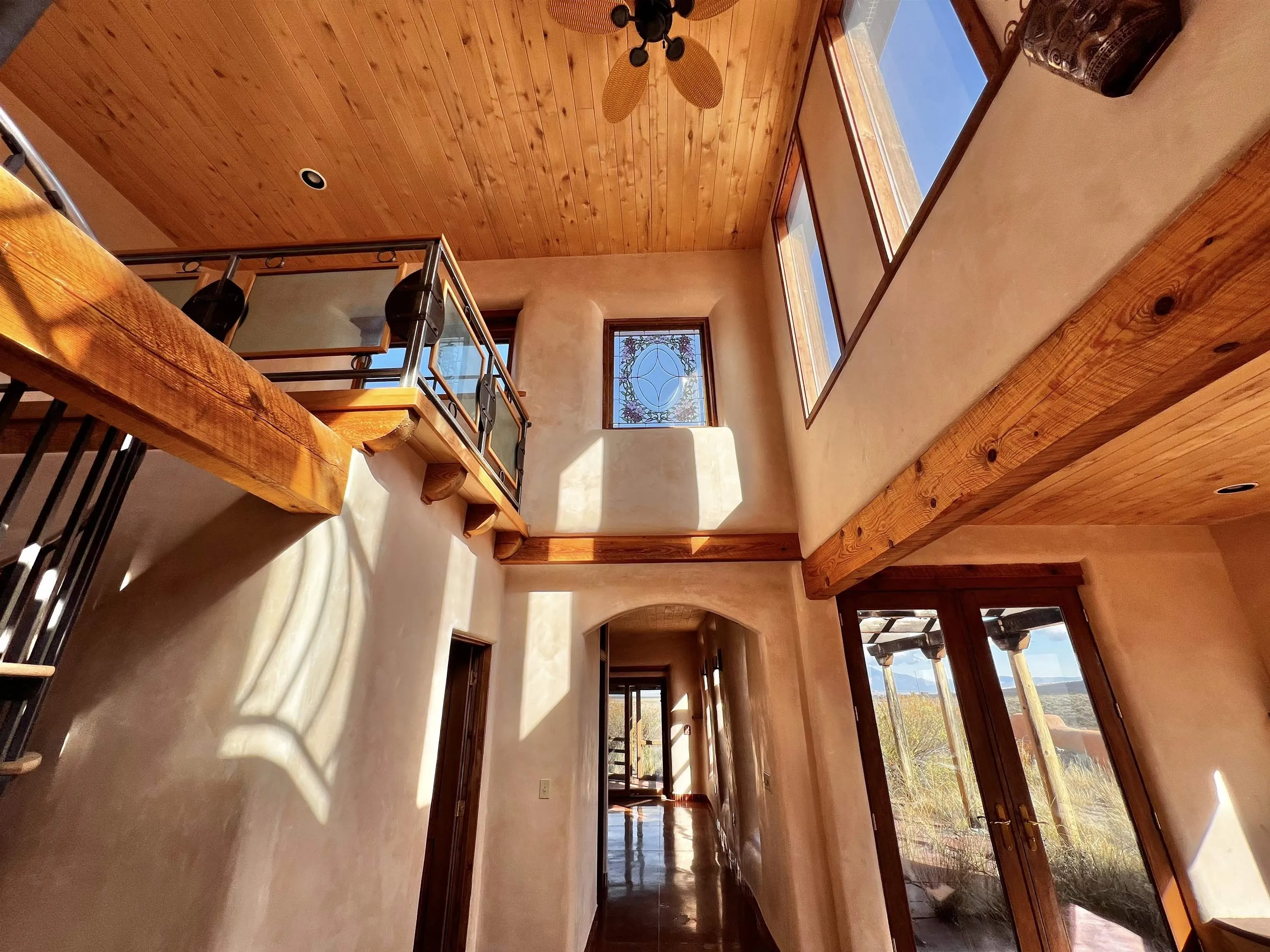 There’s no place like THIS home! Call this absolute stunner of a 2002 Charlie McGarity Post and Beam Strawbale home yours! 170 Two Hawks Trail is situated on a generous 20 acre parcel in the Cielito Lindo HOA protected off-grid subdivision just 30 easy minutes to the Town of Taos. Trade traffic jams for big views and organic architectural details. Decorative nichos are set throughout the residence in the natural plastered walls and large south facing picture windows warm the home with its passive solar design. Decorative railings by local artisan frame the second story loft while the bridge spanning the first floor leads to a deck with some of the biggest views in the valley. Water is provided via community well in addition to generous catchment system. Propane range in chefs kitchen. In floor propane powered radiant heat. It really does not get better. Priced to sell as is after sitting unattended and unmaintained for several years. Requires solar system replacement and other deferred maintenance work on the exterior.