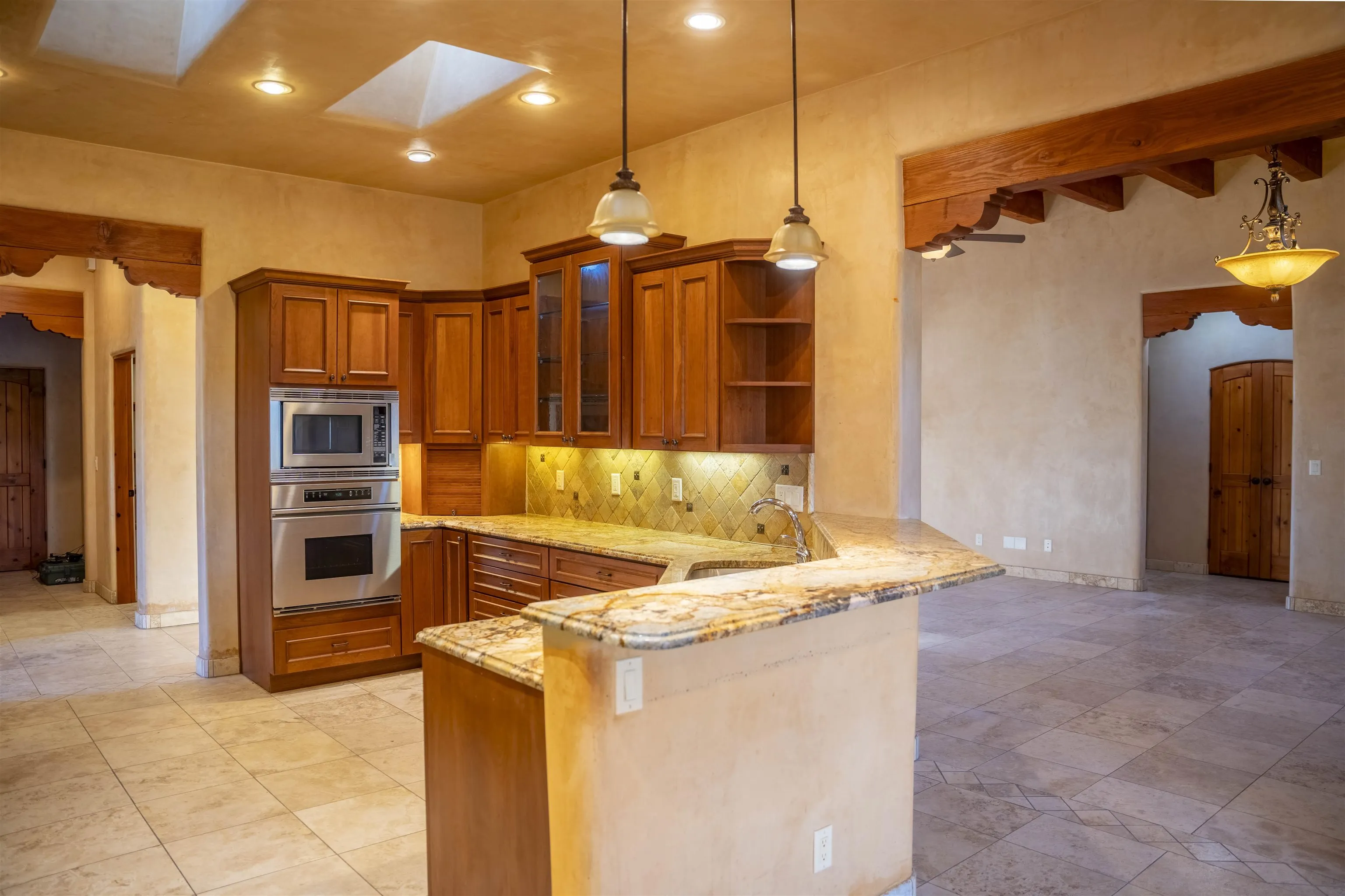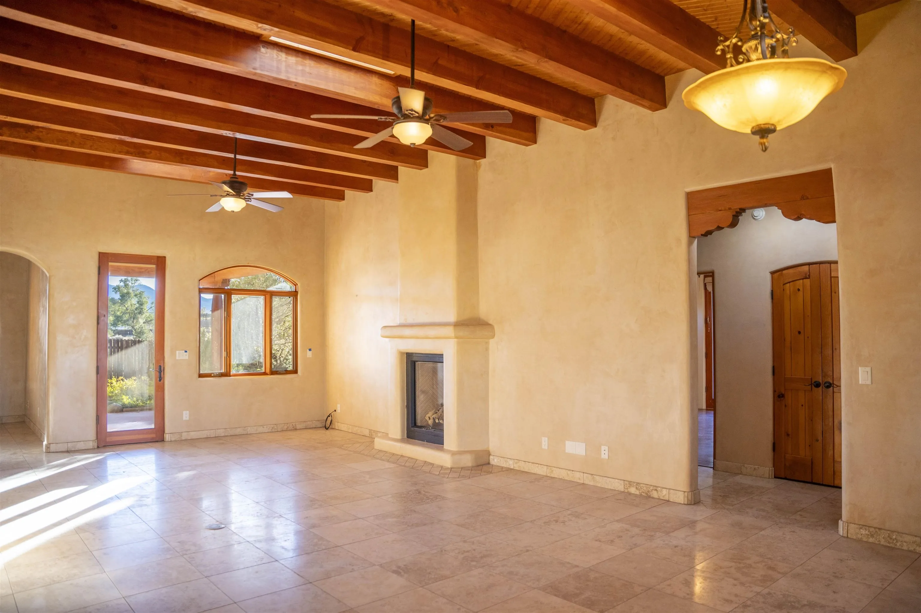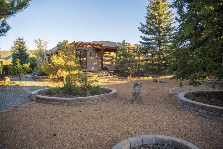 This elegant and comfortable home in the Vista Primavera subdivision in Taos’s midtown area is truly special, thanks to the builder’s attention to design and careful selection of finishes: granite countertops, hard-trowel plaster walls, beautiful arches and nichos, upscale appliances, walk-in closets with high-end built-ins, and numerous access points to the property’s patios, portals, and gardens. The home’s spacious great room has a gas-log fireplace, vaulted herringbone T&G/beamed ceilings, and more. A home study/office has a built-in combination bookcase and credenza that features granite. The master suite is a sanctuary with the bath featuring a ProFlo spa tub, double sinks set in a granite vanity, a walk-in travertine shower with a bench, and a huge walk-in closet with nice built-ins with French doors open to a private walled courtyard with a free-standing hot tub. The property is beautifully landscaped and fully fenced, and the outdoor living areas are inviting. There are flagstone and brick patios and portals, mature aspens and evergreens, flowerbeds, and a lush grassy lawn. A shed offers space for you to house your gardening tools, and double gates to the alleyway make it easy to bring in larger equipment. The home is in a great central location with easy access to our town’s many amenities. The Seller/Trustee is NOT familiar with the solar system, installed by others. Also, it appears that the kitchen oven may need replacement. The Trustee and the decision maker has never lived in this home, therefore, no representations, warranties or any descriptions contained in any sale materials shall be relied upon by a buyer. Buyer to perform his/hers own due diligence inspection which to rely upon!!!