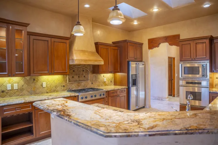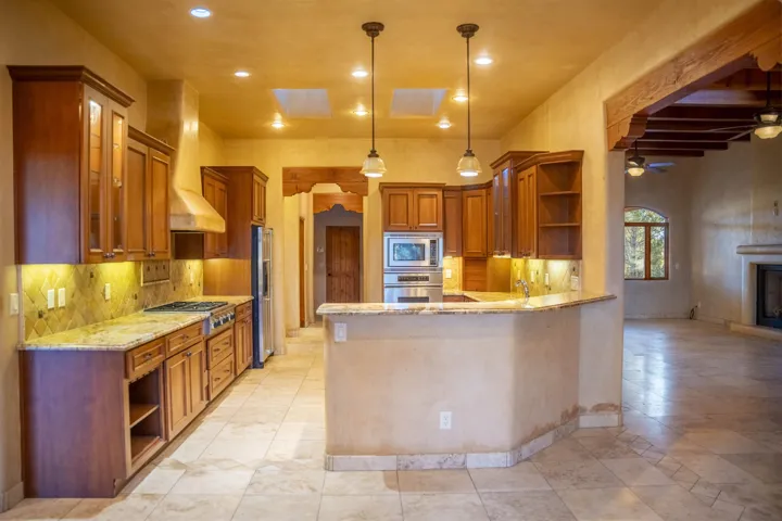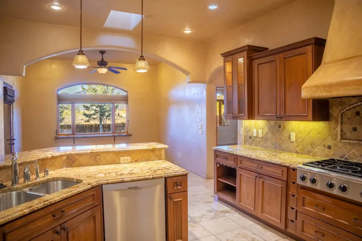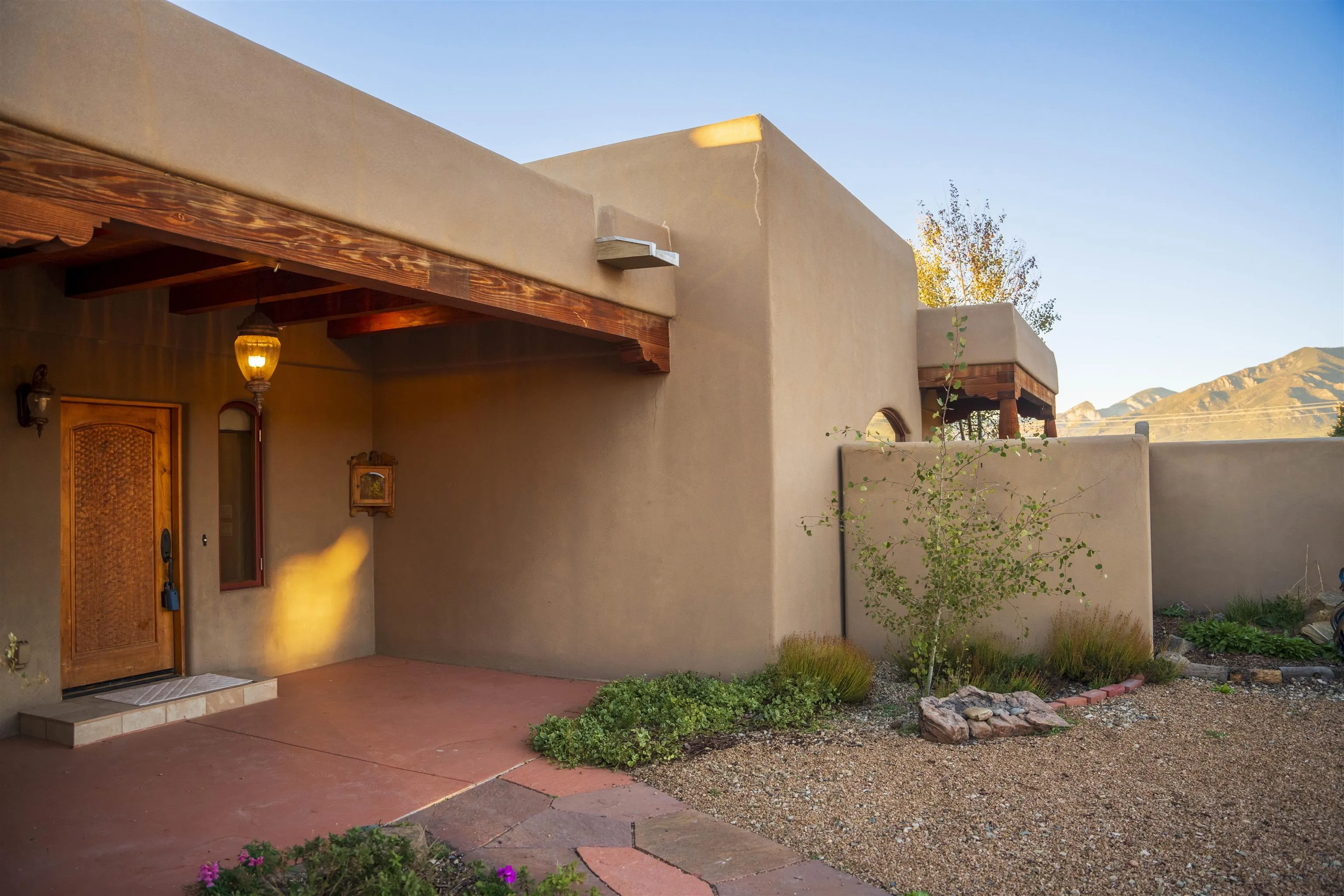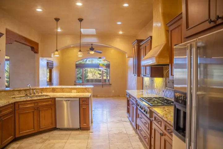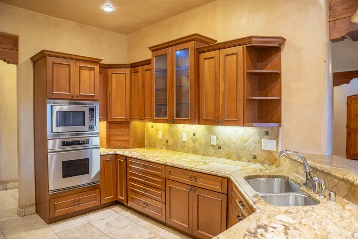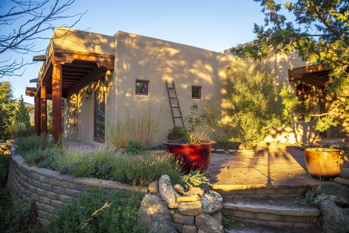 This elegant and comfortable home in the Vista Primavera subdivision in Taos’s midtown area is truly special, thanks to the builder’s attention to design and careful selection of finishes: granite countertops, hard-trowel plaster walls, beautiful arches and nichos, upscale appliances, walk-in closets with high-end built-ins, and numerous access points to the property’s patios, portals, and gardens. New roof! The home’s spacious great room has a gas-log fireplace, vaulted herringbone T&G/beamed ceilings, and more. A home study/office has a built-in combination bookcase and credenza that features granite. The master suite is a sanctuary with the bath featuring a ProFlo spa tub, double sinks set in a granite vanity, a walk-in travertine shower with a bench, and a huge walk-in closet with nice built-ins with French doors open to a private walled courtyard with a free-standing hot tub. The property is beautifully landscaped and fully fenced, and the outdoor living areas are inviting. There are flagstone and brick patios and portals, mature aspens and evergreens, flowerbeds, and a lush grassy lawn. A shed offers space for you to house your gardening tools, and double gates to the alleyway make it easy to bring in larger equipment. The home is in a great central location with easy access to our town’s many amenities. The Seller/Trustee is NOT familiar with the solar system, installed by others. Also, it appears that the kitchen oven may need replacement. The Trustee and the decision maker has never lived in this home, therefore, no representations, warranties or any descriptions contained in any sale materials shall be relied upon by a buyer. Buyer to perform his/hers own due diligence inspection which to rely upon!!! BUYERS BE AWARE! Possible presence of radon gas in all of the State of New Mexico! See the EPA map https://www.epa.gov/system/files/documents/2024-05/radon-zones-map_text_link.pdf