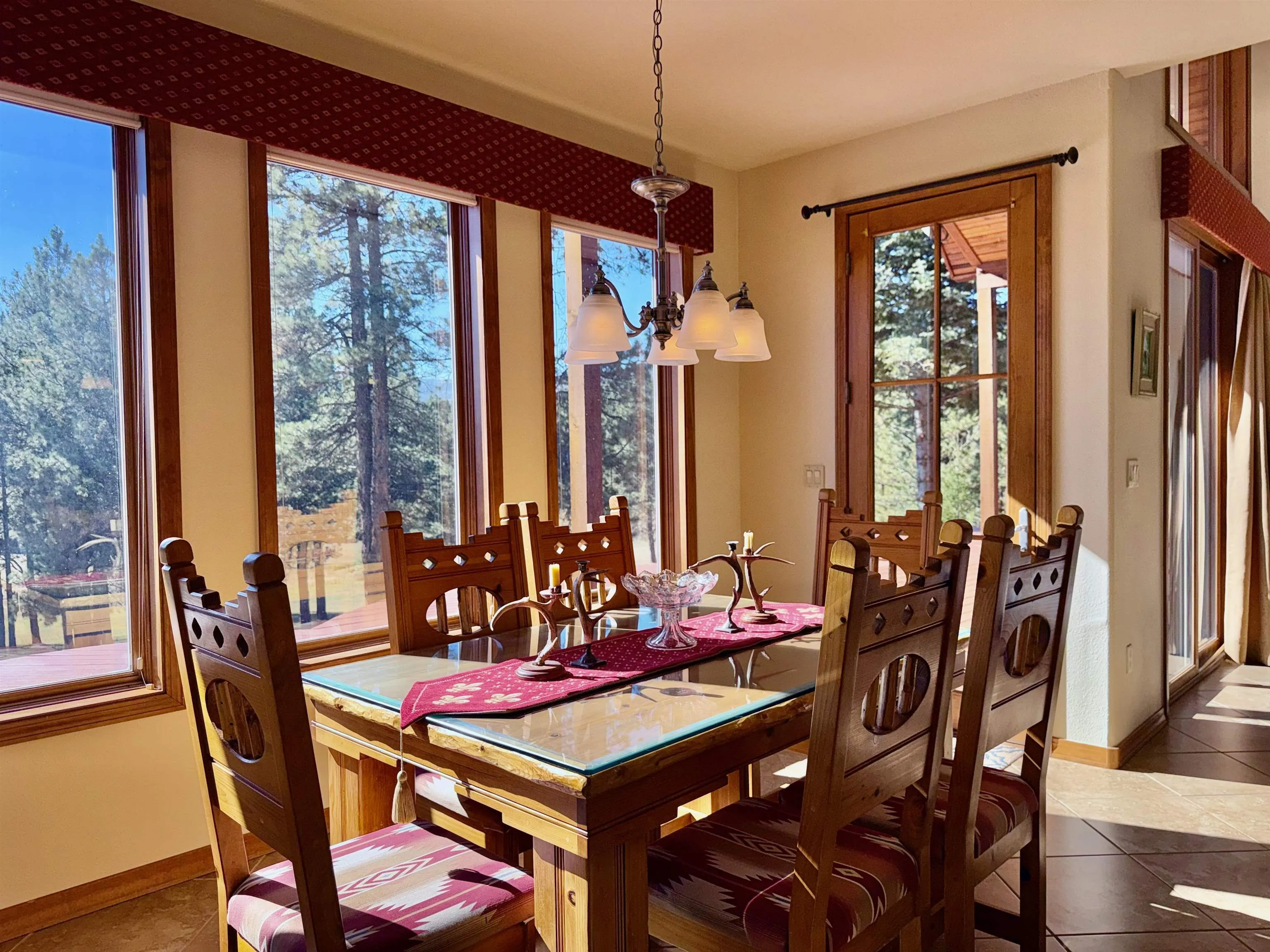 In the northern mountains of New Mexico, just off the Enchanted Circle in Angel Fire – One of the most beautiful properties in the Black Lake area. On approximately 11.83 acres of well maintained land, completely surrounded by split-rail fencing cut from the property. Sutton-built house, approximately 2645 sq-ft of heated living space, is perched on a hill with a large open deck overlooking mountain views, meadows, and a fenced-in orchard of fruit trees. Vegetable garden, fenced to keep out the elk and deer-friends, is ready for spring planting. Hummingbird heaven. There is a guest house, approximately 280 sq-ft – 1 BDR, 1 BA, kitchen – made from 140 yr old barn wood from a ranch in Durango, CO. 1140 +/- sq-ft outbuilding houses an office/shop with workbench as well as a separate bay for storing equipment, 574 +/- sqft outbuilding can house a travel trailer, car or truck, etc. Deeded entry into Carson National Forest is a short distance down the road. Kit Carson fiber optic internet is run to house for lightning-fast communications. Get out of the heat and pressures of the city and work from the stress-free mountains of northern New Mexico where the average summer temperature is 76 degrees with little to no humidity and, better still, almost, if not, mosquito-free. Mosquitoes, chiggers, No-See-Ums, poisonous snakes, and more don’t choose to live at this altitude. Angel Fire Resort with its family-friendly ski mountain, nationally recognized mountain bike terrain park, PGA-rated golf course, $15 mill country club, tennis and pickleball courts, etc. is only 8 miles away on all-weather roads. Angel Fire Airport, primarily for private aircraft, has a jet-capable runway and is also approximately 8 miles away. Advanced Air now operates 5 round-trips/week from Albuquerque. Please come visit!