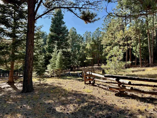 In the northern mountains of New Mexico, just off the Enchanted Circle in Angel Fire – One of the most beautiful properties in the Black Lake area. On approximately 11.83 acres of well maintained land, completely surrounded by split-rail fencing cut from the property. Sutton-built house, approximately 2645 sq-ft of heated living space, is perched on a hill with a large open deck overlooking mountain views, meadows, and a fenced-in orchard of fruit trees. Vegetable garden, fenced to keep out the elk and deer-friends, is ready for spring planting. Hummingbird heaven. There is a guest house, approximately 280 sq-ft – 1 BDR, 1 BA, kitchen – made from 140 yr old barn wood from a ranch in Durango, CO. 1140 +/- sq-ft outbuilding houses an office/shop with workbench as well as a separate bay for storing equipment, 574 +/- sqft outbuilding can house a travel trailer, car or truck, etc. Deeded entry into Carson National Forest is a short distance down the road. Kit Carson fiber optic internet is run to house for lightning-fast communications. Get out of the heat and pressures of the city and work from the stress-free mountains of northern New Mexico where the average summer temperature is 76 degrees with little to no humidity and, better still, almost, if not, mosquito-free. Mosquitoes, chiggers, No-See-Ums, poisonous snakes, and more don’t choose to live at this altitude. Angel Fire Resort with its family-friendly ski mountain, nationally recognized mountain bike terrain park, PGA-rated golf course, $15 mill country club, tennis and pickleball courts, etc. is only 8 miles away on all-weather roads. Angel Fire Airport, primarily for private aircraft, has a jet-capable runway and is also approximately 8 miles away. Advanced Air now operates 5 round-trips/week from Albuquerque. Please come visit!