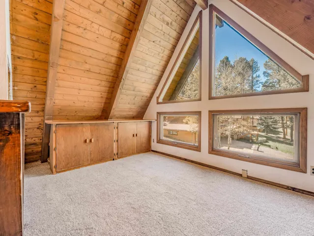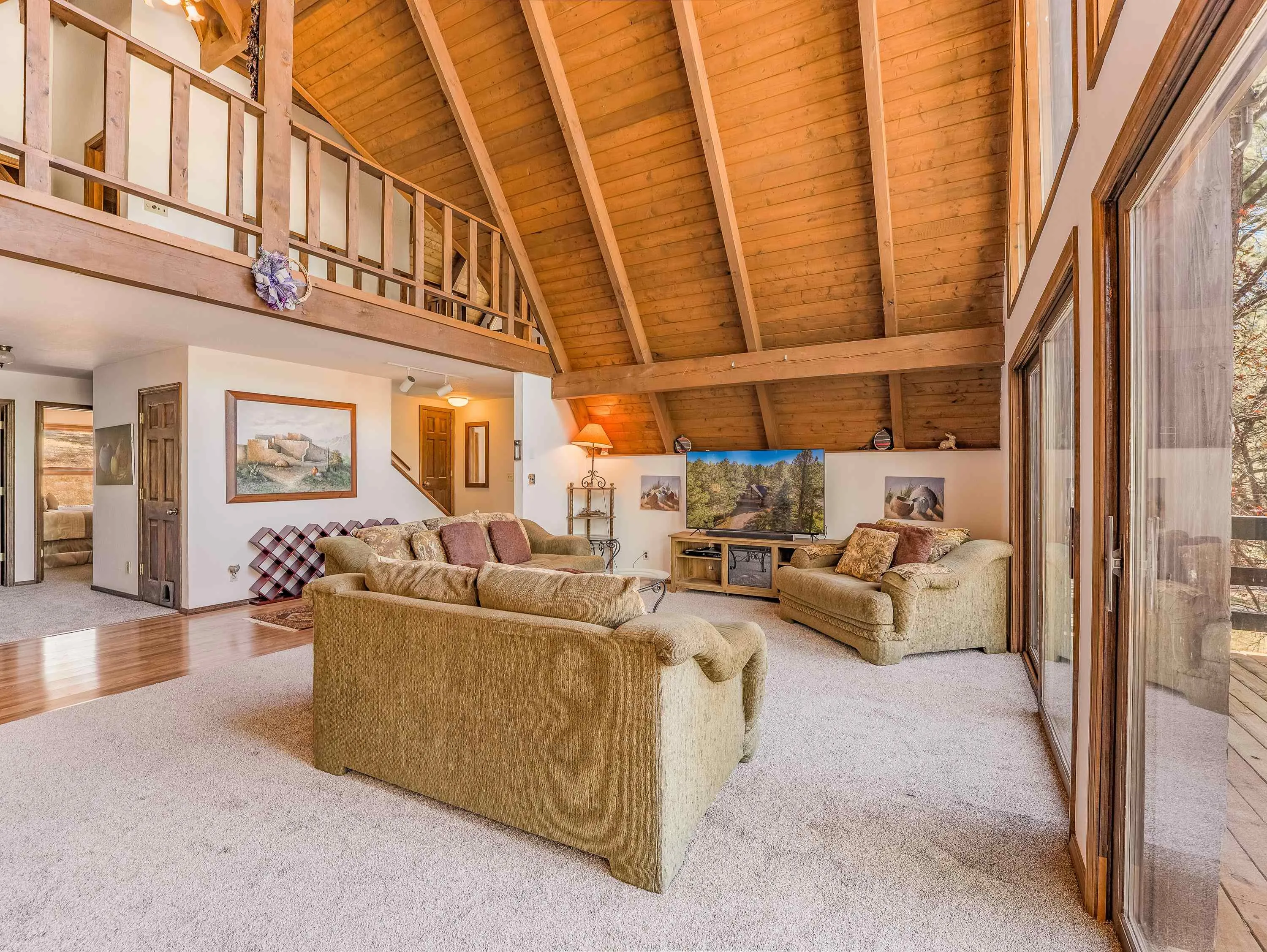 Whether you’re looking for summertime fun, winter excitement, or a little of both, this expansive, multi-level home is ready to be your family’s mountain getaway. Boasting three spacious levels, 42 Pine Valley Drive offers plenty of room for everyone ready for adventure! The window wall in the A-frame great room offers natural light plus views of the surrounding pines, while being a perfect gathering place for the entire family. The well-stocked kitchen has lots of cabinet and pantry space, plus access to the wraparound deck, making al fresco dinner parties a breeze to host. Two cozy guest rooms with a full bathroom in the hall offer quiet places to rest, while the lofted primary bedroom and second living space and full bathroom, complete with a walk-in shower, give you extra privacy from the main level. The lowest level is a blank canvas, ready to become a workshop, second den, or whatever space you can imagine! A laundry room and attached two-stall garage complete the creature comforts of the home. Located just minutes from the Angel Fire Resort Country Club and a short drive to the Angel Fire Resort ski slopes, 42 Pine Valley Drive will be calling you to the mountains over and over again.