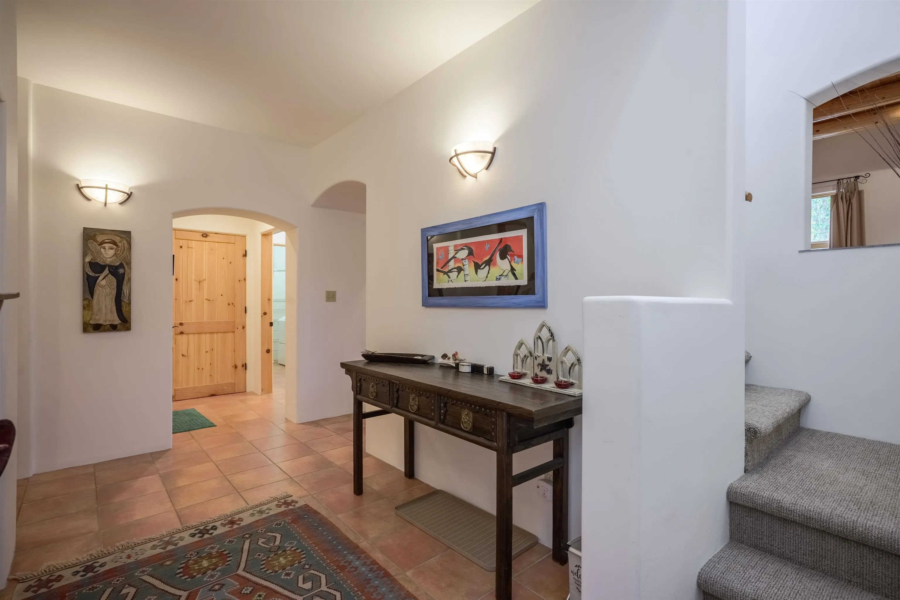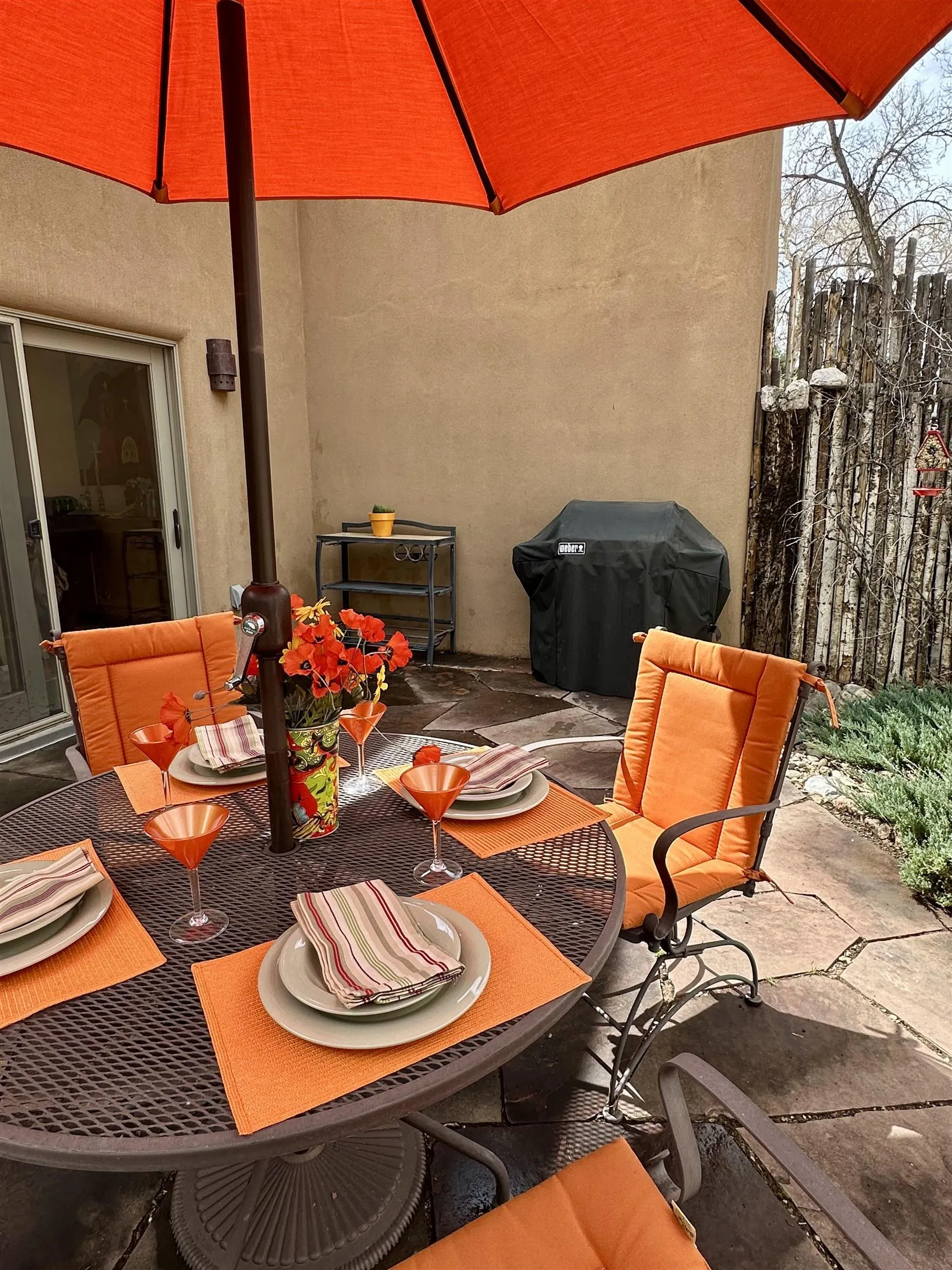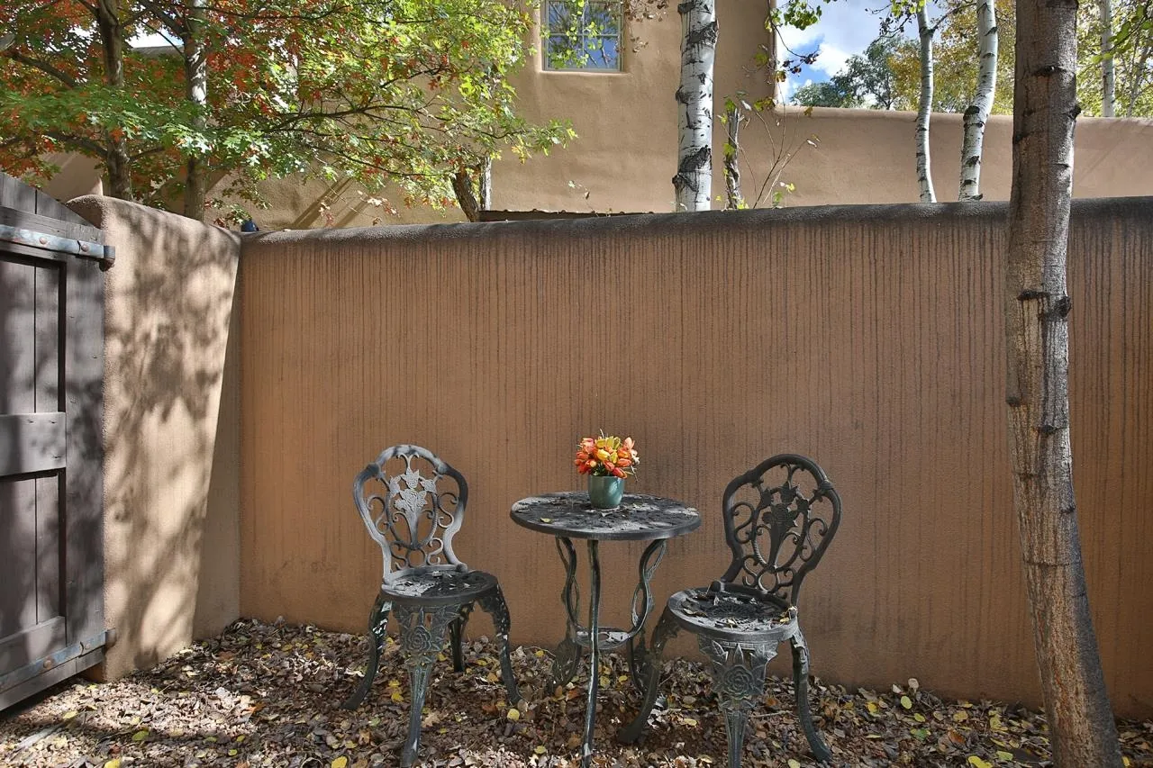 Turn-Key Condo! Fully Updated and Fully Furnished! Ready for Winter Holidays & Ski Season Joy Discover this beautifully maintained 2BR/2.5BA, 1,787 sq. ft. in-town condo, turn-key, fully furnished and ready to enjoy — the ideal stress-free home or vacation retreat. The spacious layout features Southwest touches like soaring vigas, a cozy corner fireplace, and tile floors that create a warm, inviting atmosphere. The wall of windows offers abundant natural light and mountain views, opening the space and enhancing the airy feel. The gourmet kitchen is a showstopper, with granite countertops, stainless steel appliances, and generous storage. Dine privately at the stylish island, entertain in the large dining area, or enjoy outdoor meals on the patio while gazing at the fire pit under the stars. A convenient powder room and laundry room add everyday practicality. The colorful downstairs bedroom includes an ensuite bath, walk-in closet, and a private patio—perfect for guests or a home office. The upstairs primary suite features a walk-in closet, spacious bath with a deep Japanese soaking tub, and an additional deck on each side for sunset viewing or morning coffees. The home was designed with space for an elevator, which is currently used for extra storage but offers future flexibility. Please note: Condo is being sold fully furnished excluding a few personal items and artwork. See exclusion list attached. Natural light floods the entire home via skylights and solar tubes, creating a cheerful sanctuary year-round. Subfloor heating and natural gas keep you toasty in winter, while overhead fans keep things cool in summer. Unlike many condos, enjoy a generous backyard with double coyote fencing, providing privacy and a cozy pet-friendly space. Nestled in a peaceful pocket off Kit Carson Road., the location offers easy walking access to historic Taos Plaza, shops, galleries, and the museum, with plenty of nearby restaurants. Outdoor adventures, such as skiing, hiking, biking, golfing, fishing, and rafting, are just a short drive away. This impeccably maintained condo is your opportunity to enjoy everything Taos has to offer — don’t miss out! Schedule a showing today and treat yourself to the perfect mountain lifestyle. PLEASE NOTE: The fire in the fireplace is virtually staged—per rental policy, as per Town of Taos guidelines. Domestic pets are allowed.