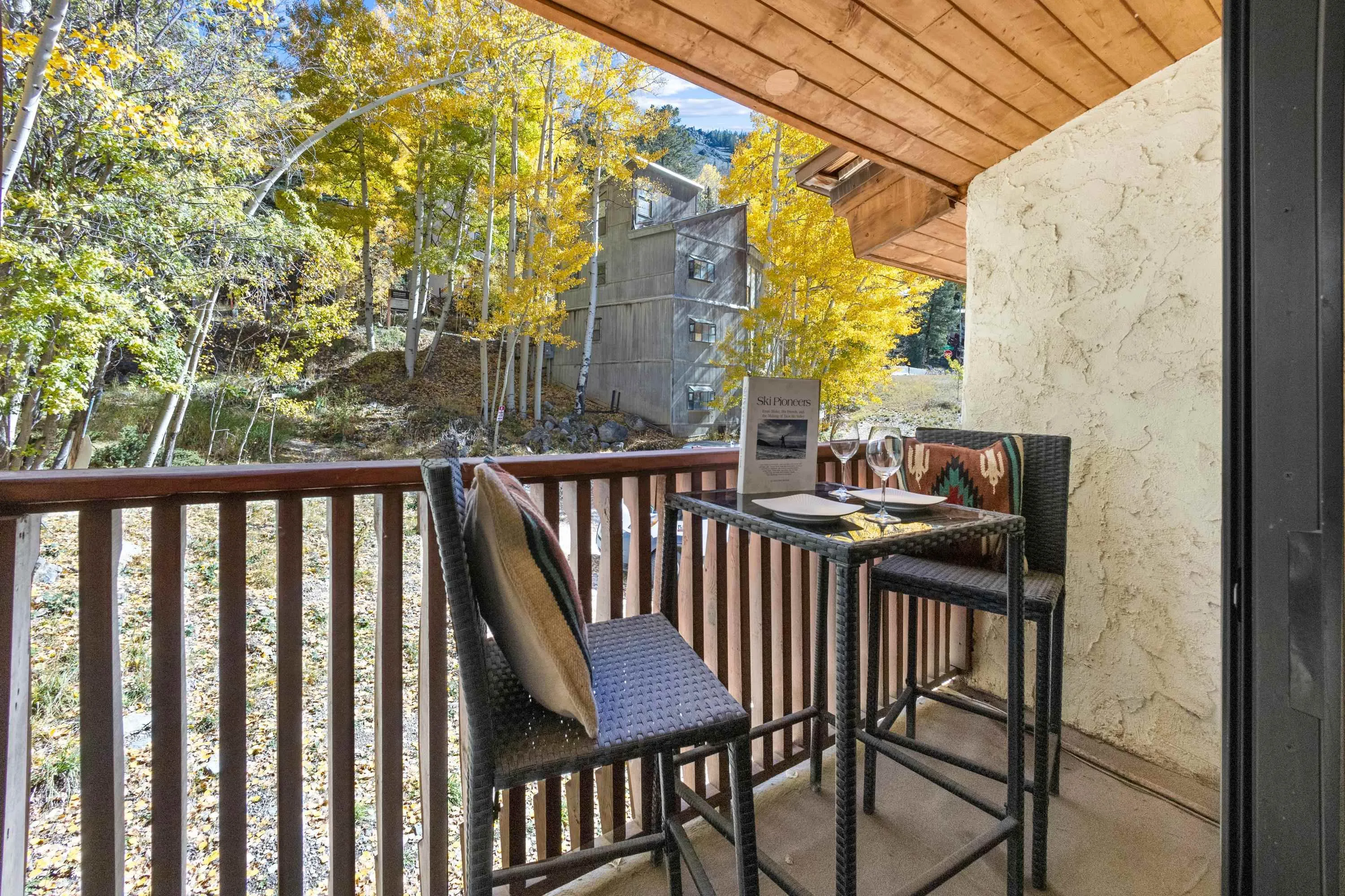 VIDEO TOUR – SEARCH YOUTUBE -“POWDERHORN CONDOS, TAOS SKI VALLEY” — Introducing a distinctive condominium opportunity at Powderhorn Condominiums, situated in the heart of Taos Ski Valley. This inviting studio provides an ideal four-season retreat, conveniently located within walking distance of the lifts, base area, restaurants, and shops. Guests can conveniently park their vehicles and access all amenities on foot. This fully furnished and meticulously designed studio offers everything necessary for relaxation, culinary endeavors, and unwinding after a day of skiing or hiking. It features a cozy electric fireplace, ideal for sharing stories, and a complete bathroom equipped with a tub for soothing sore muscles. This condo is turnkey and ready for the season, boasting fresh paint, laminate flooring, a recently installed king-sized bed, an oversized armoire, plush chairs, and a cafe table on the private balcony. Home Owner’s Association fees include virtually all services and expenses: trash collection, grounds and building maintenance, electric, natural gas, water, sewer, Dish Network satellite TV, high -speed fiber Wifi, building insurance, and snow removal. Additional amenities include a private deck for enjoying morning coffee or après-ski beverages and access to a spacious lobby area. The unit also includes a private owner’s locker, providing convenient storage for ski and equipment. A VIP parking area is provided for your convenience after unloading luggage and is within walking distance.