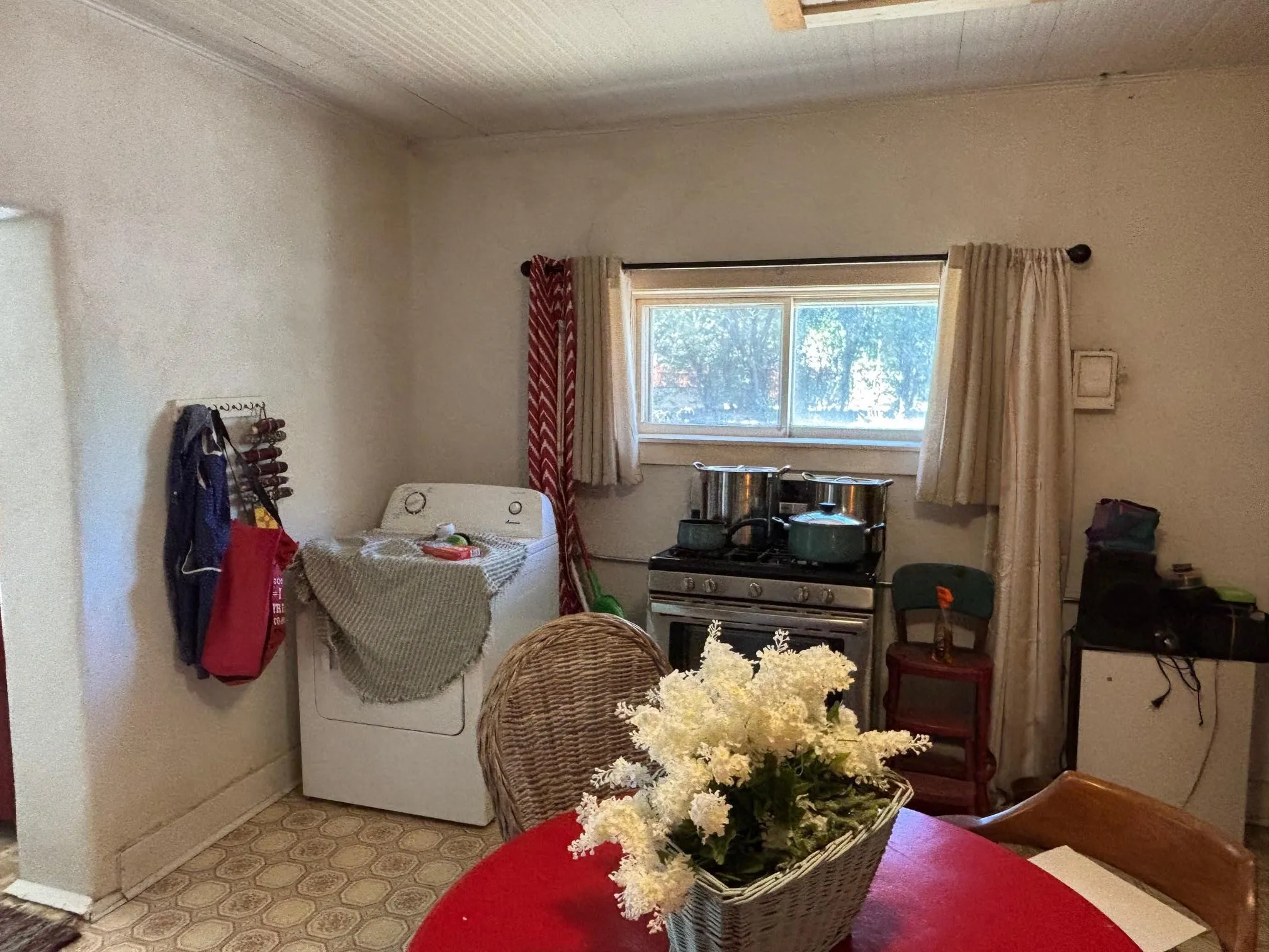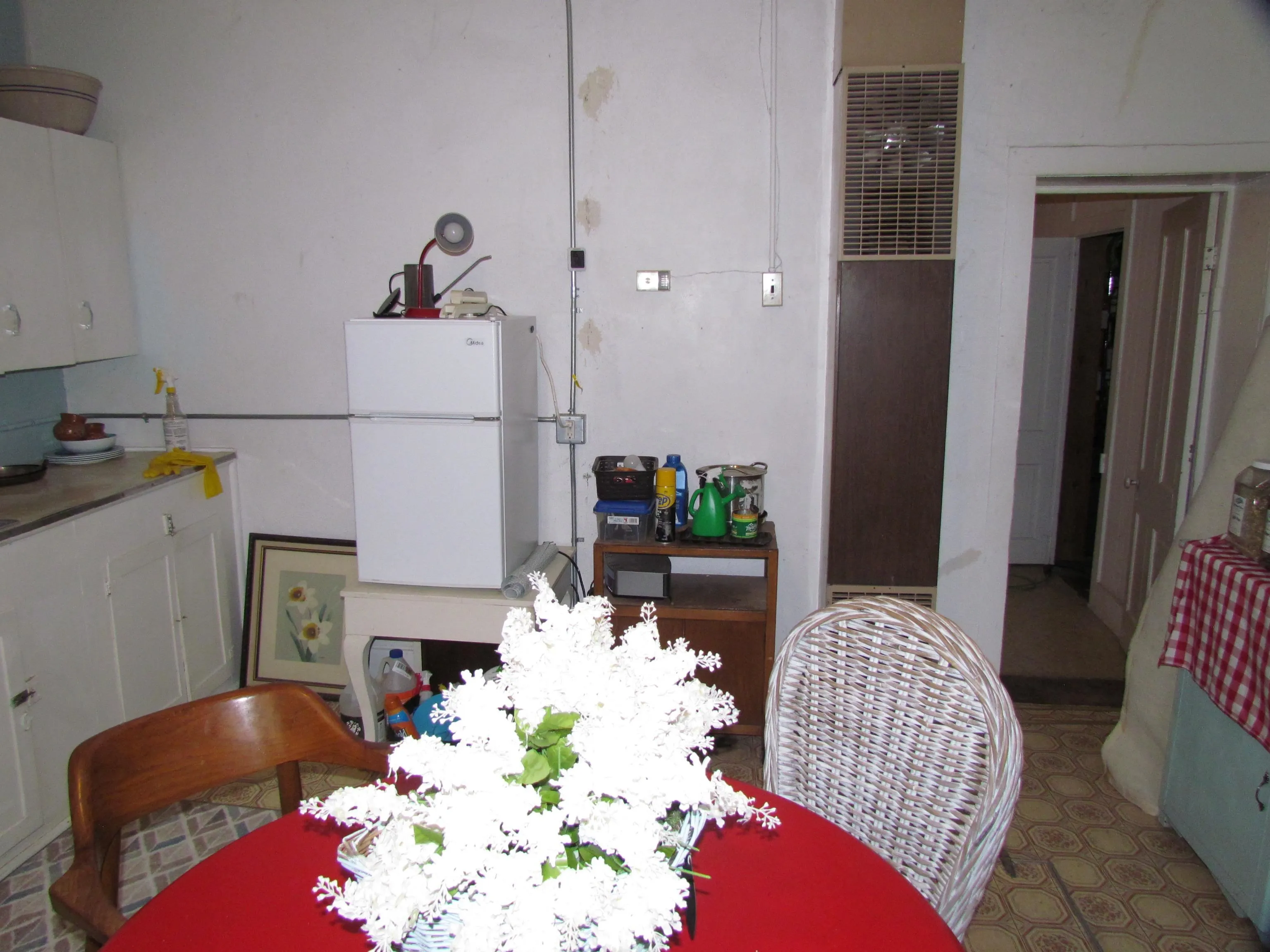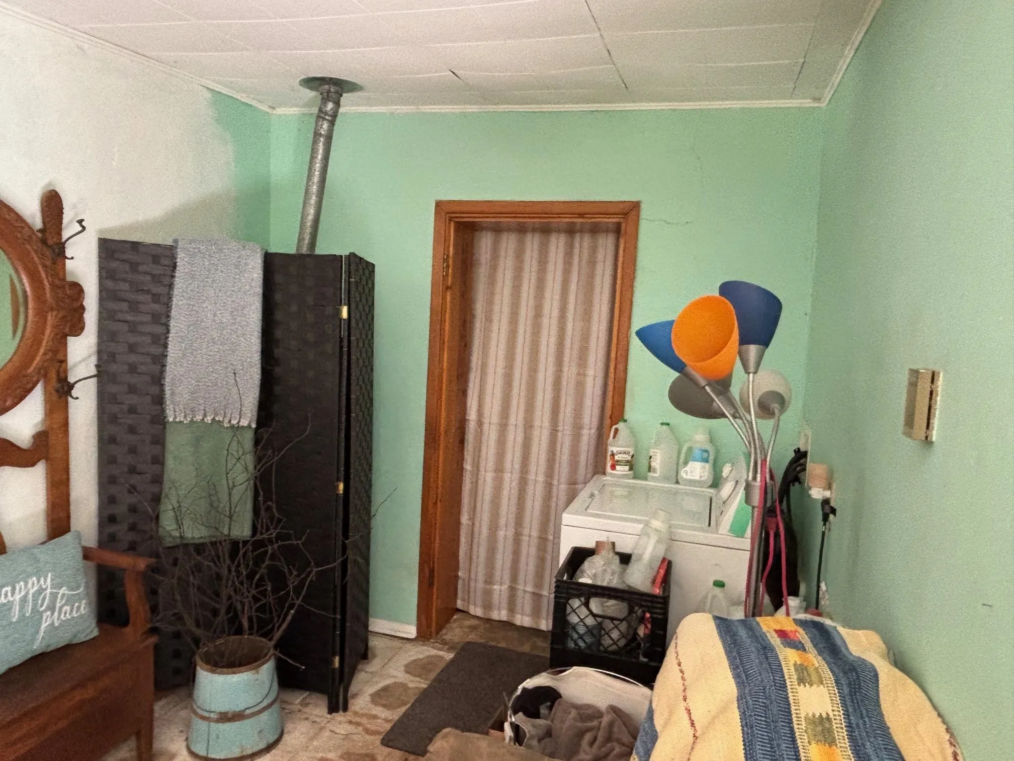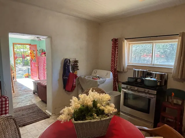 Nice 2 bedroom 1 bathroom 992 +/- sq ft adobe home on almost a third of an acre. Treed lot, on quiet paved street within easy walking distance to restaurants, village hall, library and downtown Springer. Tall ceilings and open spaces make this an inviting home or getaway. Originally estimated to have been built in 1900 this home has had several upgrades in recent years with natural gas, electric, plumbing and sewer. The two bedrooms originally was one large room that has now a dividing wall with each room being approximately 14 ft by 14 ft with separate entry. Both bedroom spaces are currently used as storage for now. The home needs some work, but is livable now. With the adobe walls and tall ceilings, there is a lot of charm to build off. The lot is incredible with a mixture of shade trees, and some plum trees, an older elderberry tree, wild plums, wild spinach and gooseberries. There is a small basement and ceiling accessed through through the kitchen.