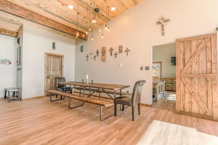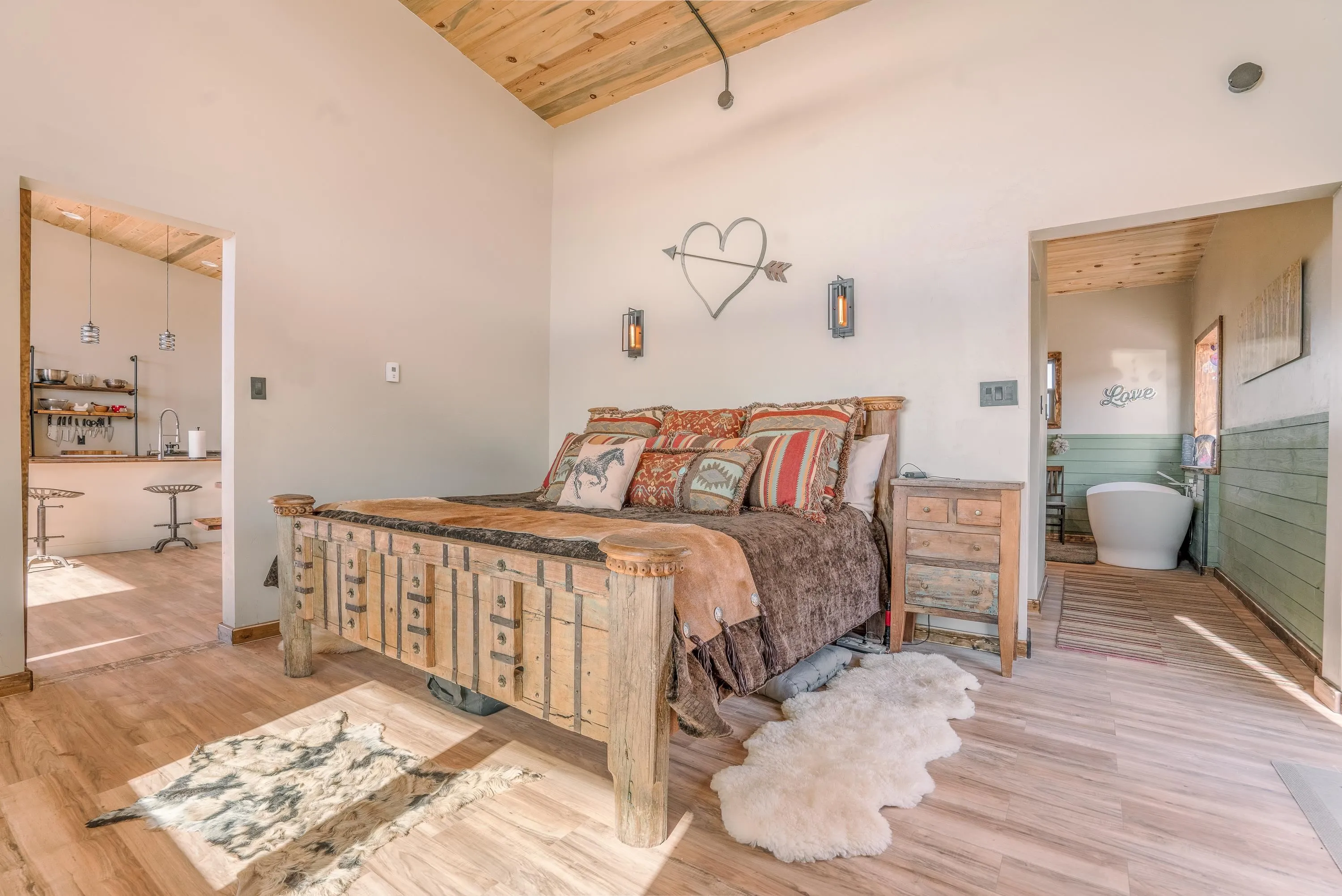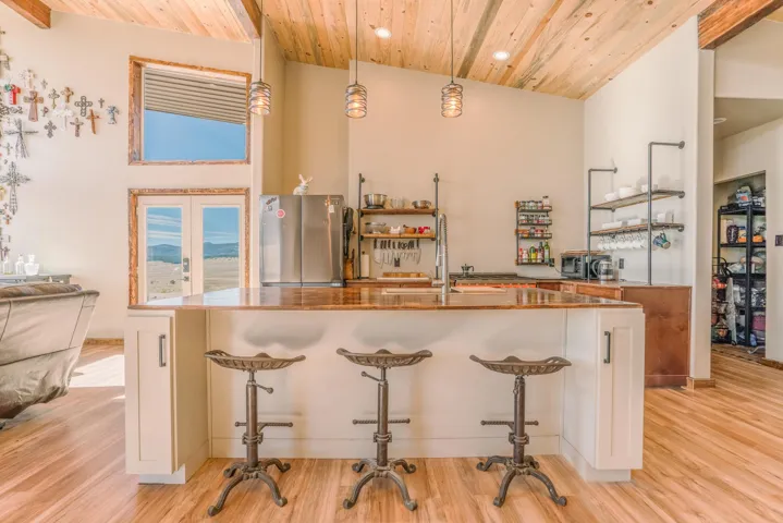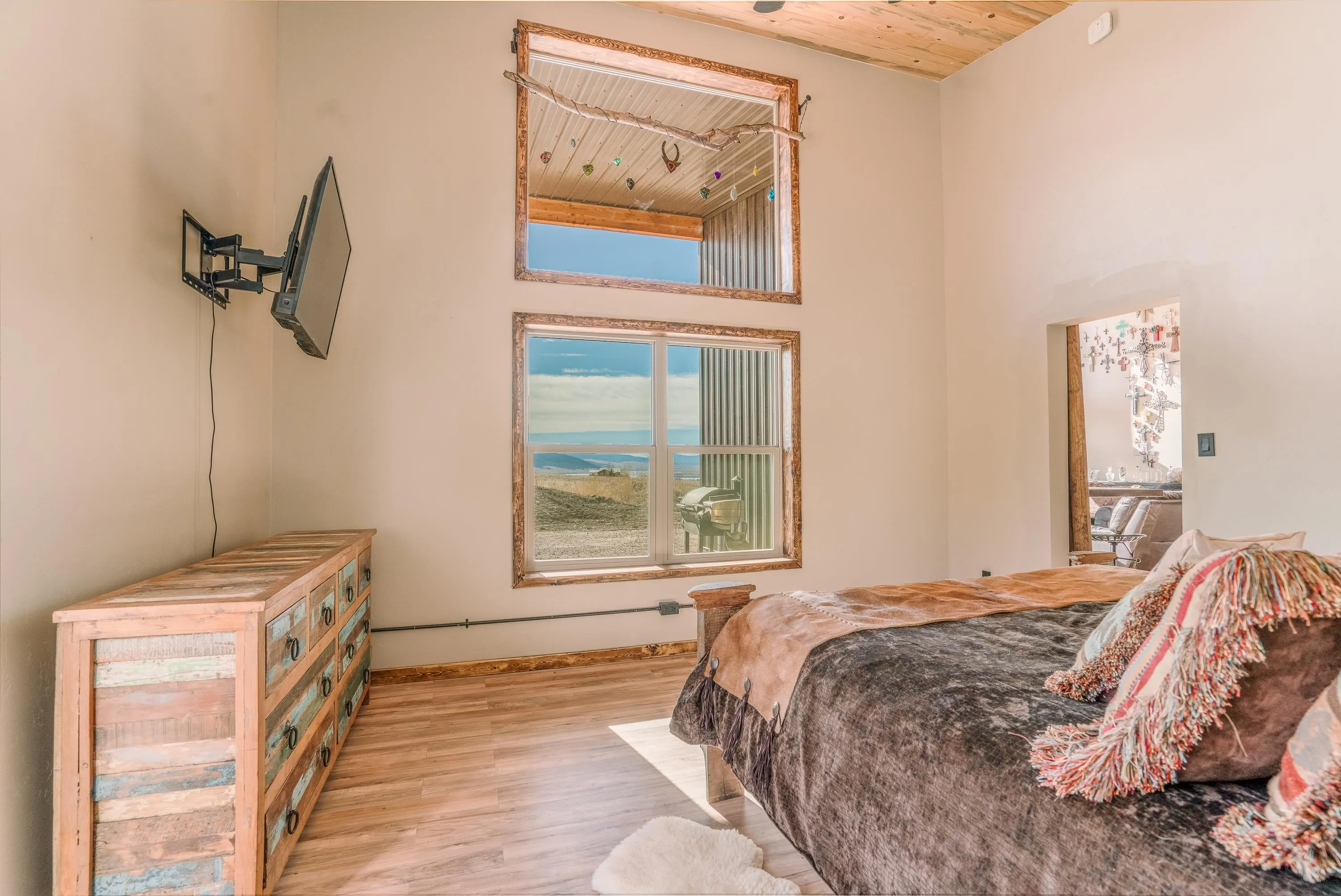Nestled on 20 pristine acres just 2 minutes from the charming Village of Eagle Nest, this custom 2024 mountain home combines modern comfort with a true off-grid lifestyle. Designed for easy, one-level living, the 4-bedroom, 2-bath retreat offers abundant natural light, passive solar heating, and stunning views of the surrounding mountains, Eagle Nest Lake, Angel Fire Ski runs and wild life. The property is fully self-sufficient with owned solar power, a private well, septic system, 1,000-gallon propane tank (owned, not leased), and a backup generator. Starlink internet provides reliable high-speed connectivity, while the home’s durable metal roof and low-maintenance siding ensure long-lasting performance and protection in every season. This home is fully approved for horses, allowing up to four total (zoned at two horses per 10 acres). It also features a convenient RV hookup and an installed sewer connection, giving you flexibility for guests, travel setups, or future expansion. The spacious carport sits right at the entrance, providing covered parking for two vehicles. Inside, you’ll find in-floor radiant heating, tasteful furnishings included, and a modern yet warm mountain ambiance. The on-site shed that houses the solar equipment and battery system also offers ample additional storage. The expansive acreage provides plenty of room to build a shop, barn, or other structures to suit your needs and vision. Perfect for recreation lovers, the home is nestled between Angel Fire Resort and Red River Ski & Summer Resort just 20 minutes away. Eagle Nest Lake and the Cimarron River—famous for award-winning fly fishing—are minutes away. Mild summers, breathtaking views, and endless outdoor adventure make this a year-round haven.