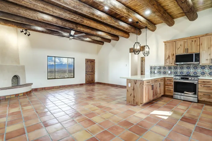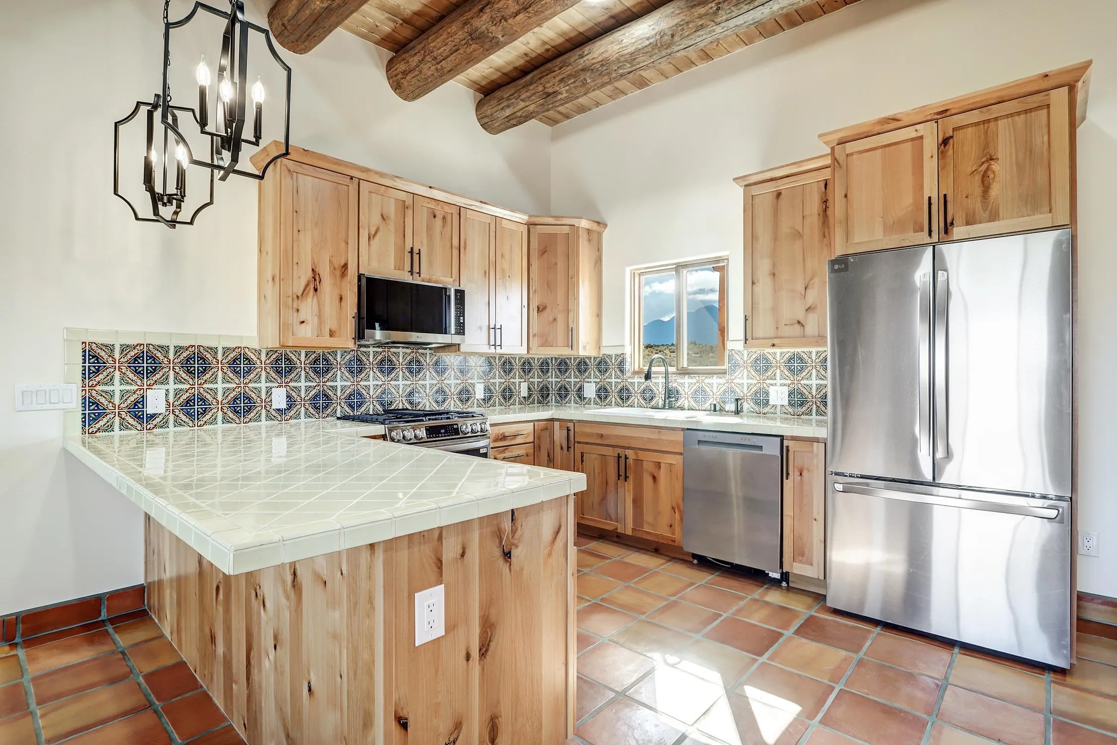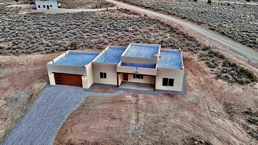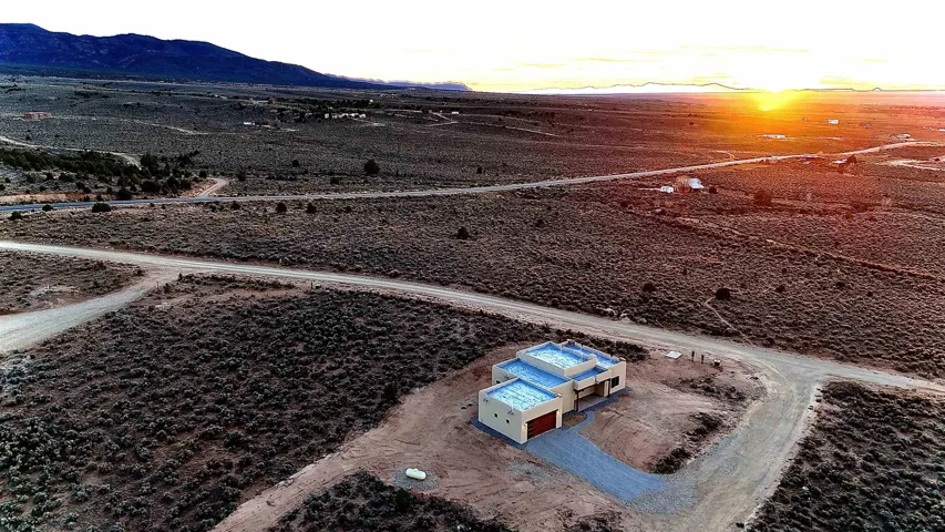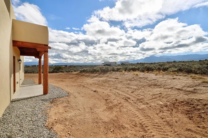 Tranquil, peaceful, and absolutely stunning 2025 Southwest Pueblo-style home for sale near the hiking trails at the end of town! Superb quality with an extra 4” of concrete footings and extra rebar to ensure a solid foundation and structural integrity of the home. Utilities include: a shared well (5 homes), septic, electric, and propane. Radiant heat throughout the home for warm floors on a snowy day. A southwest fireplace in the living room for ambiance and roasting marshmallows on those cold, blizzardy nights! Vigas in the main living space to complement the high ceilings. Custom details throughout – gorgeous handmade Talavera tiles used for the backsplash in the kitchen and bathroom, and accents in the showers and sinks. Matching mirrors above each sink for a well thought-out design flow throughout the home. Light green tiled countertops in the kitchen to forest green tiles in the bathrooms. Custom shower glass doors in each shower with no step but a gentle slope accommodating little ones, pups, elders, or those who may be easily clumsy! A well-balanced color palette with neutrals to bright reds, yellows, orange, dark blues and an overall green tone that feels refreshing and warm. Photos capture the elegance, while the virtual tour captures artistic touch. 3D walkthrough and floor plan are added as a bonus to the listing for you to experience the home if you’re not able to see it right away. Last but not least, the expansive views in all directions will always remind you that the mountains are home! A simple yet heart-wrenching reminder of what makes Taos so special and why we all love it so much! *Four Pinon trees to be added to the property* See here for 3D rendering: https://tours.dragonfly360imaging.com/299473