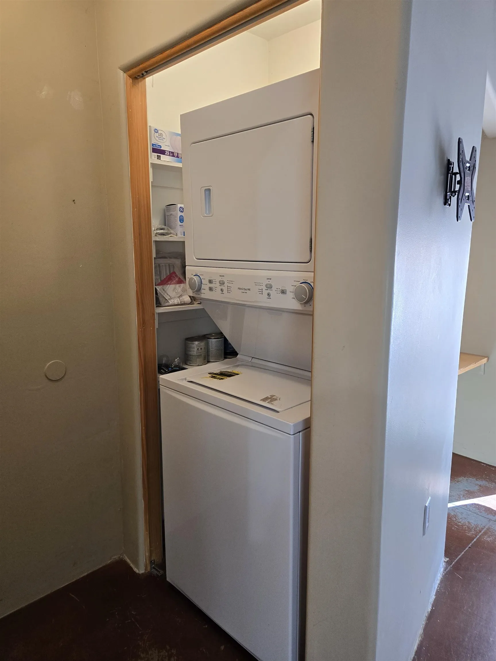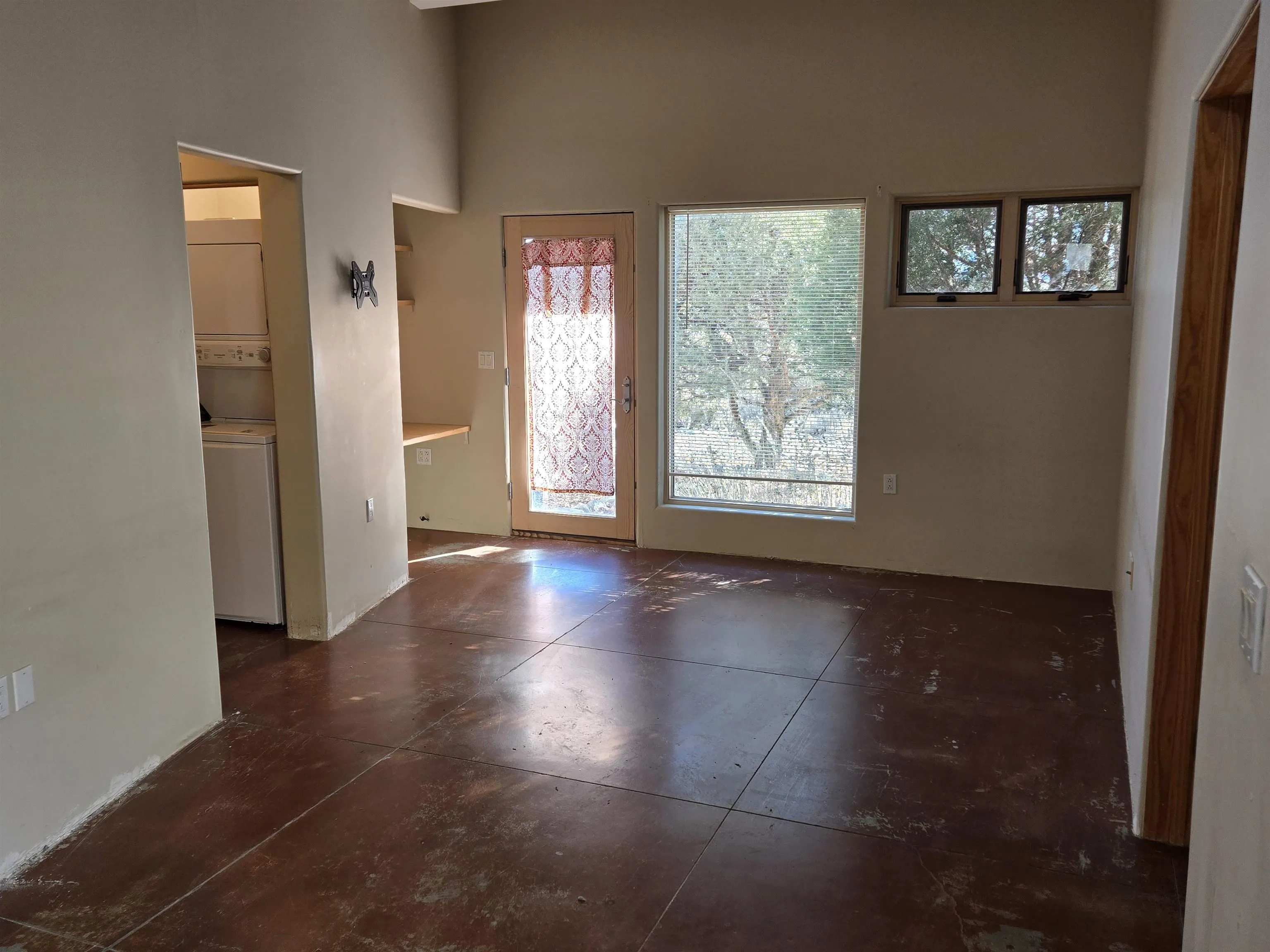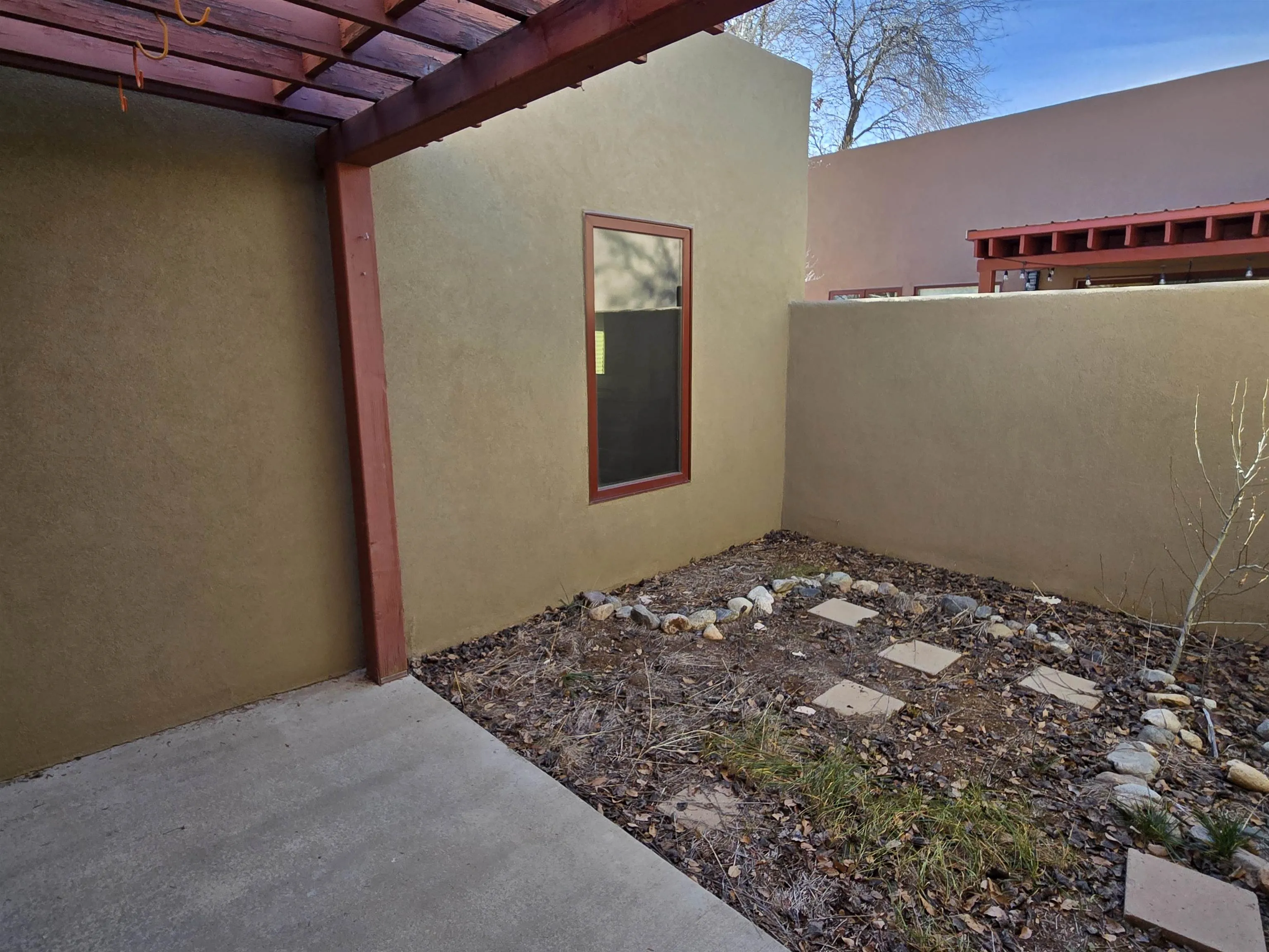 Two bedroom condo located in Upper Las Colonias, convenient to Hwy 150 on the North side of Taos. Quail Ridge Casas are in a tidy complex with mature landscaping and sunny units. Built in about 2005, they have a contemporary feel with high clerestory windows, and Unit 6 has 2 enclosed courtyards accessed by sliding glass doors to bring the fresh air in. There are sunny south facing windows, with large trees to screen for privacy. The unit has it’s own carport. The efficient kitchen has a fridge, stove and dishwasher. There is a large southwest style fireplace. The unit has it’s own stacking washer and dryer. There are several restaurants nearby and it is convenient to a gas station.