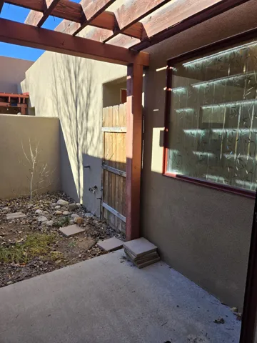 Two bedroom condo located in Upper Las Colonias, convenient to Hwy 150 on the North side of Taos. Quail Ridge Casas are in a tidy complex with mature landscaping and sunny units. Built in about 2005, they have a contemporary feel with high clerestory windows, and Unit 6 has 2 enclosed courtyards accessed by sliding glass doors to bring the fresh air in. There are sunny south facing windows, with large trees to screen for privacy. The unit has it’s own carport. The efficient kitchen has a fridge, stove and dishwasher. There is a large southwest style fireplace. The unit has it’s own stacking washer and dryer. There are several restaurants nearby and it is convenient to a gas station.
